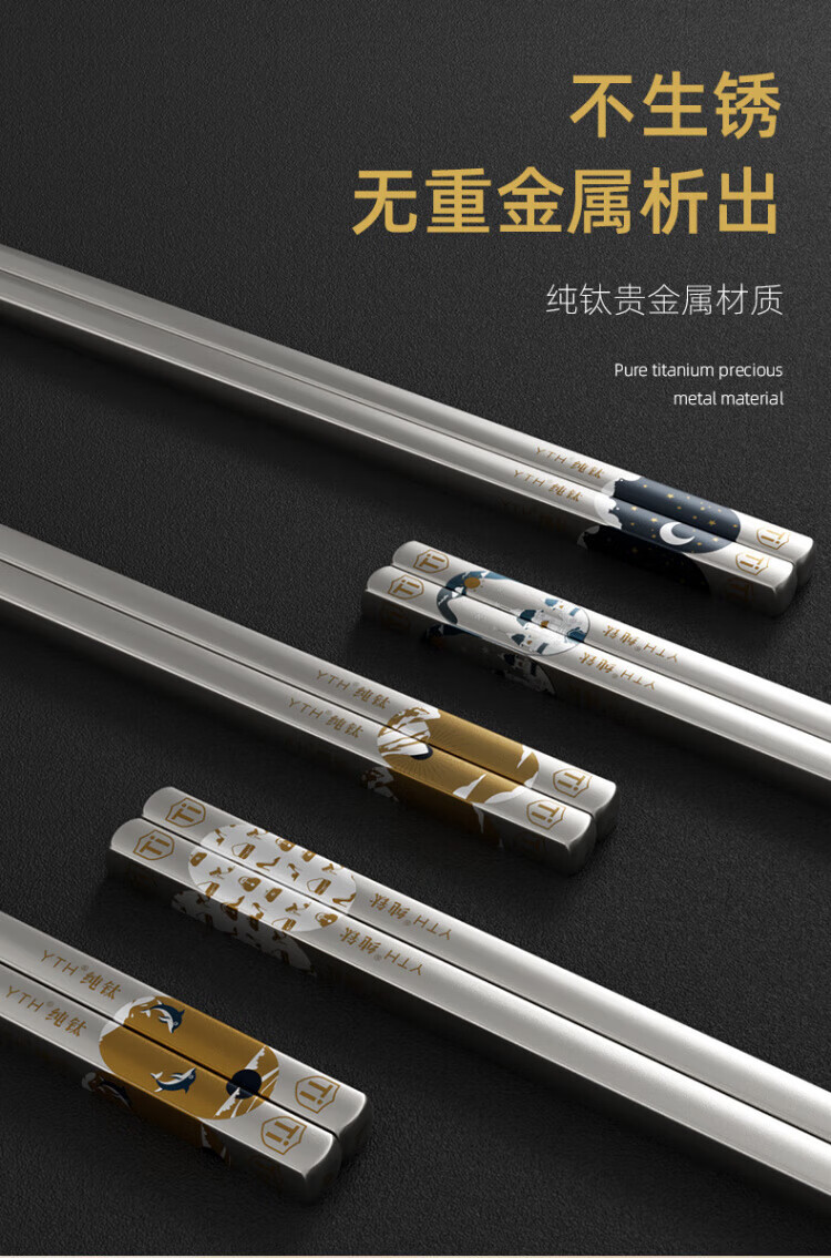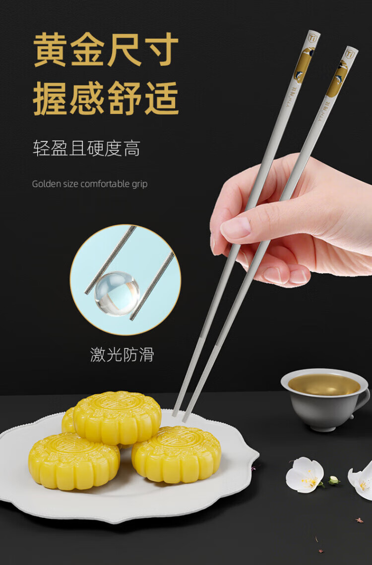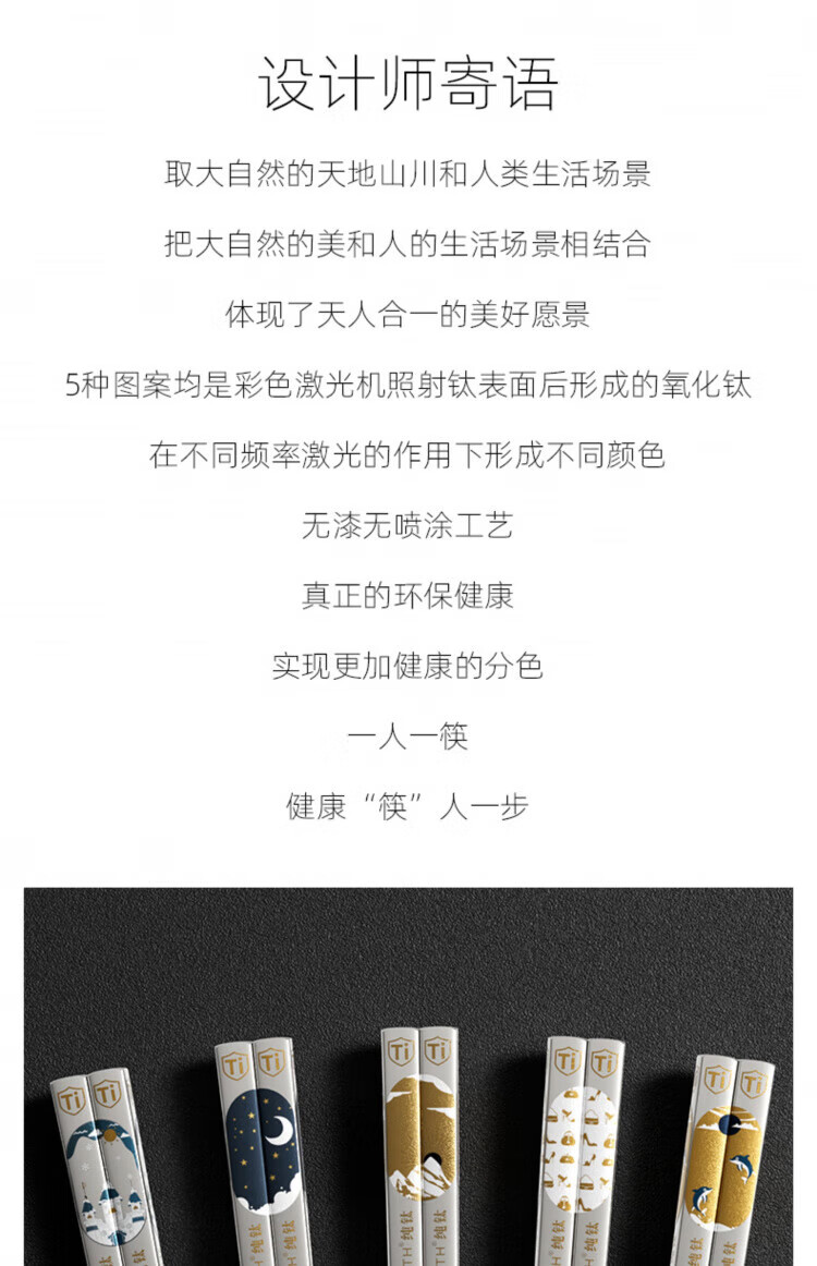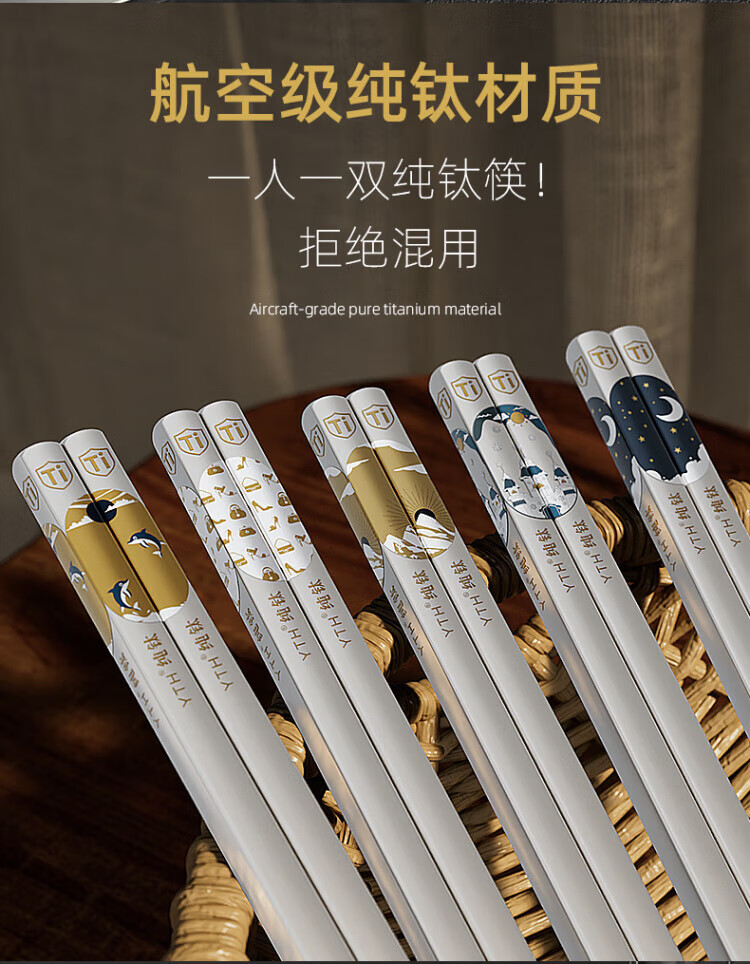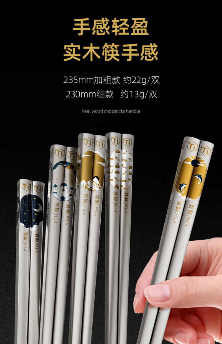 CKULH德国纯钛筷子单双一人一筷抗菌防霉耐高温防滑家用高档分餐礼盒装 【13g轻量化23cm长】5双装 5双