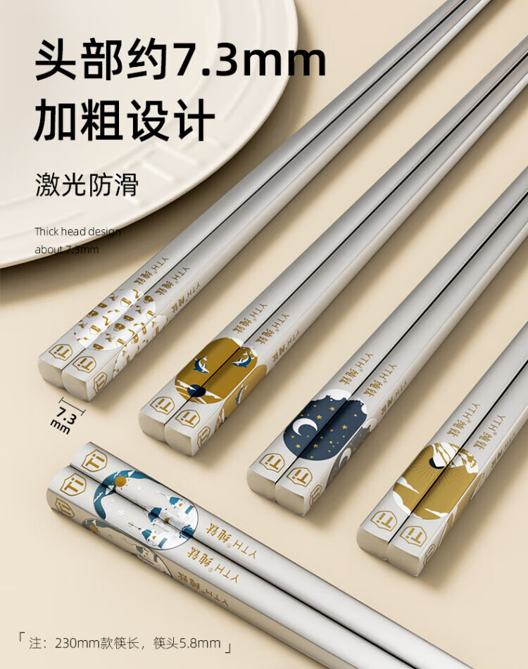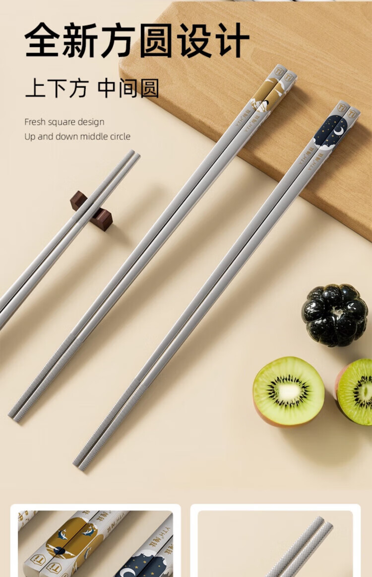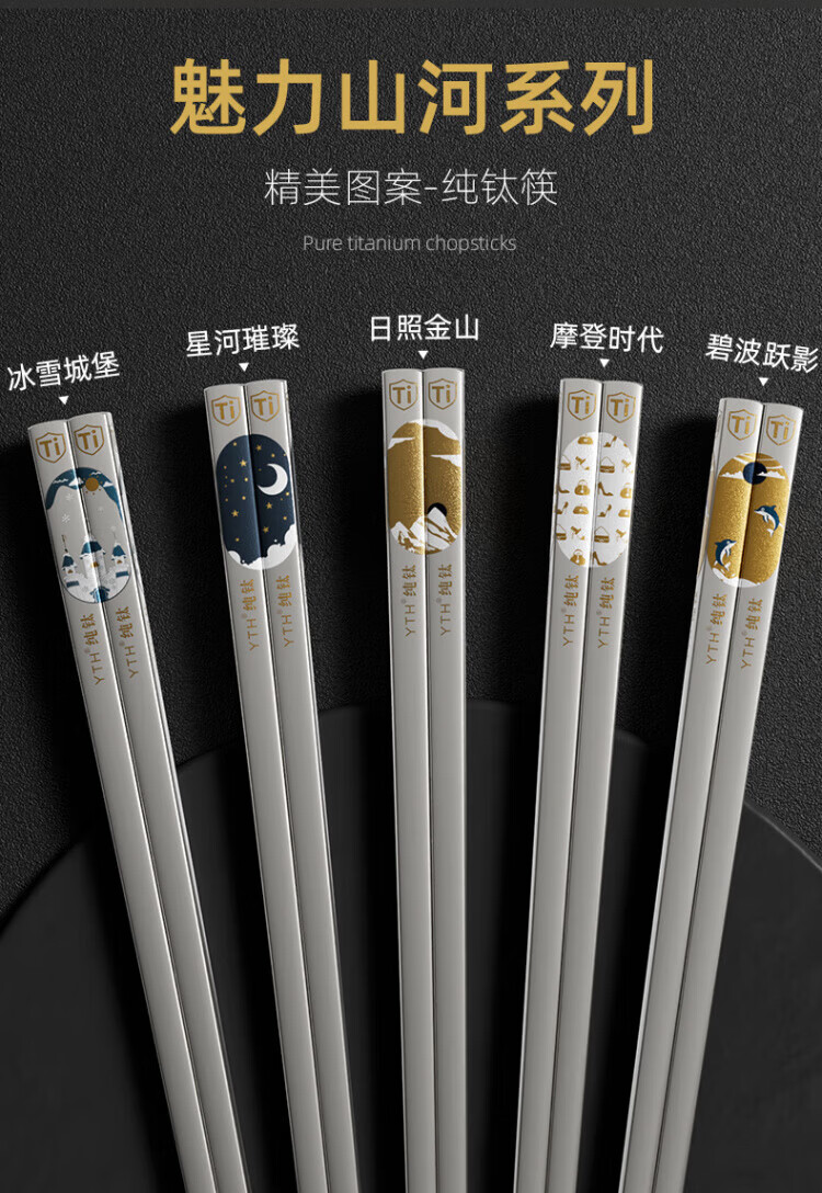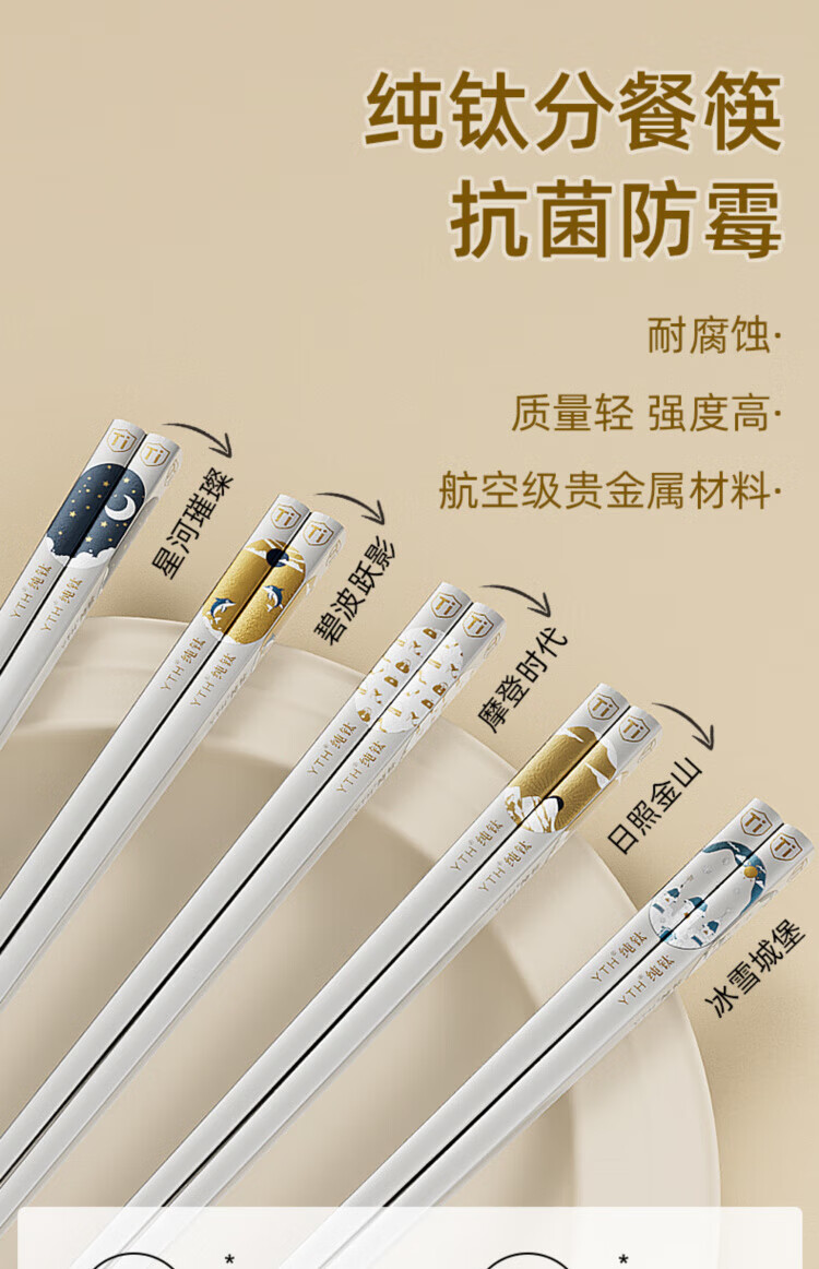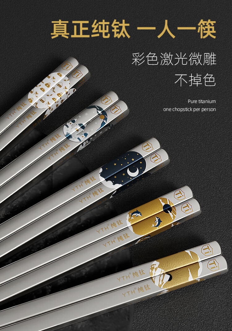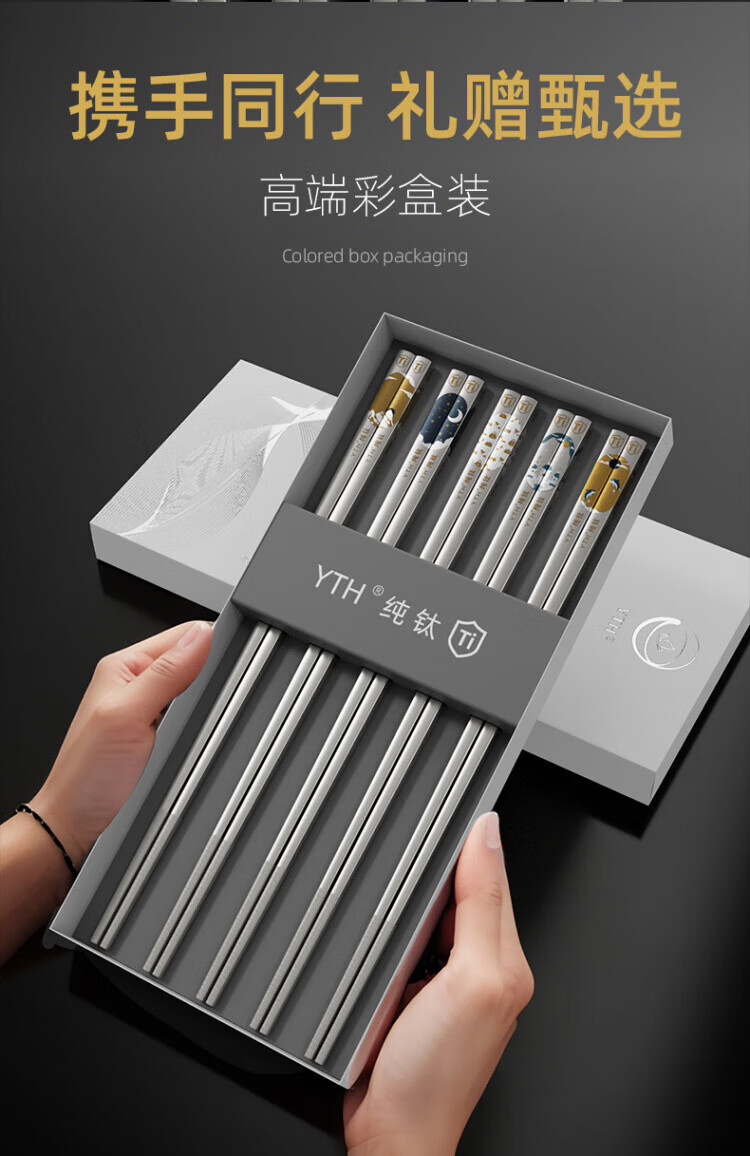 CKULH德国纯钛筷子单双一人一筷抗菌防霉耐高温防滑家用高档分餐礼盒装 【13g轻量化23cm长】5双装 5双