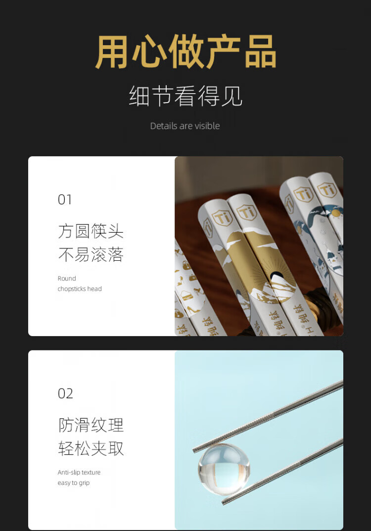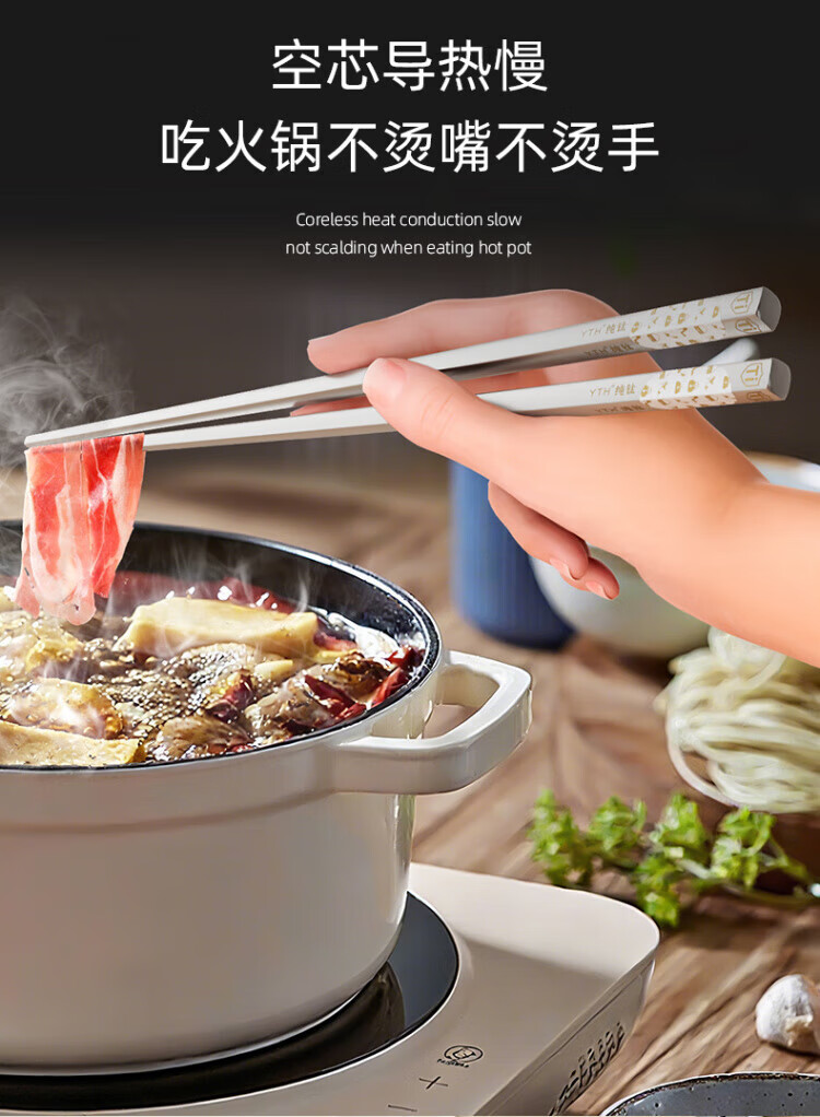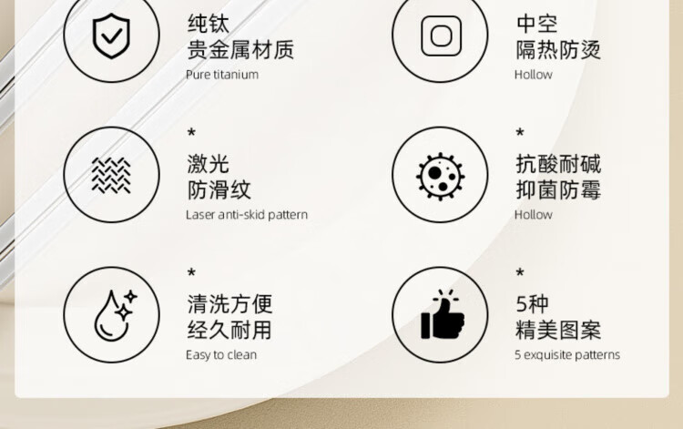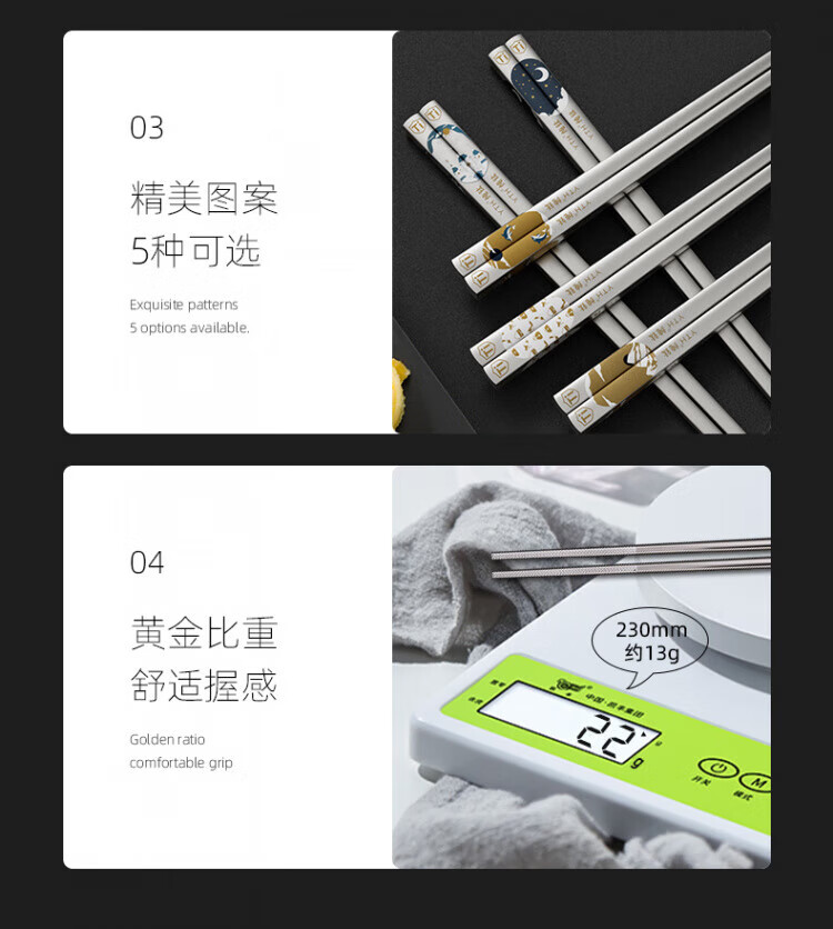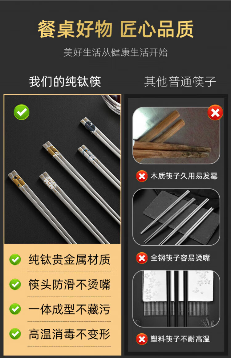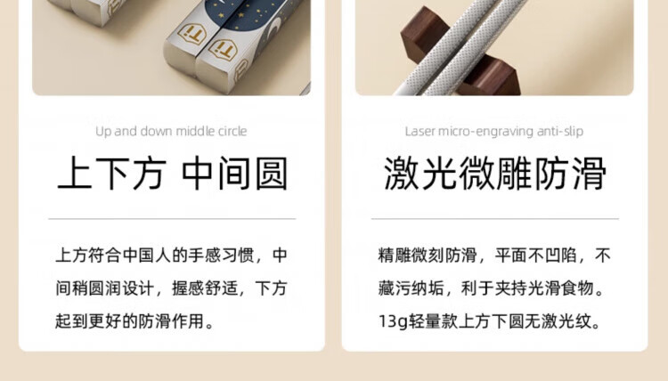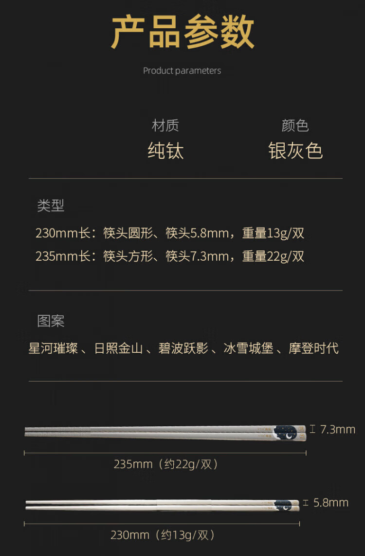 CKULH德国纯钛筷子单双一人一筷抗菌防霉耐高温防滑家用高档分餐礼盒装 【13g轻量化23cm长】5双装 5双