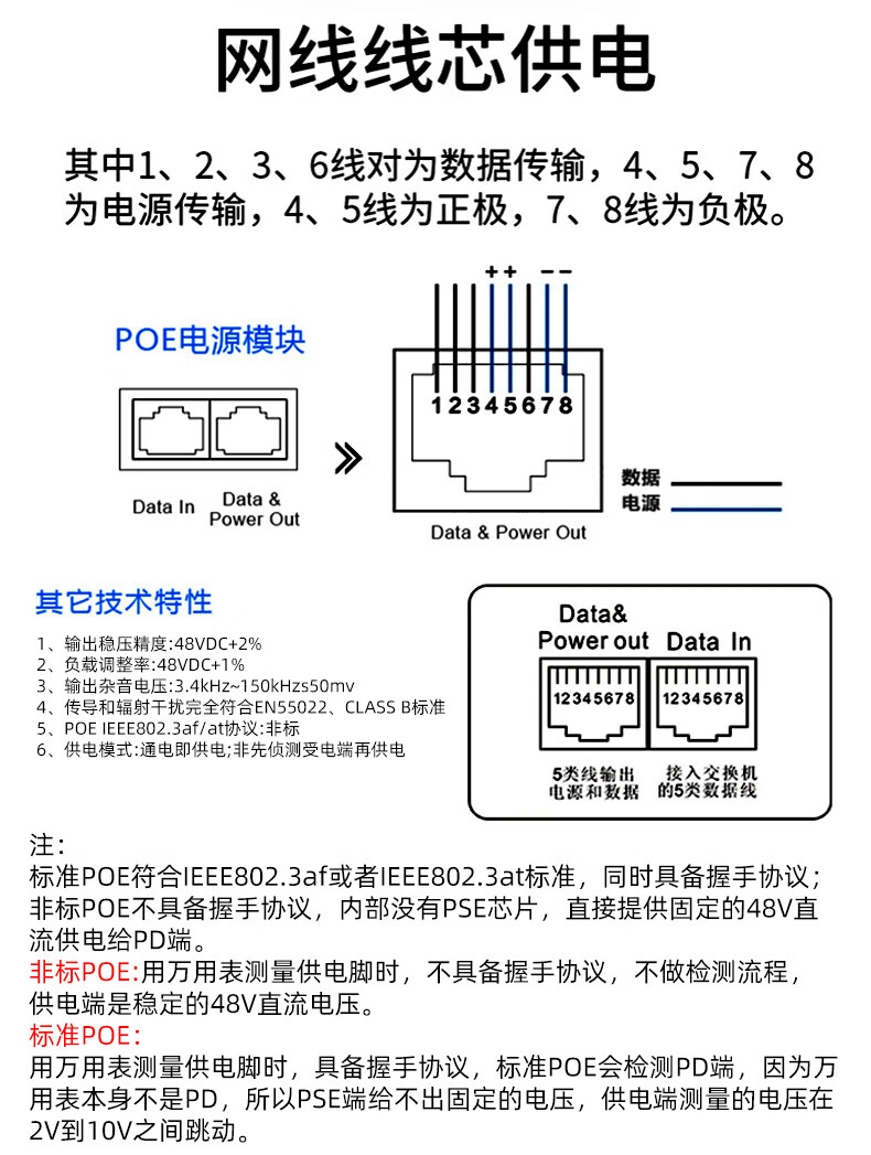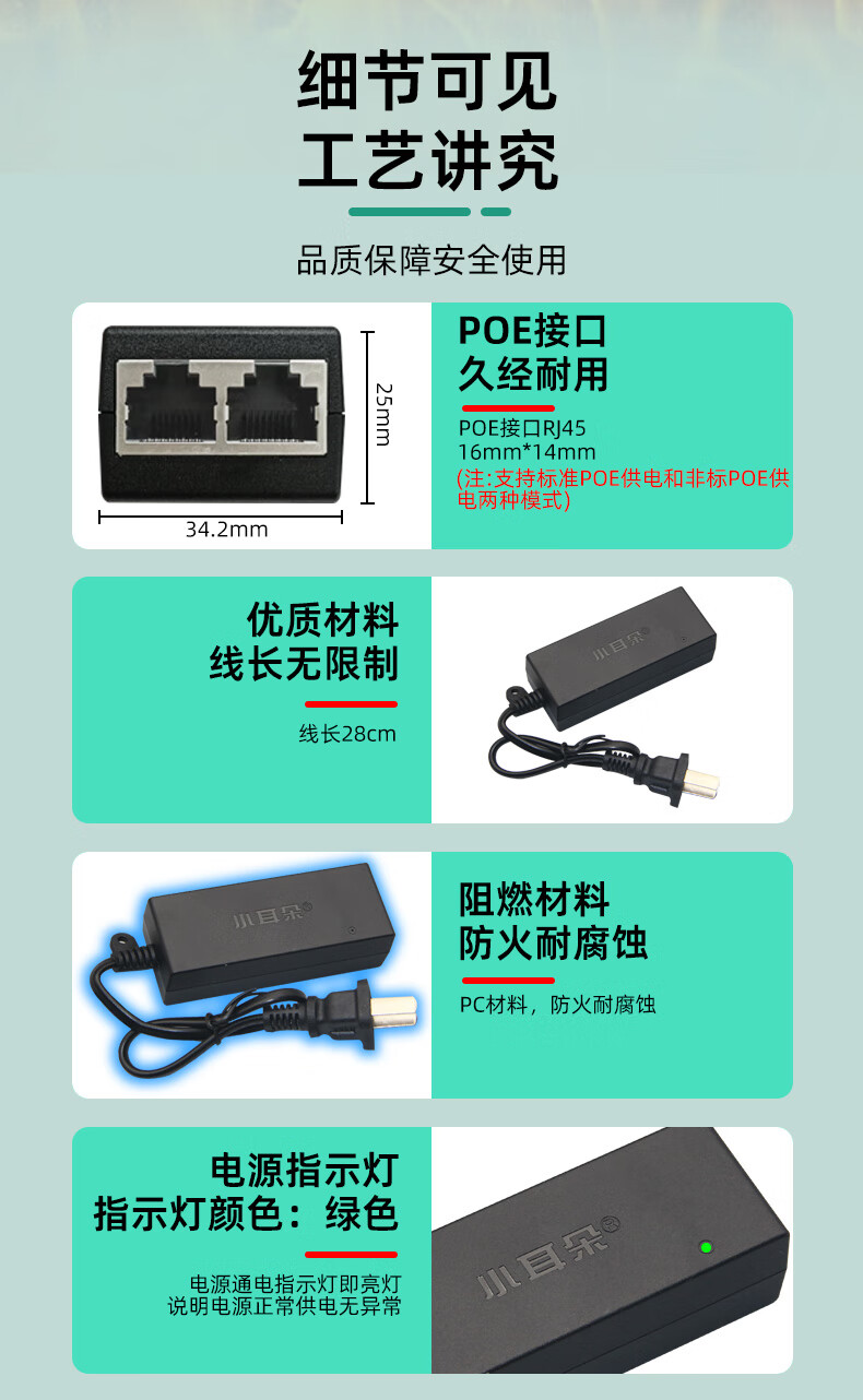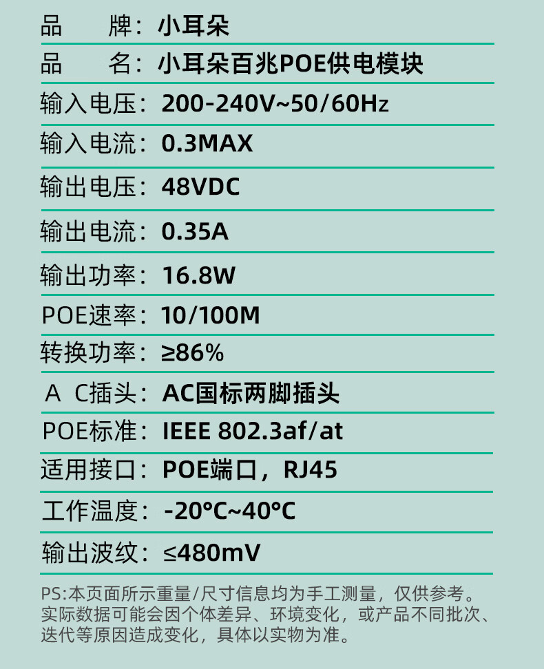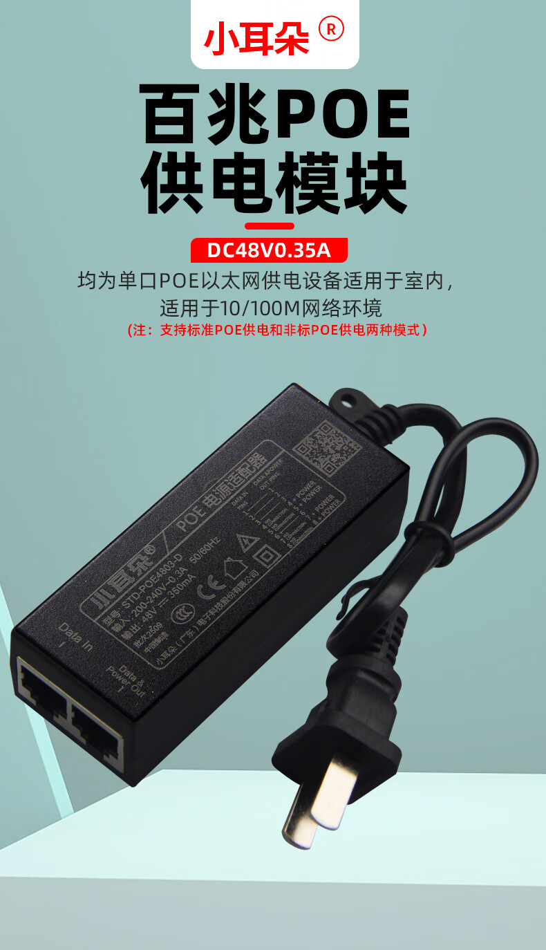 小耳朵 监控电源 百兆POE供电电源模块 48V0.35A网桥适配器无线 AP供电器3C认证 百兆POE供电电源模块 【48V0.5A】