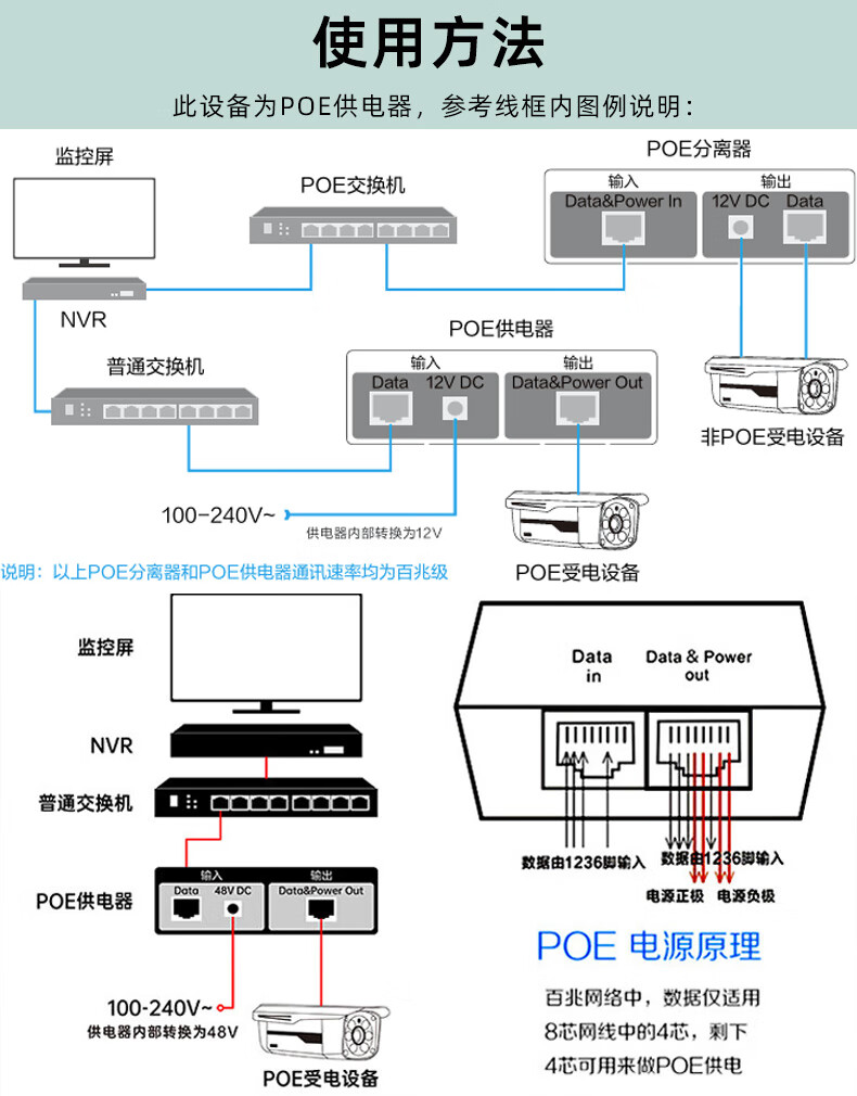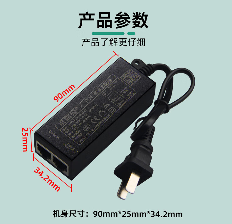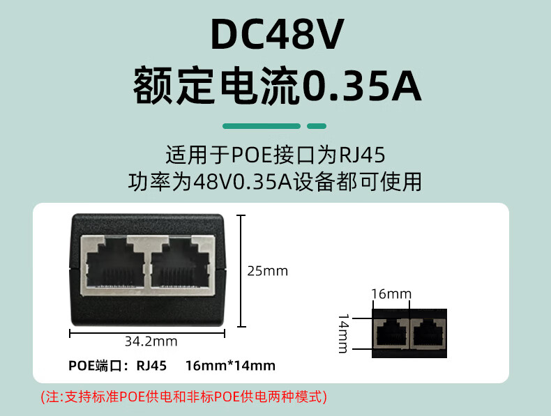 小耳朵百兆POE电源适配器 供电电源模块48V0.35A网桥适配器无线 AP供电器3C认证 百兆POE供电电源模块 【48V0.35A】
