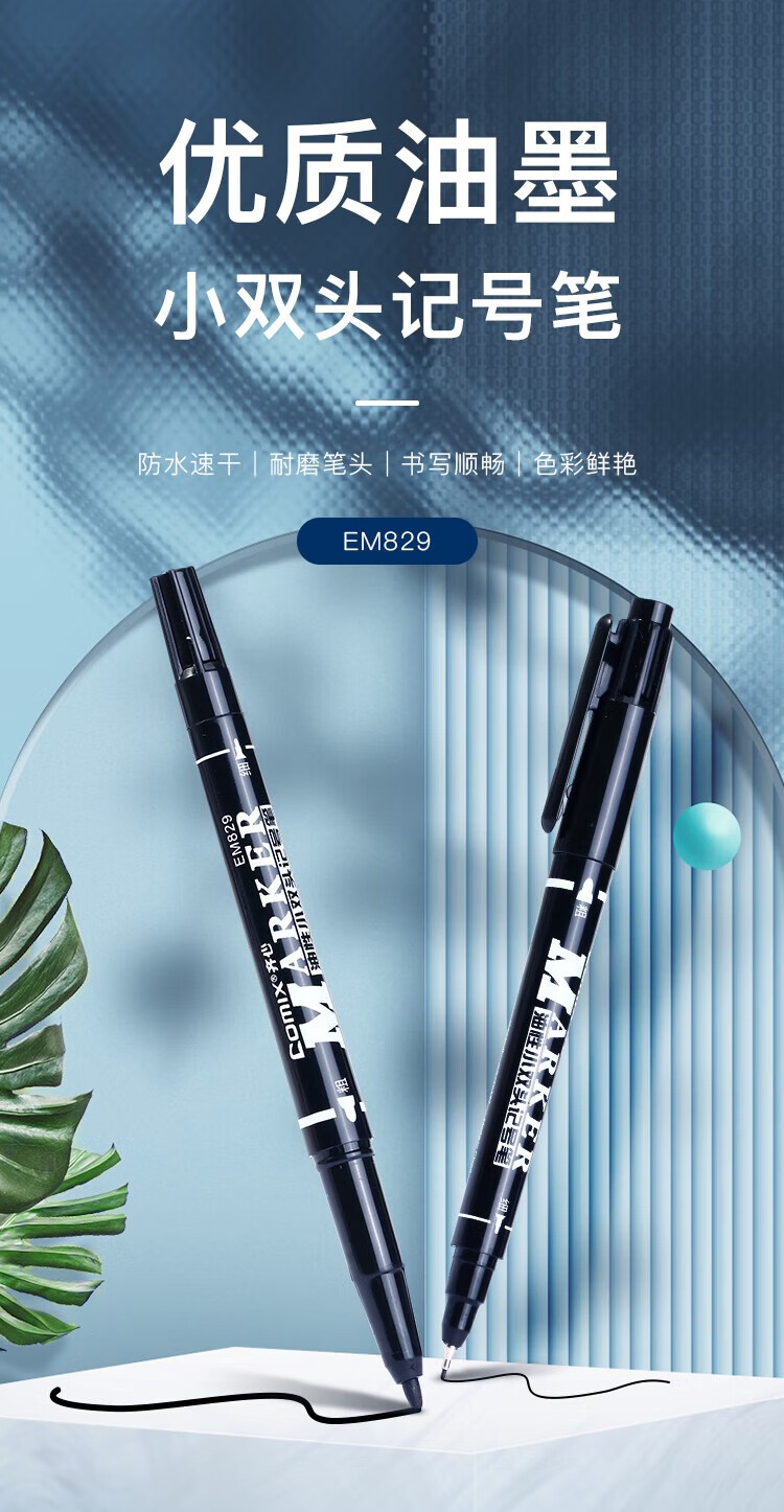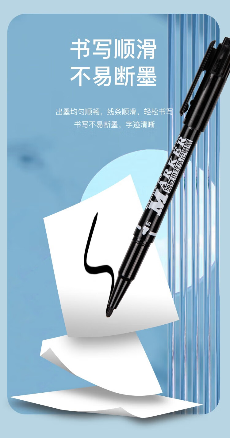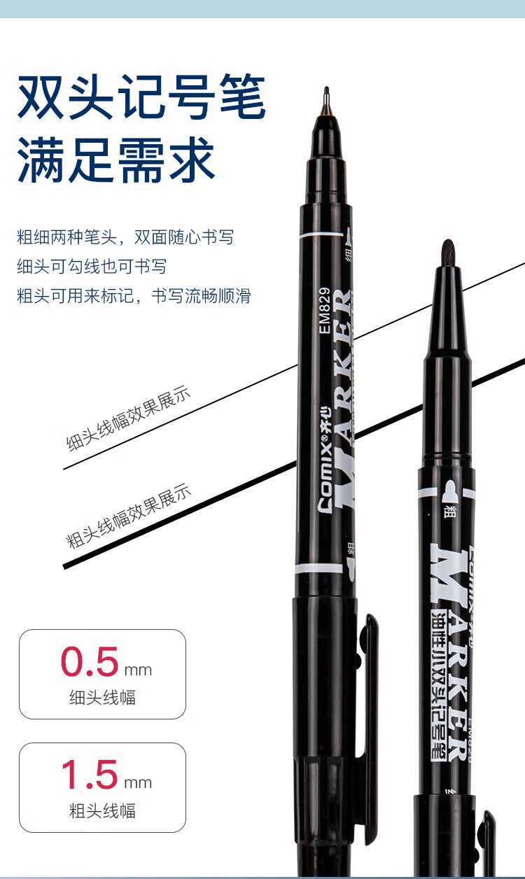 齐心(Comix)小双头防水速干勾线笔油性笔物流记号笔大头笔马克笔12支/盒 工具 黑色 EM829