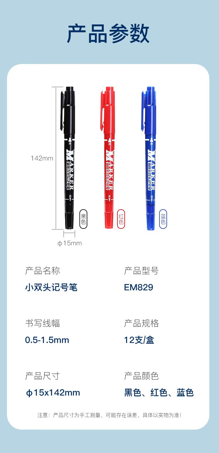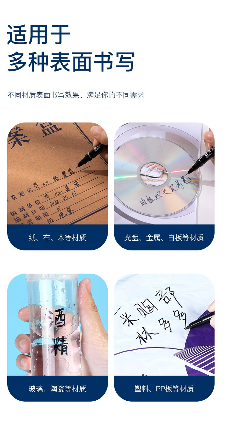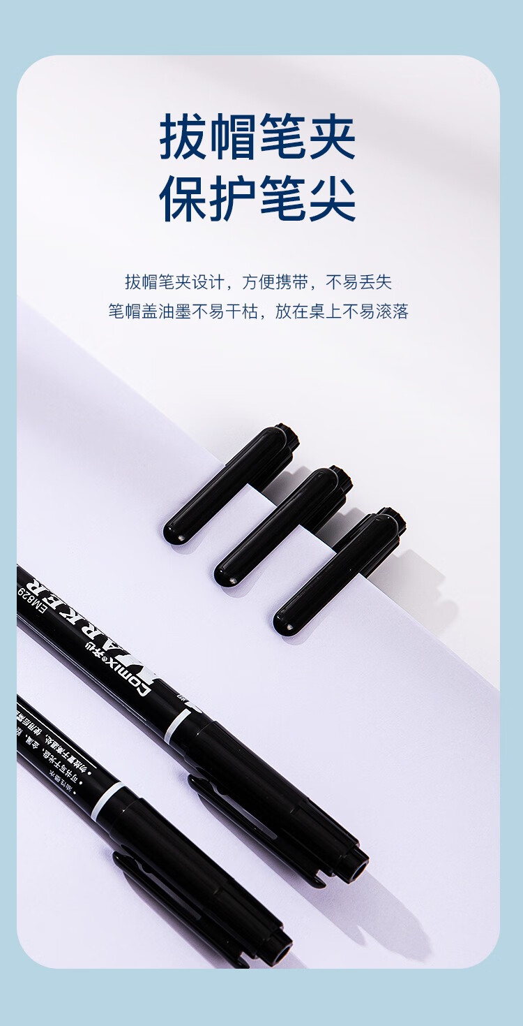 齐心(Comix)小双头防水速干勾线笔油性笔物流记号笔大头笔马克笔12支/盒 工具 黑色 EM829