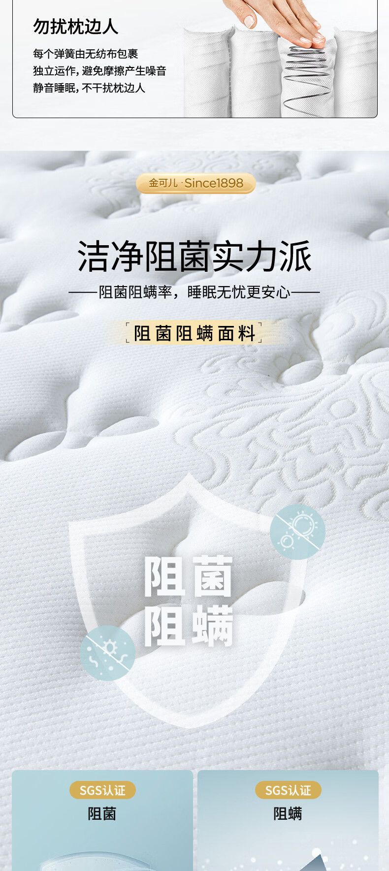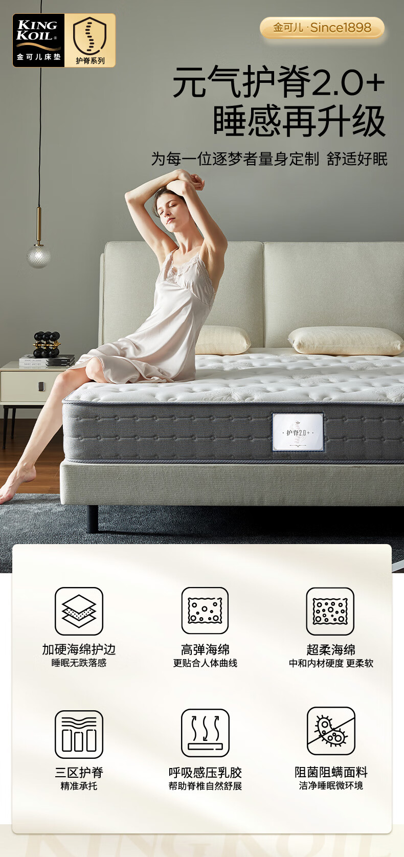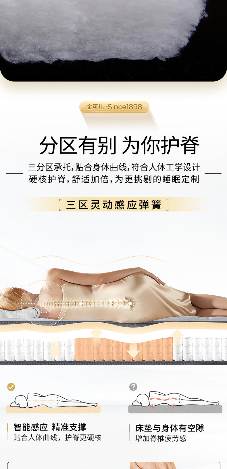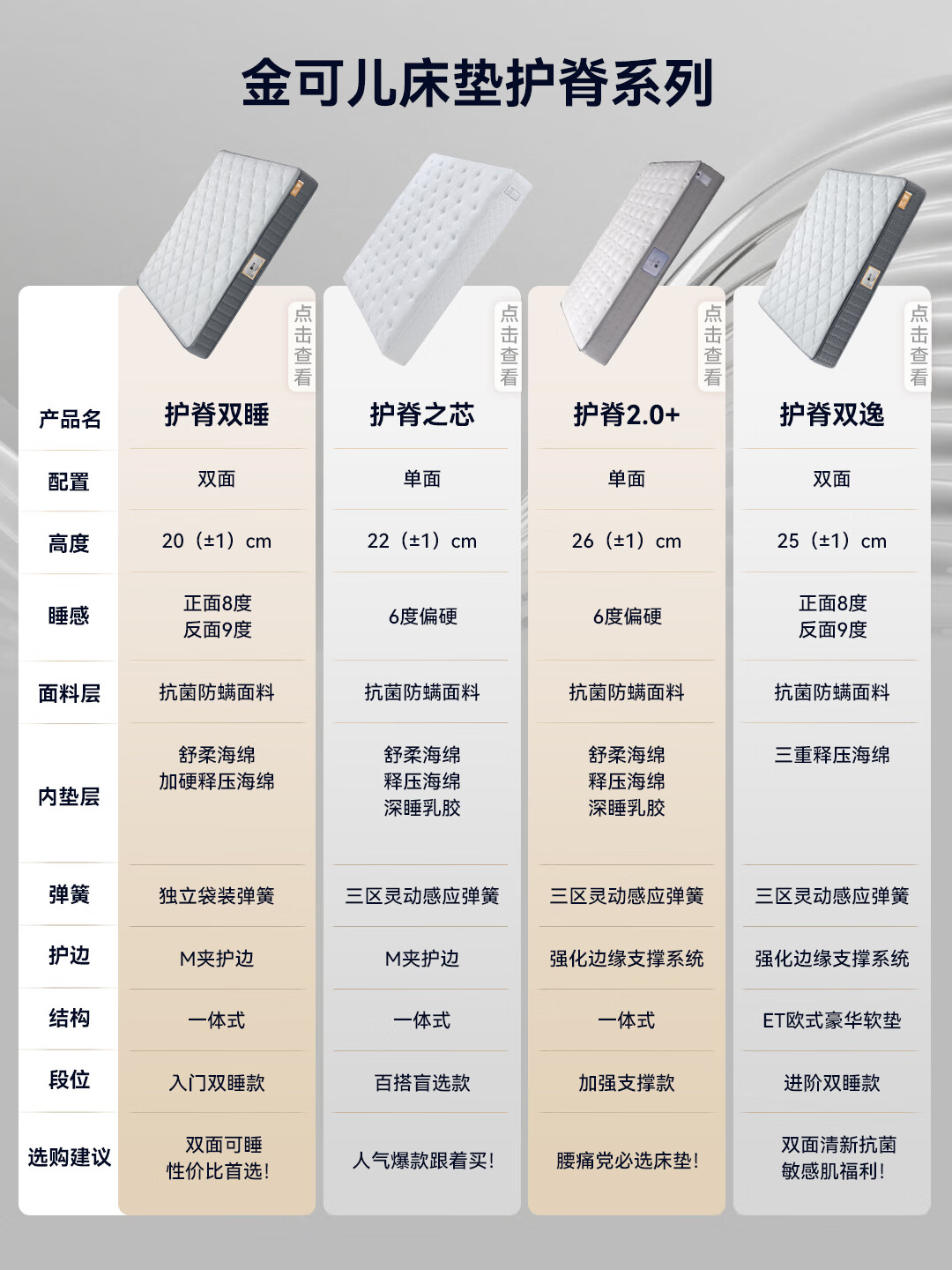 金可儿(Kingkoil)乳胶床垫分区独立袋弹簧偏硬护脊1.8x2米五星酒店护脊2.0升级款 护脊2.0+【26cm|6度偏硬】店铺爆款 180*200cm
