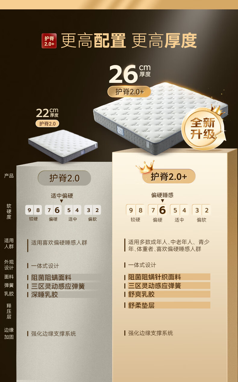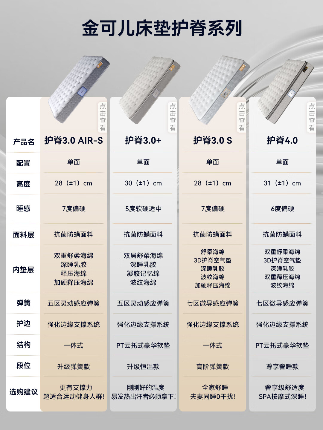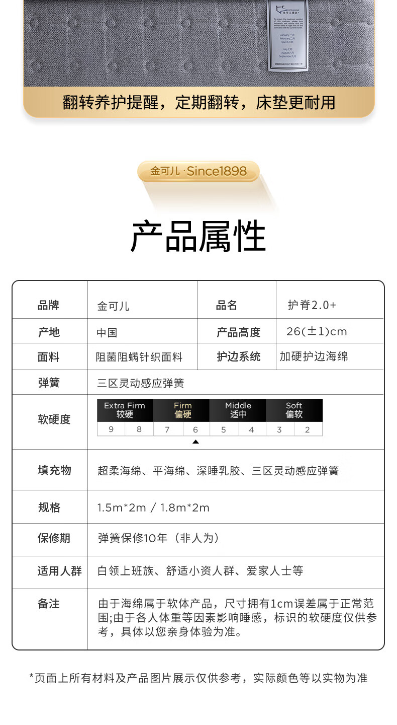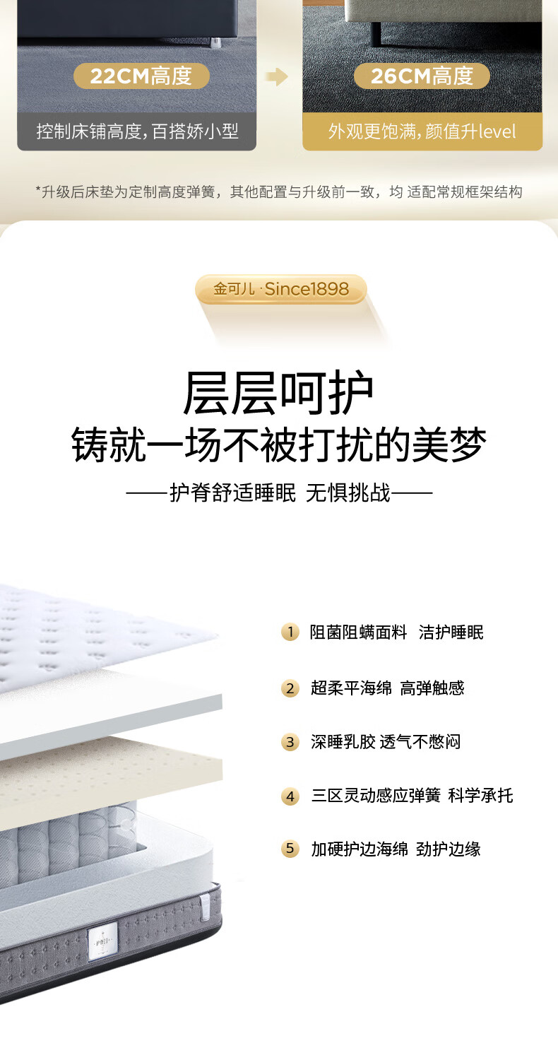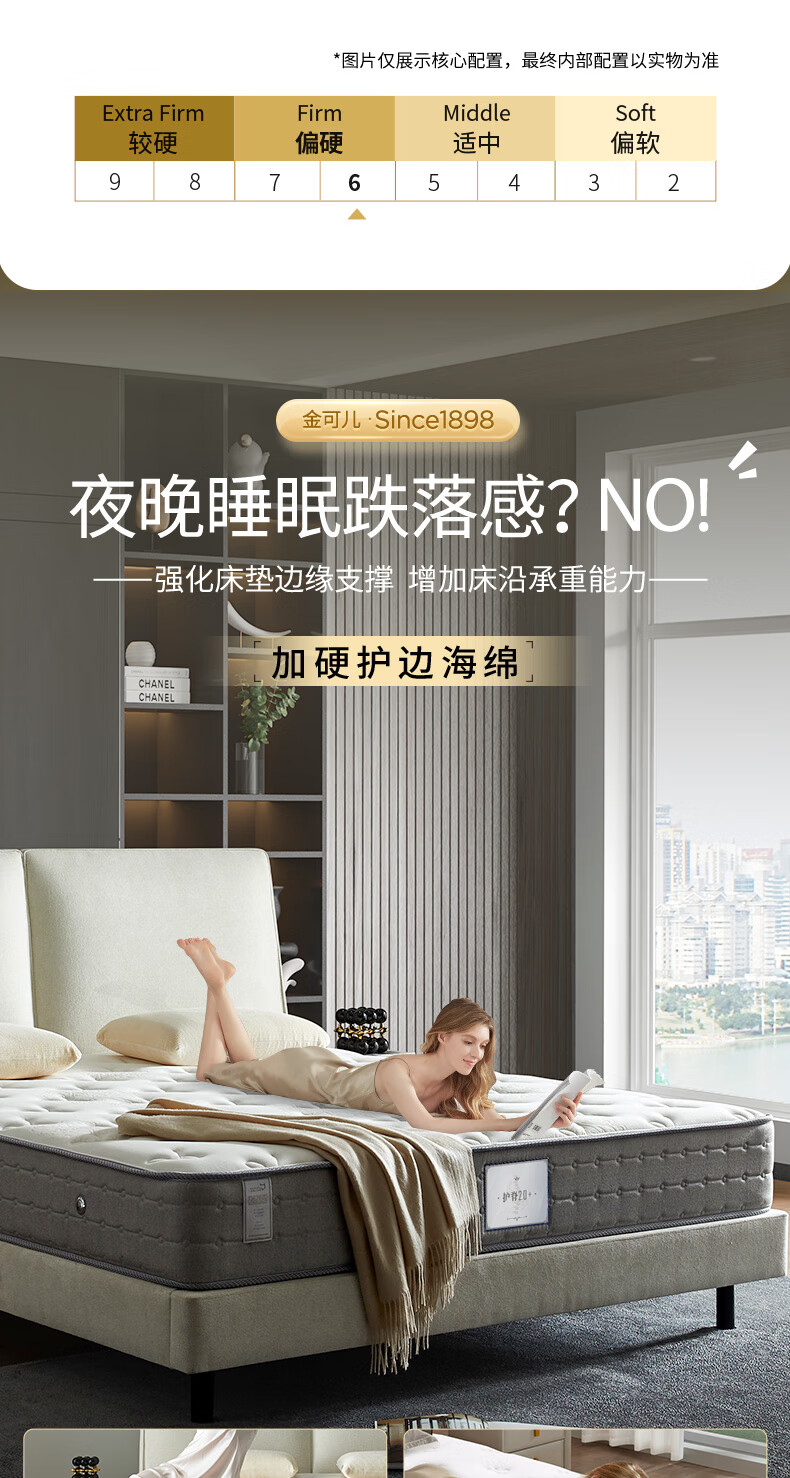 金可儿(Kingkoil)乳胶床垫分区独立袋弹簧偏硬护脊1.8x2米五星酒店护脊2.0升级款 护脊2.0+【26cm|6度偏硬】店铺爆款 180*200cm