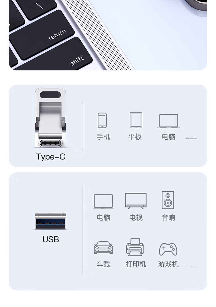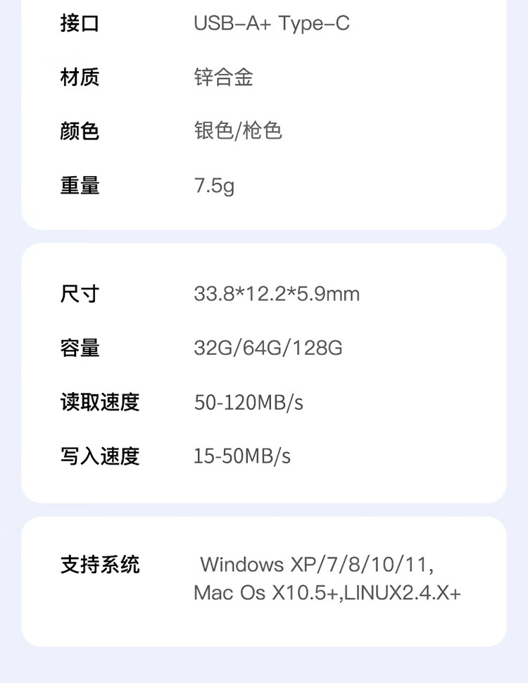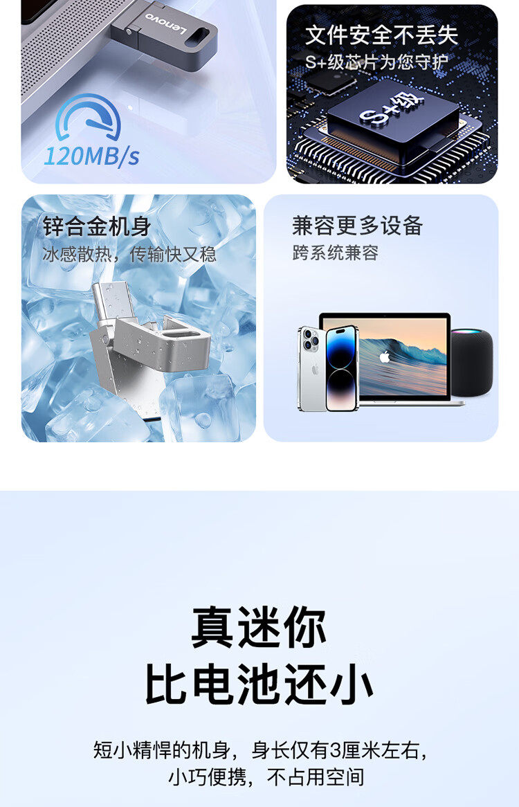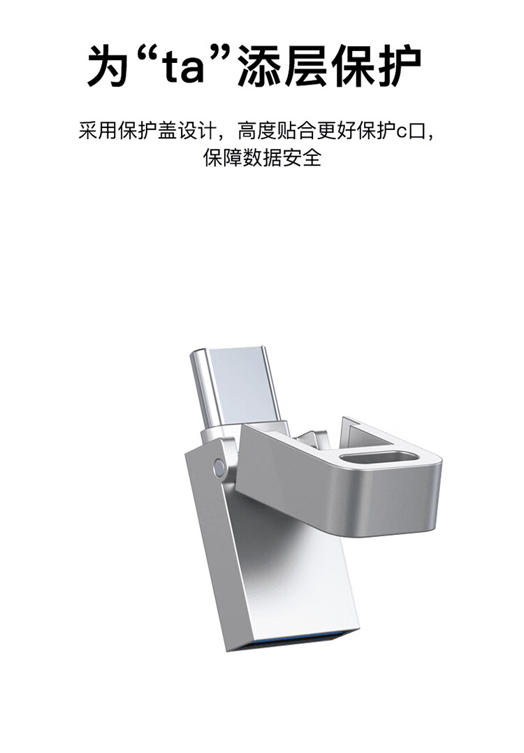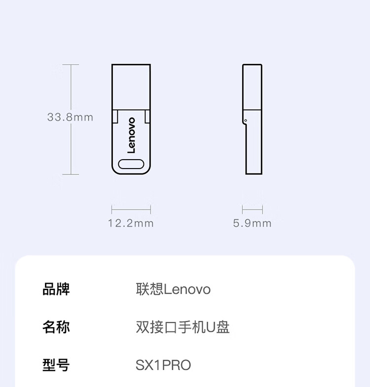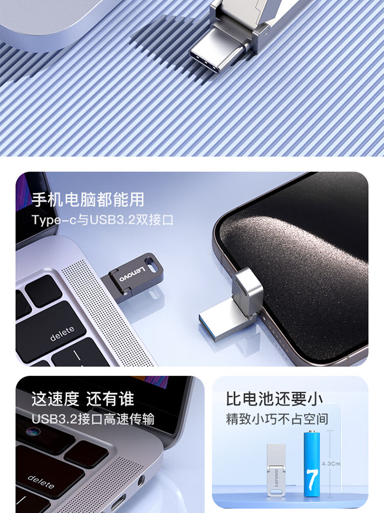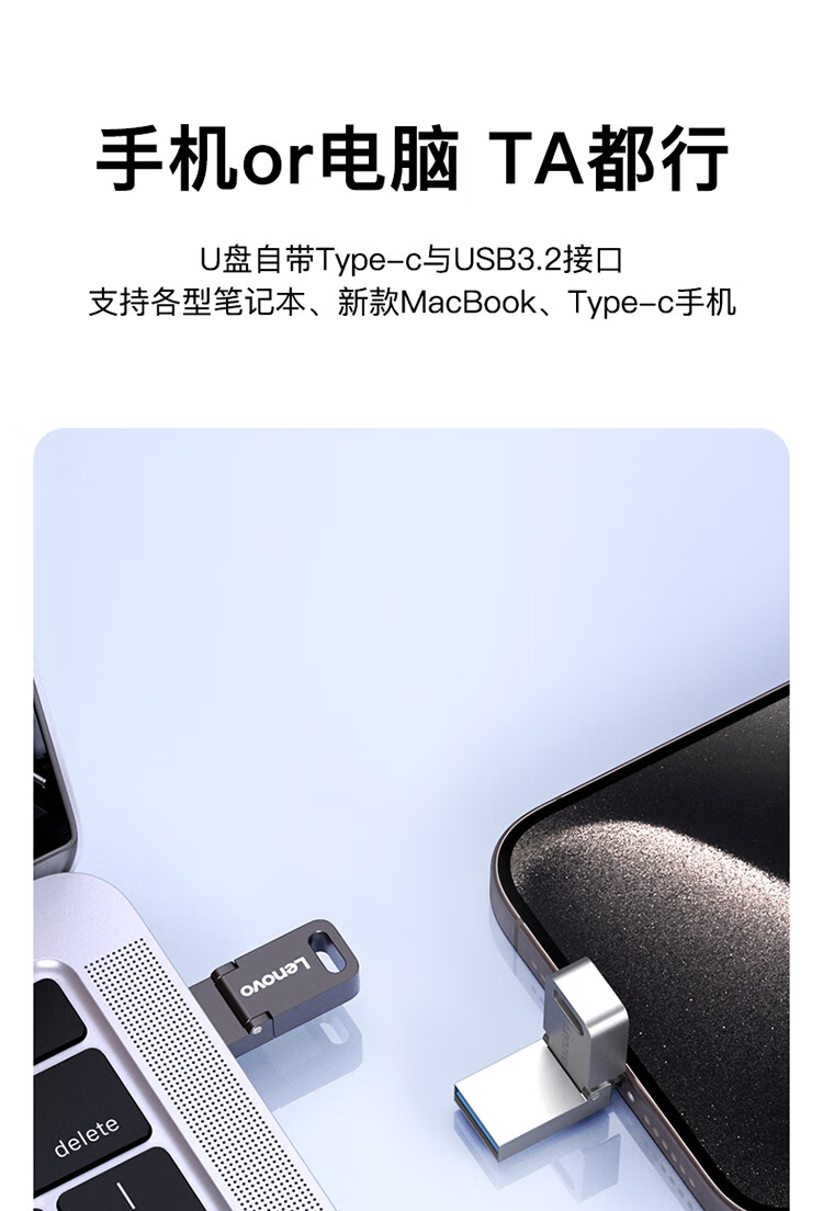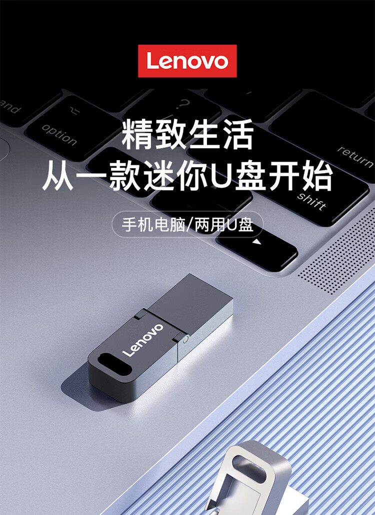 联想(Lenovo)128G Type-C USB3.2手机U盘 金属双接口优盘 学习办公优选 SX1Pro系列 银色