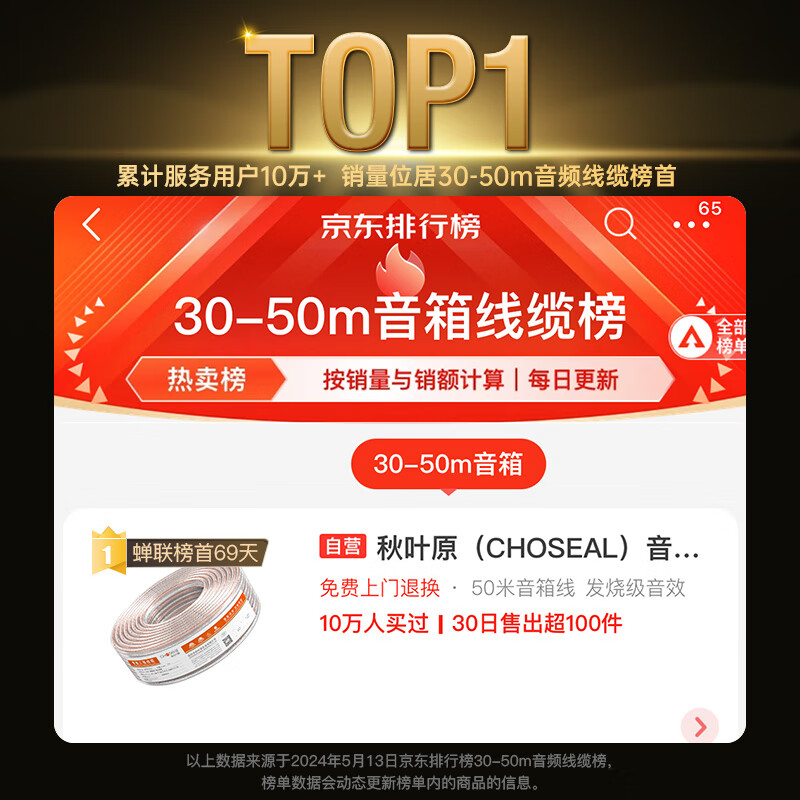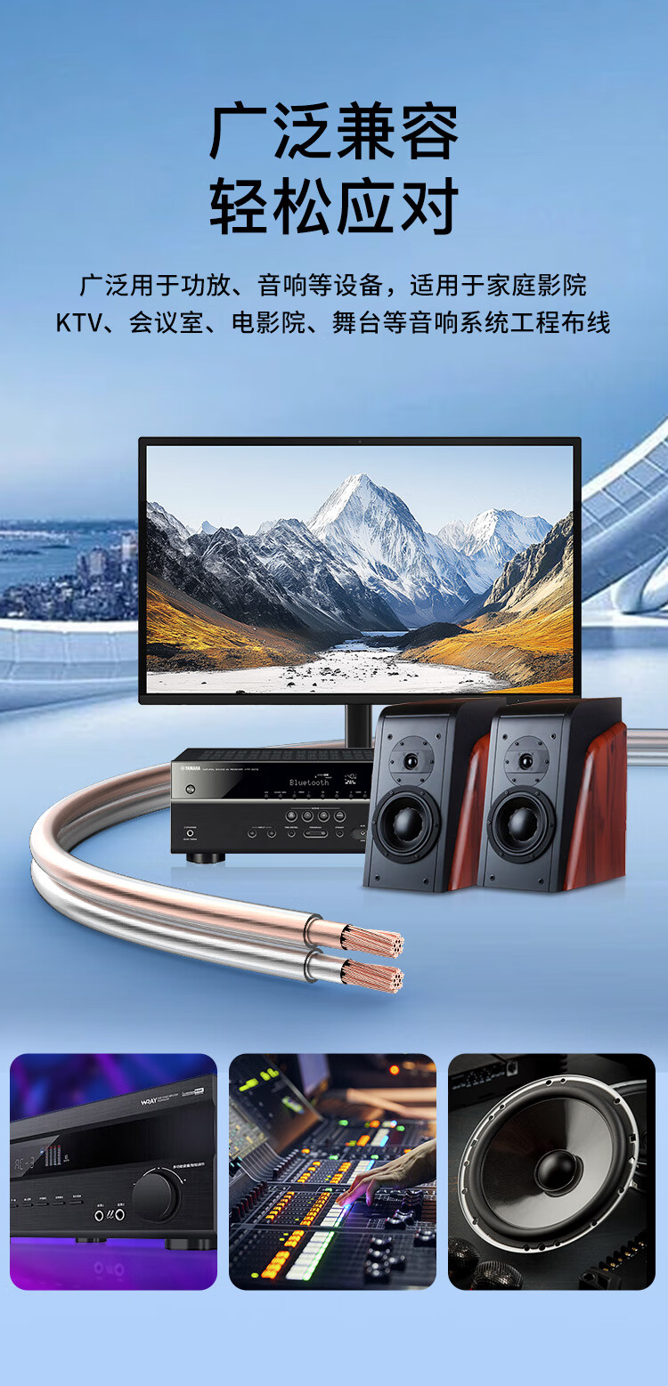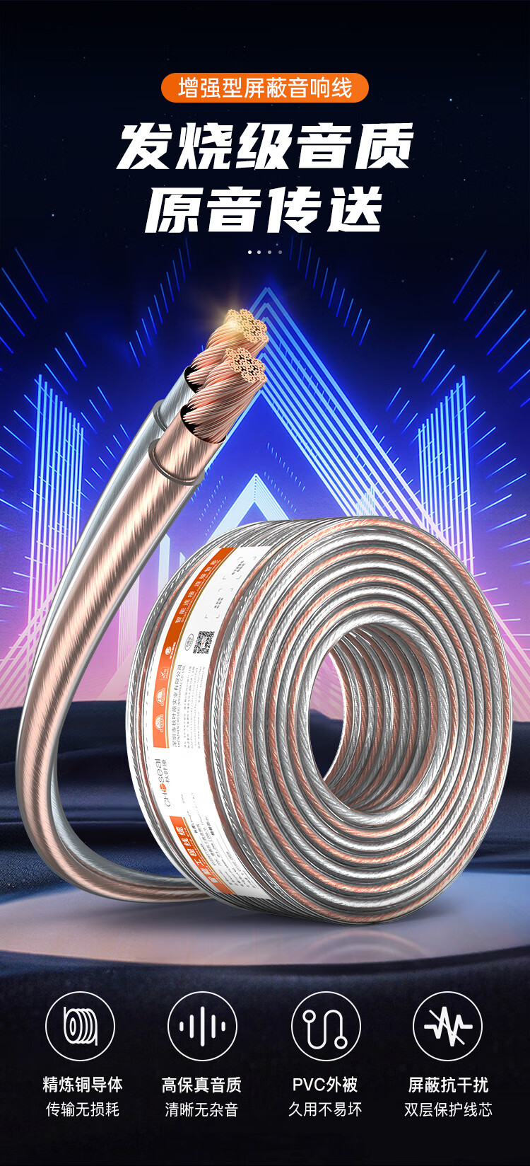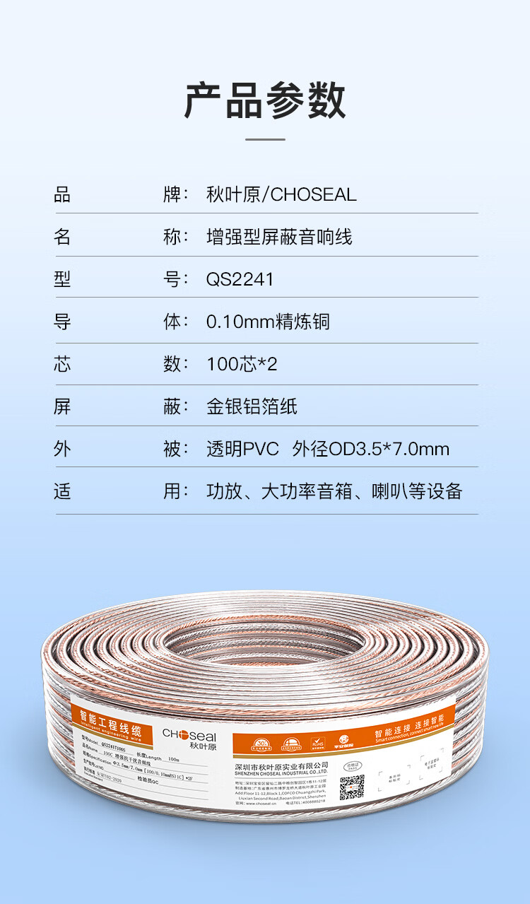 秋叶原(CHOSEAL)音响音箱专用连接线 发烧级纯铜音频喇叭线 功放连接增强屏蔽抗干扰100芯金银线100米 QS2241T100S