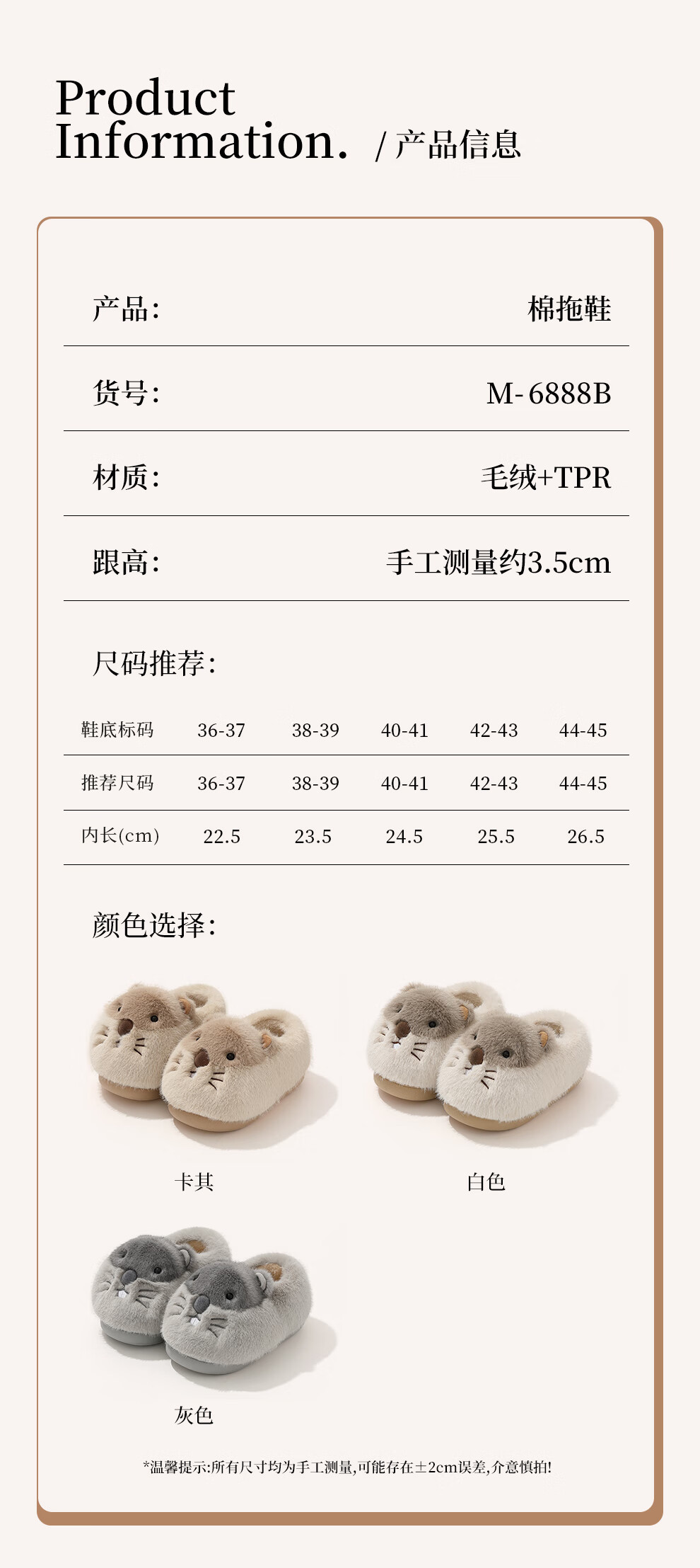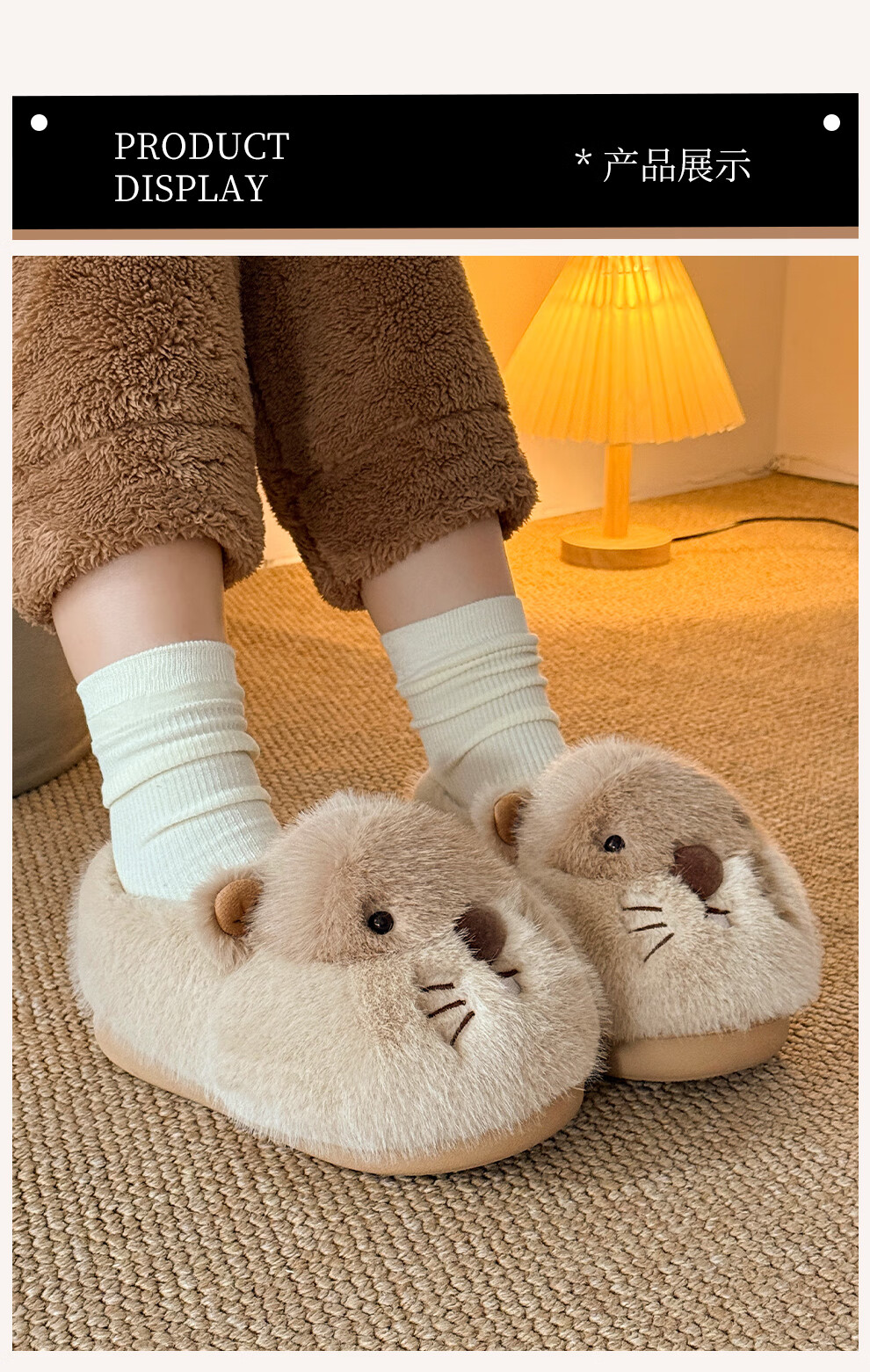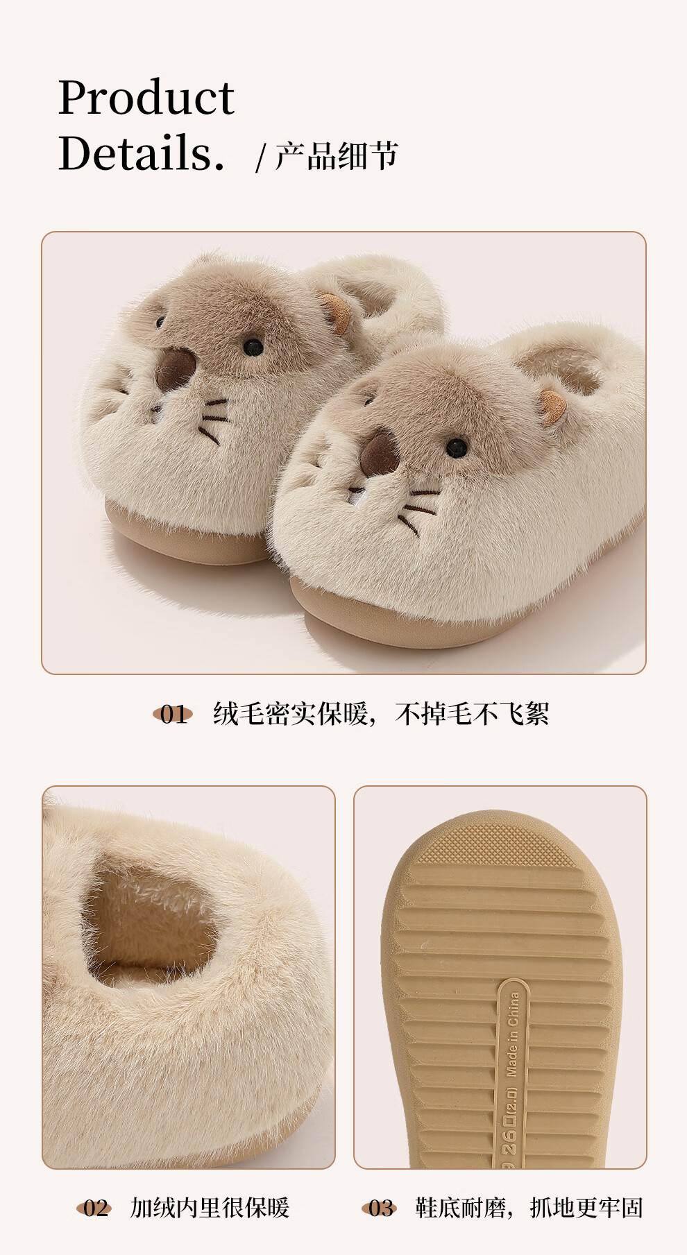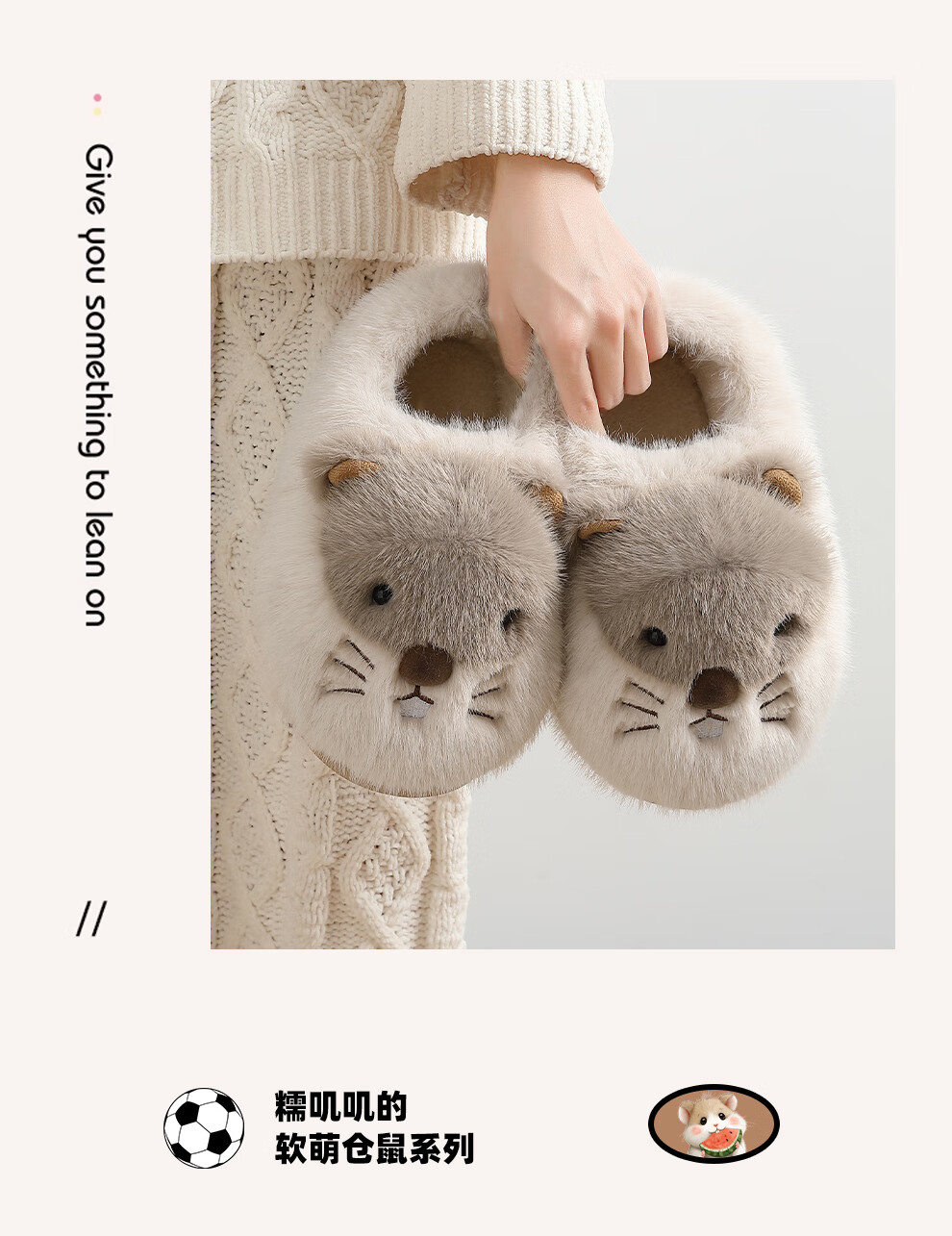 FZT可爱棉鞋女2025新款外穿厚底防滑包跟土拨鼠保暖毛绒棉鞋男冬情侣 卡其【土拨鼠】 42-43 标准码