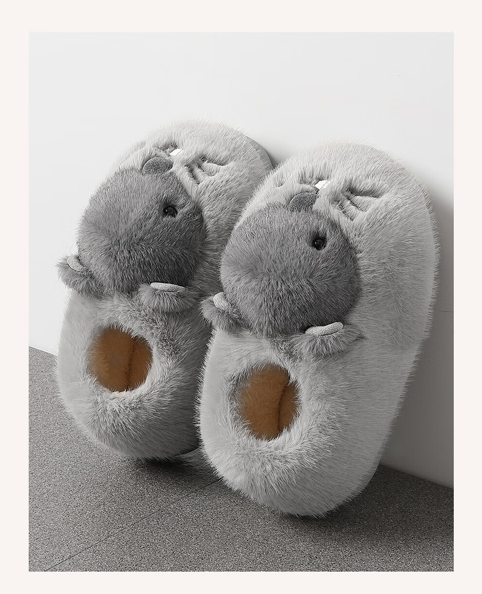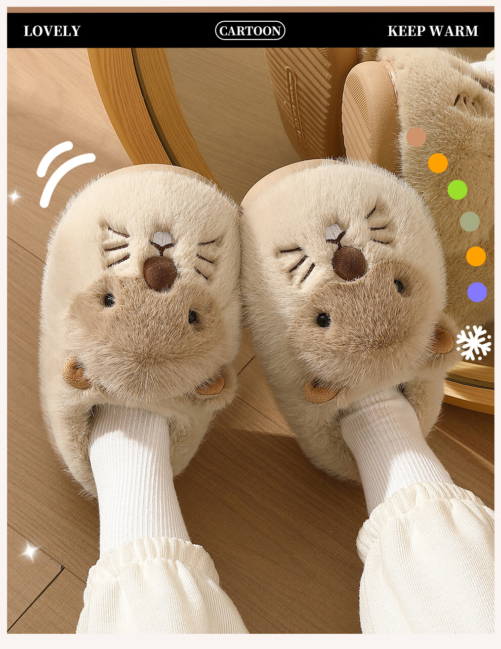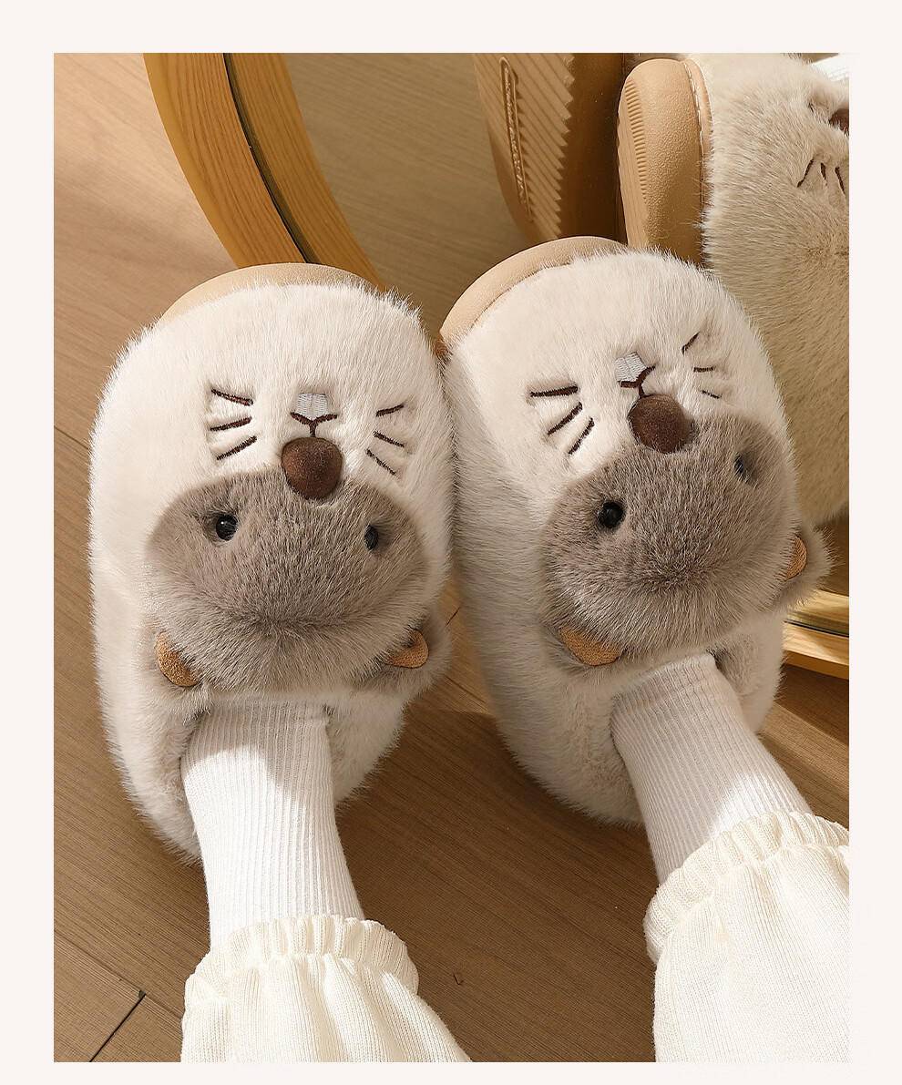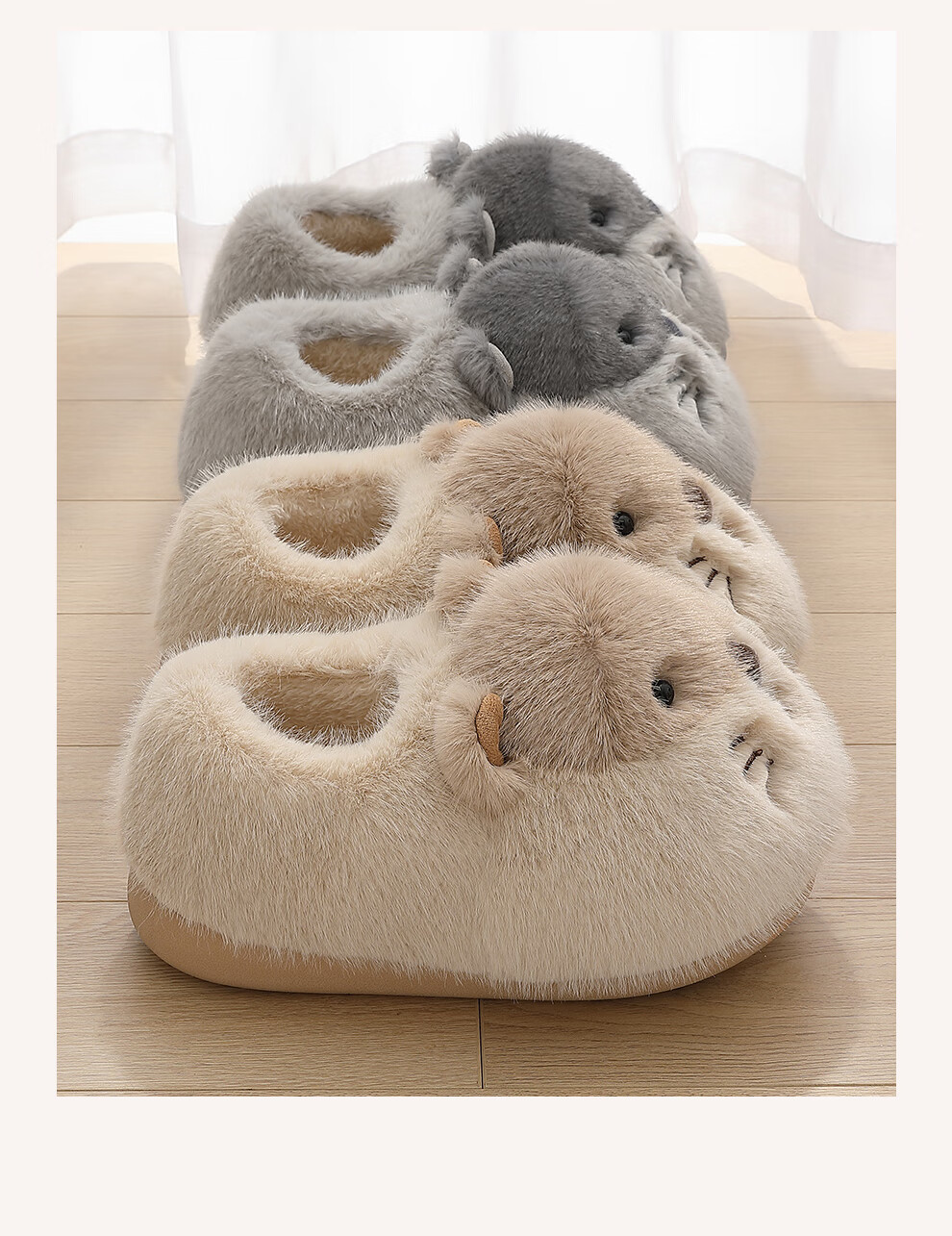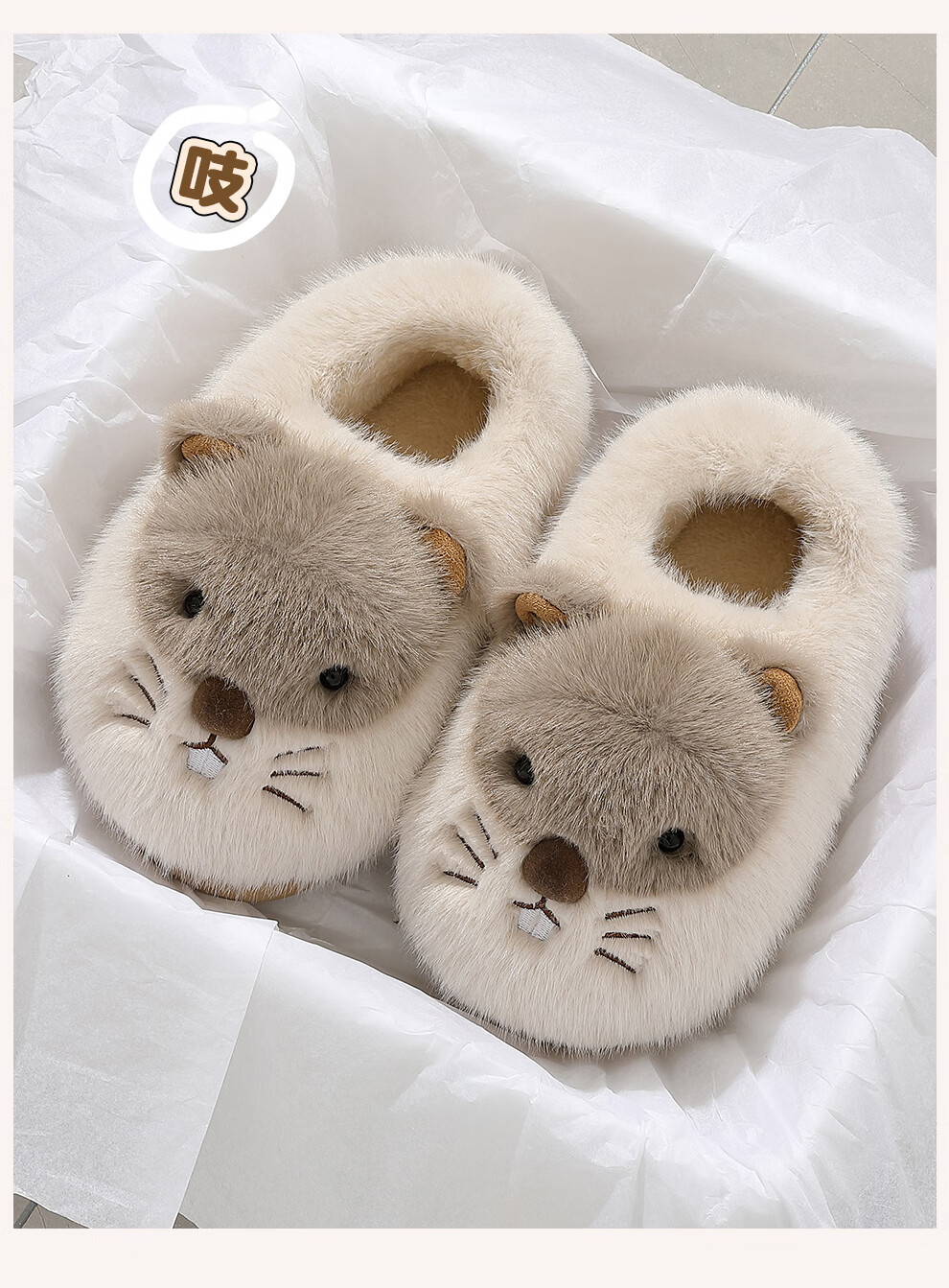 FZT可爱棉鞋女2025新款外穿厚底防滑包跟土拨鼠保暖毛绒棉鞋男冬情侣 卡其【土拨鼠】 42-43 标准码