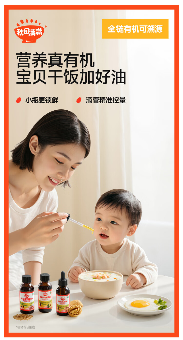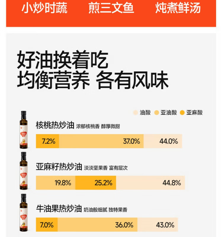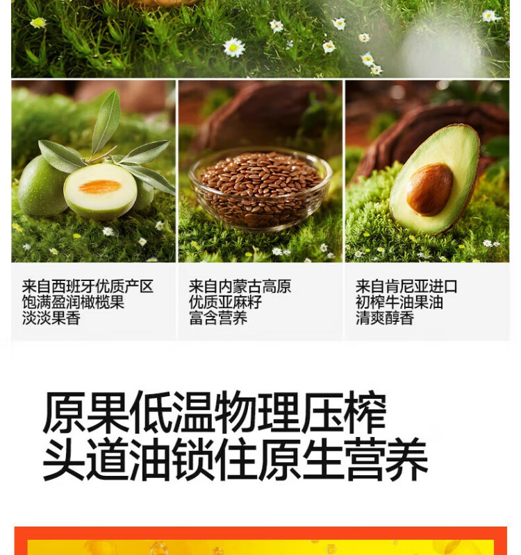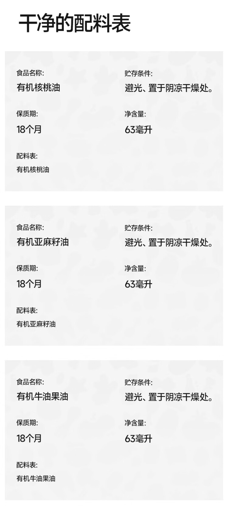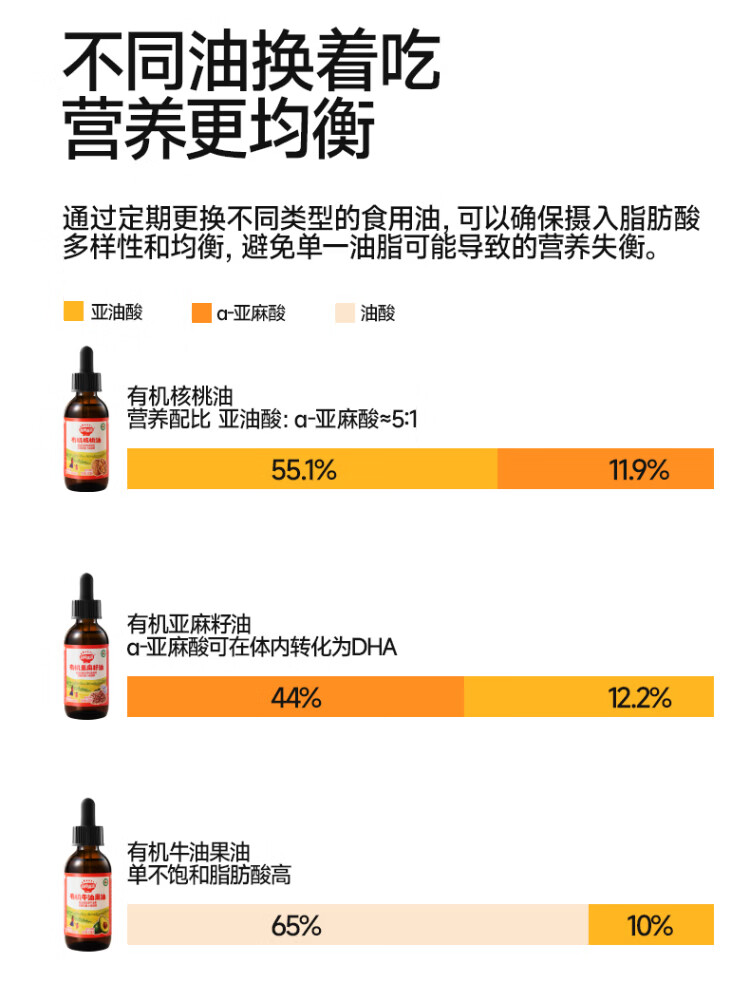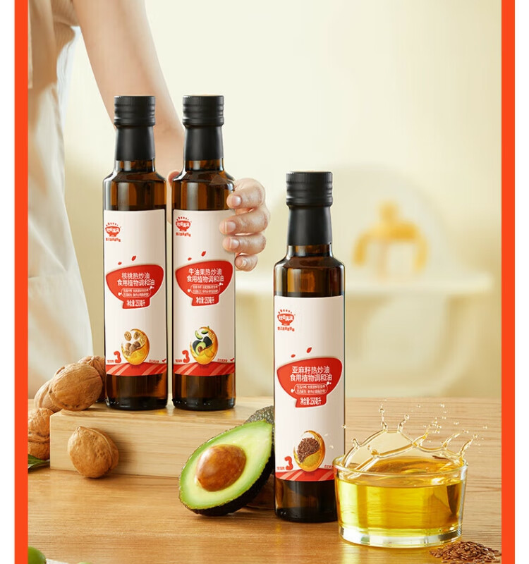 秋田满满有机核桃油亚麻籽油牛油果油儿童食用油享宝宝婴幼儿辅食谱 亚麻籽油63mL*2+牛油果油63mL*2