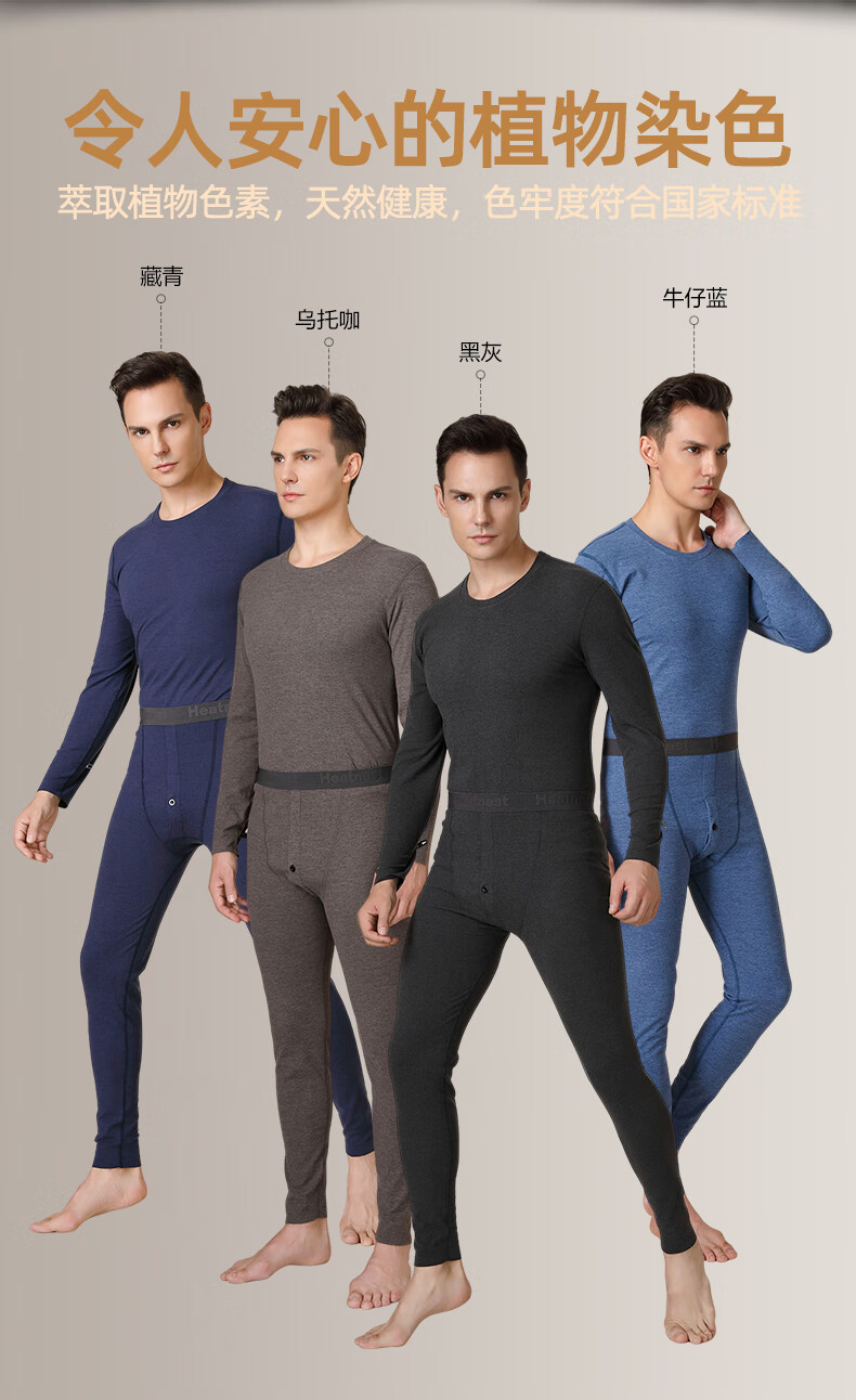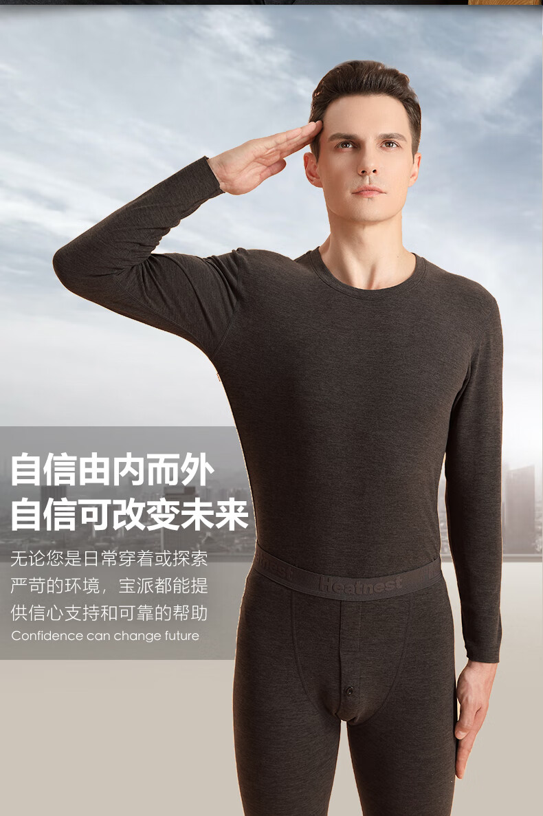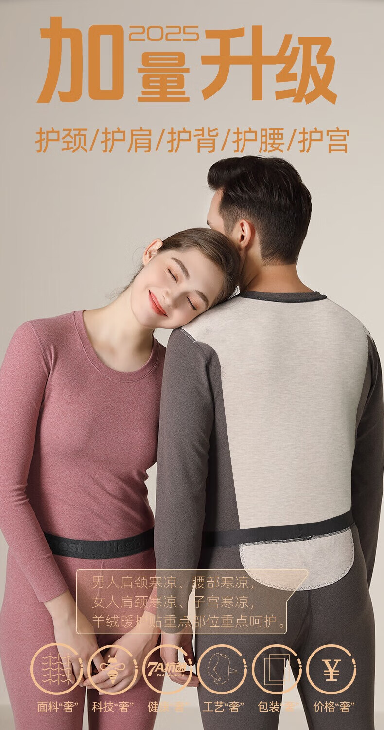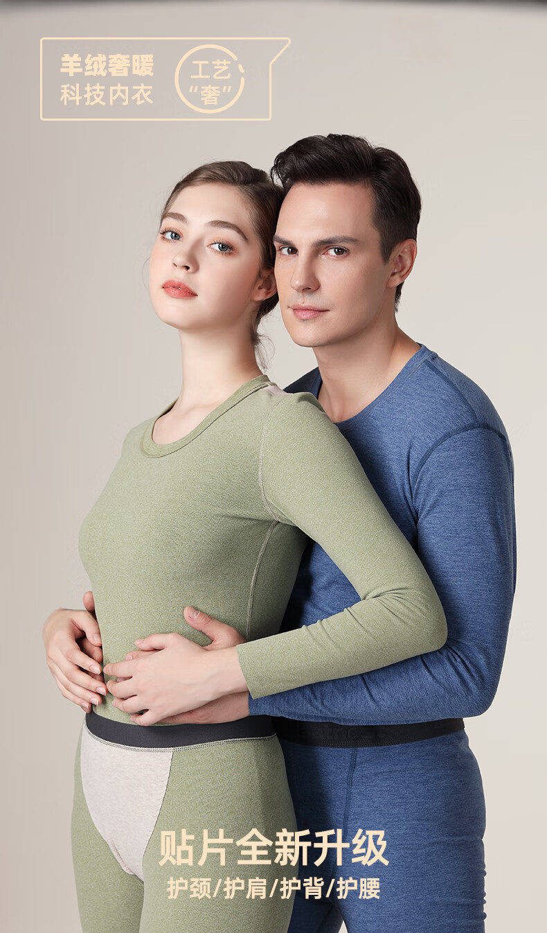 宝派保暖内衣男士套装羊绒桑蚕丝情侣加绒加厚德绒发热女秋衣秋裤秋冬 羊绒暖护贴PLUS版男藏青 XL