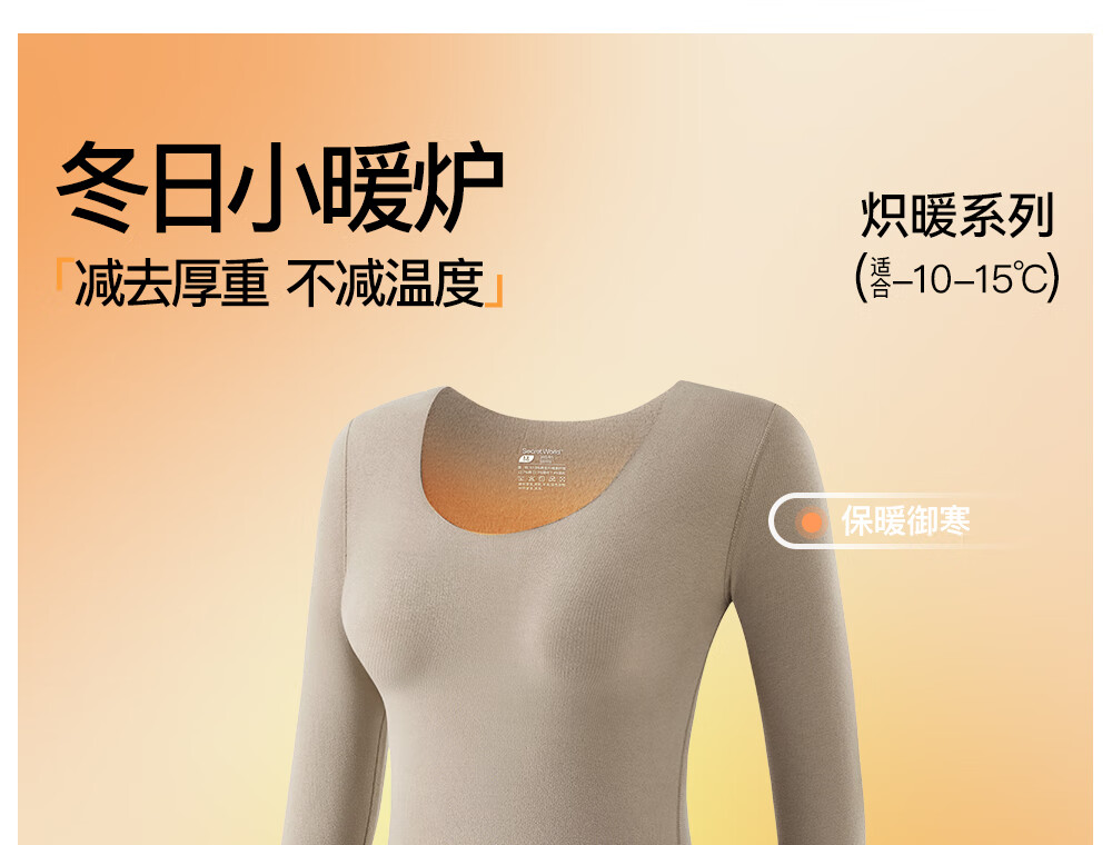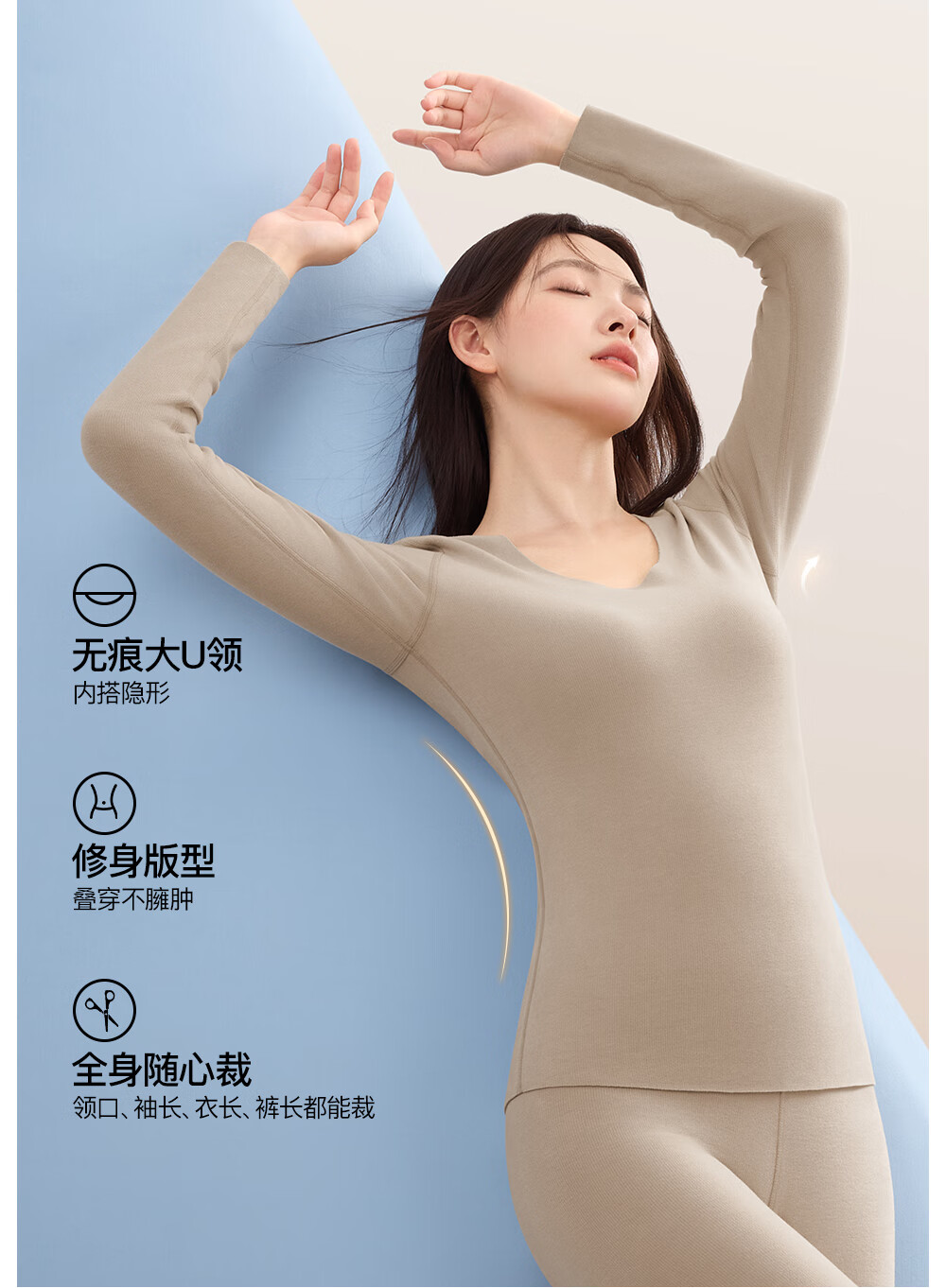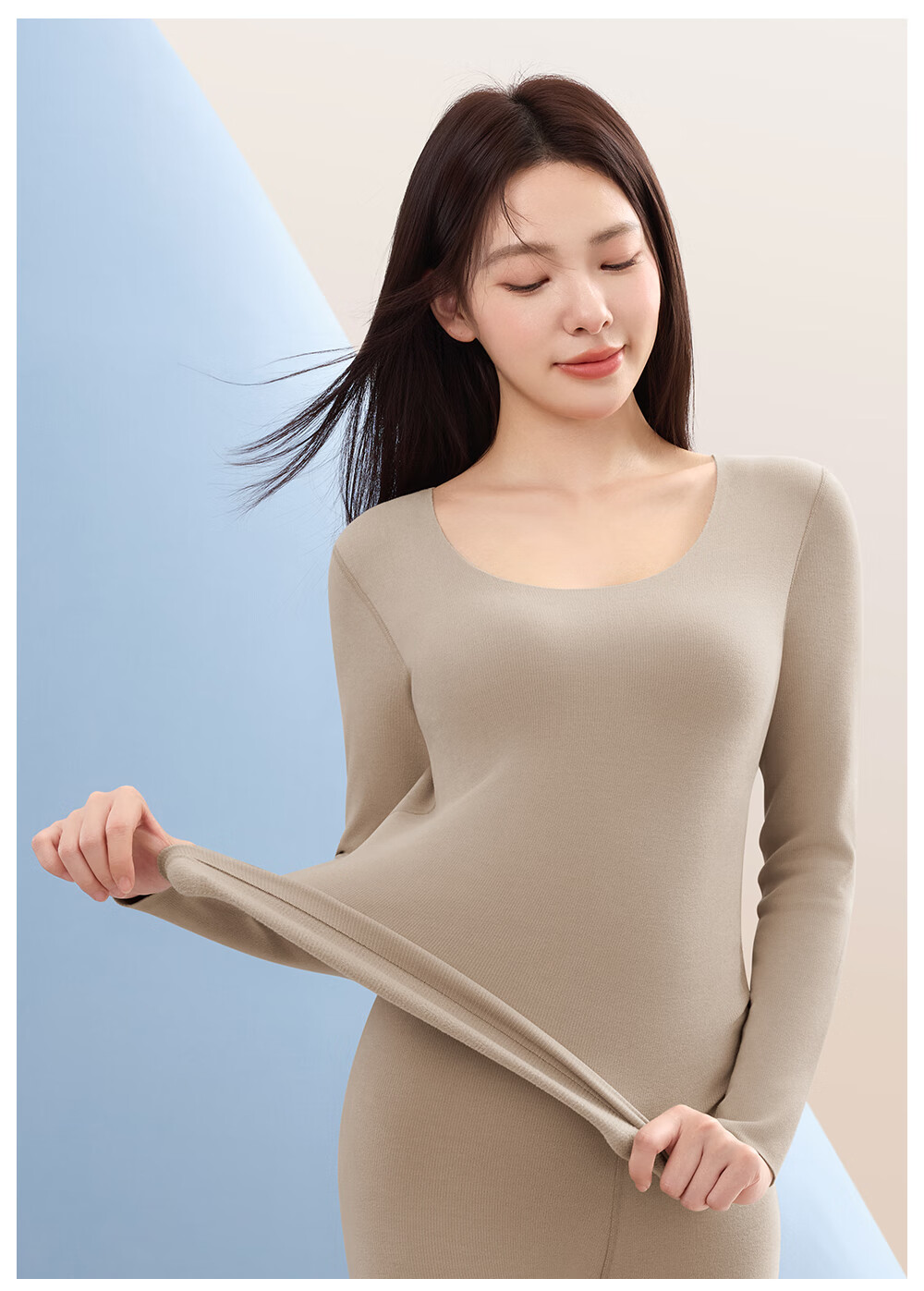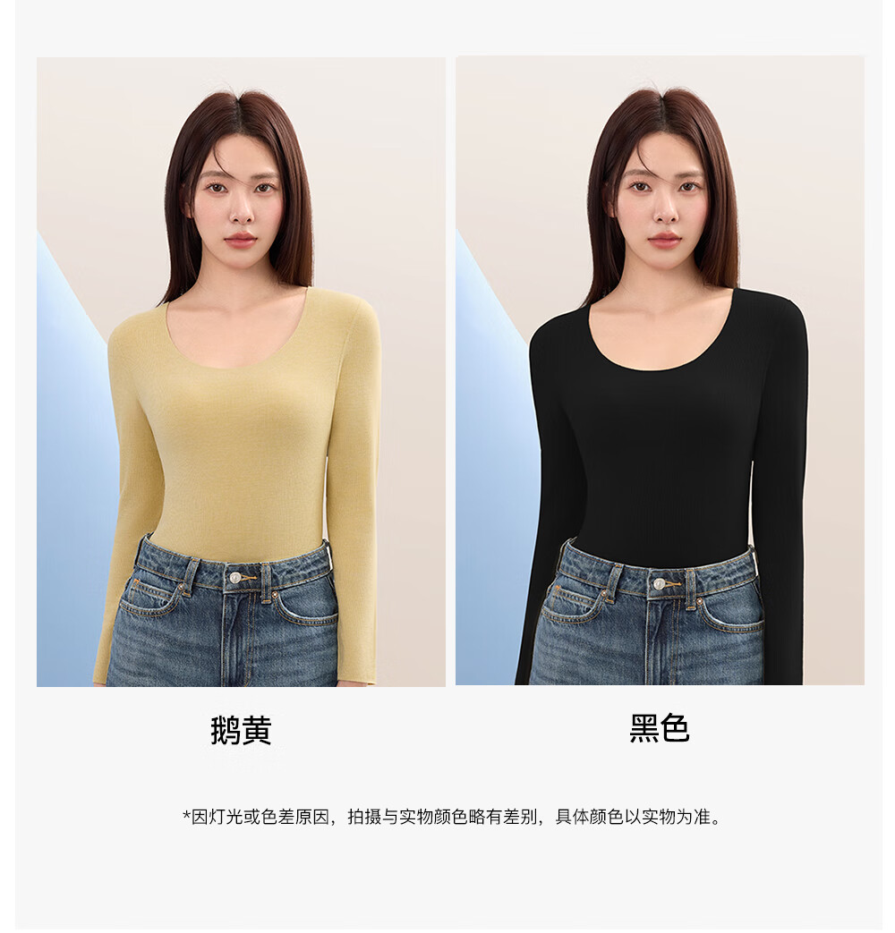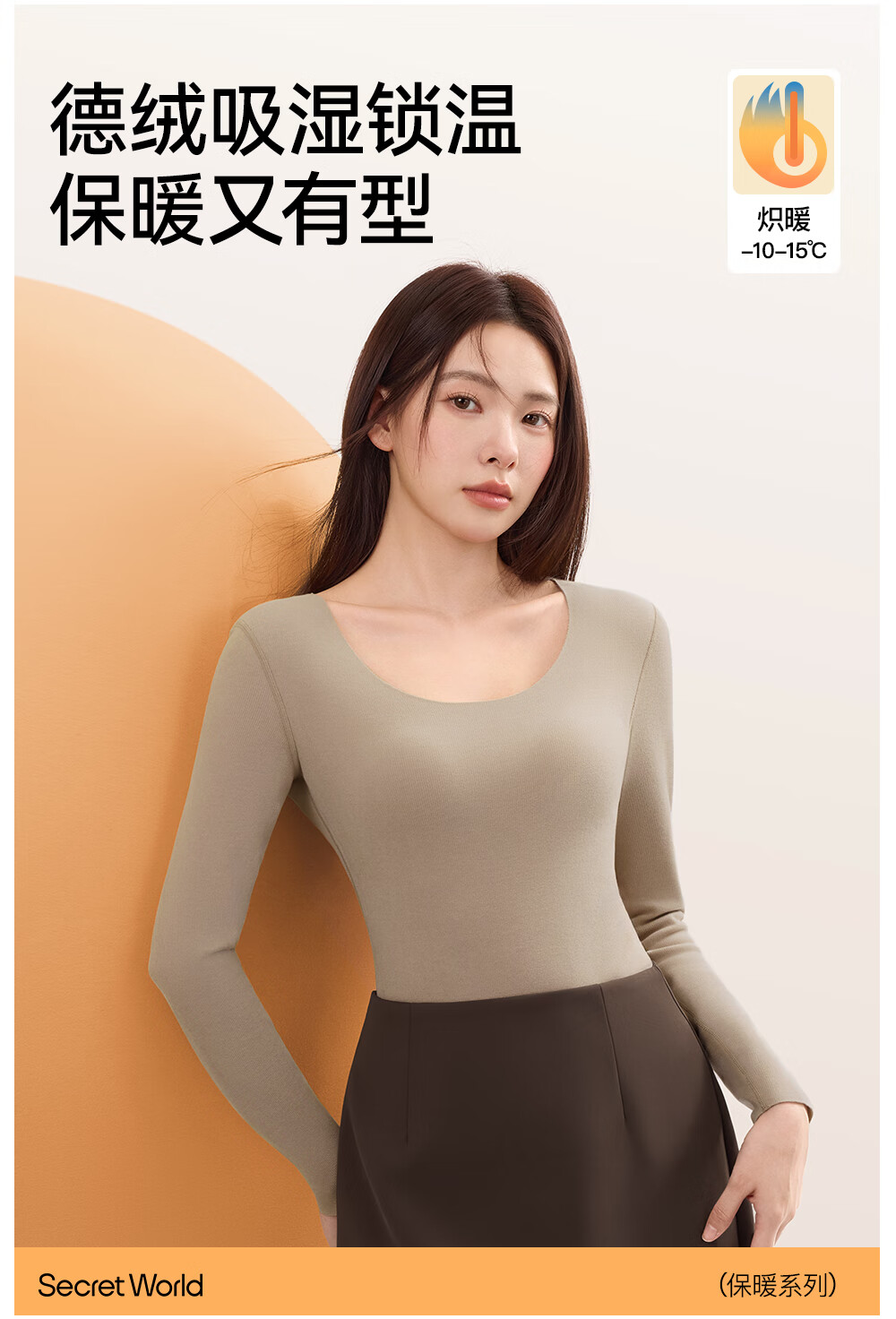 SecretWorld保暖内衣女德绒发热秋衣秋裤套装肌底衣打底衫上衣 鹅黄色 S 【80-90斤】