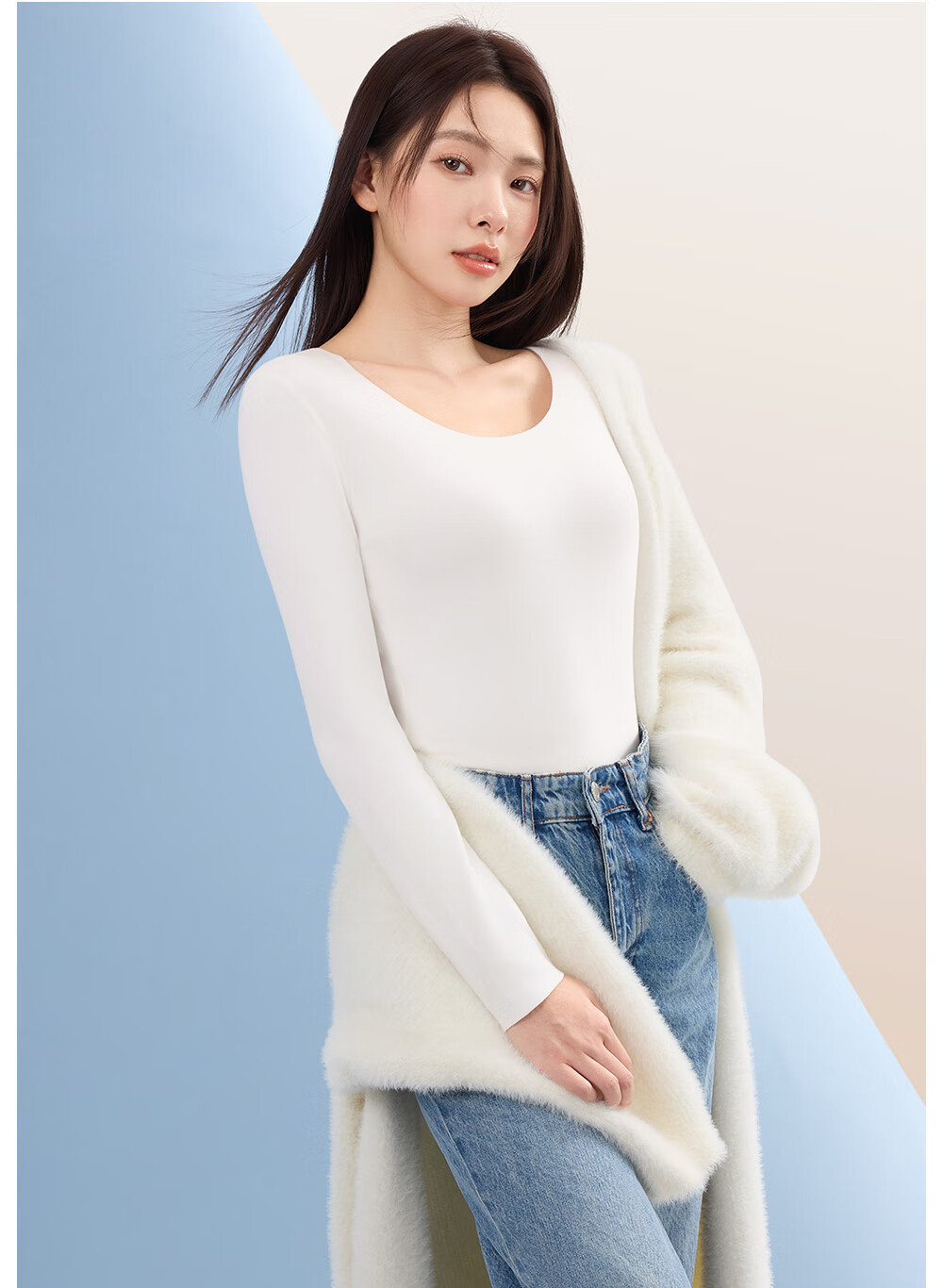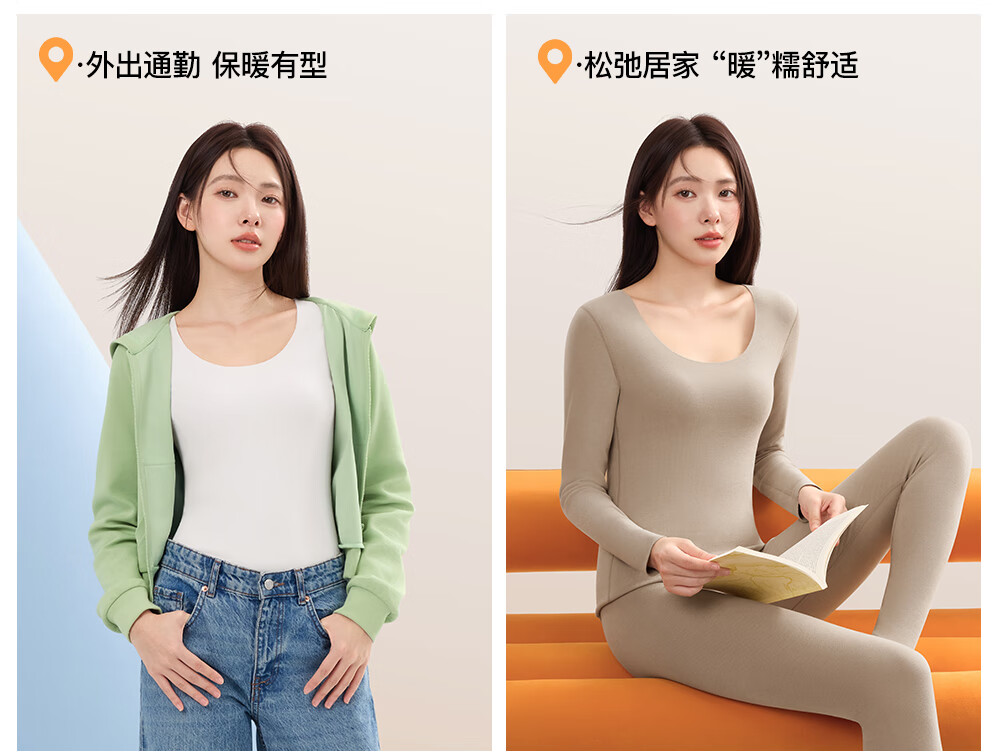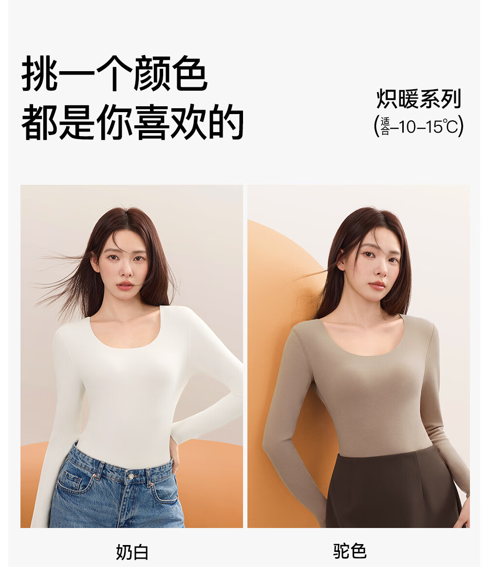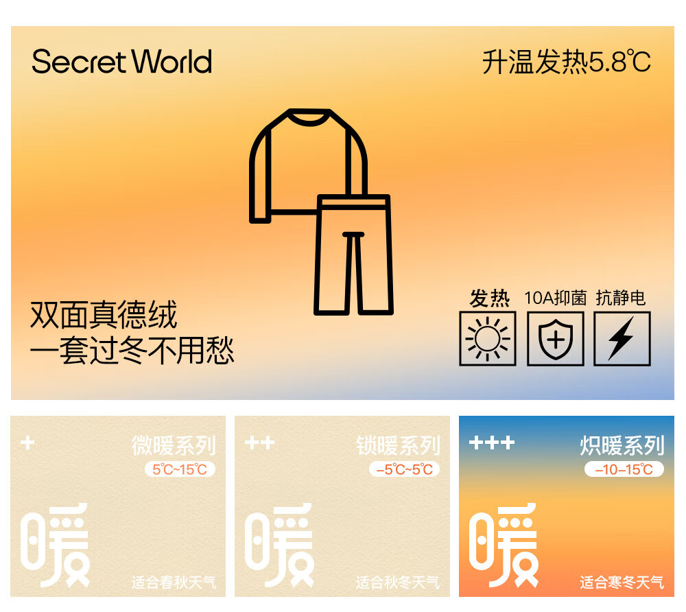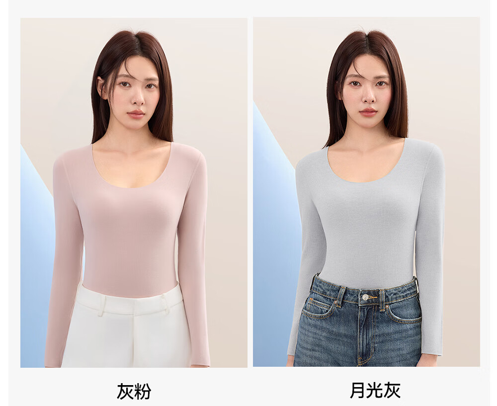 SecretWorld保暖内衣女德绒发热秋衣秋裤套装肌底衣打底衫上衣 鹅黄色 S 【80-90斤】