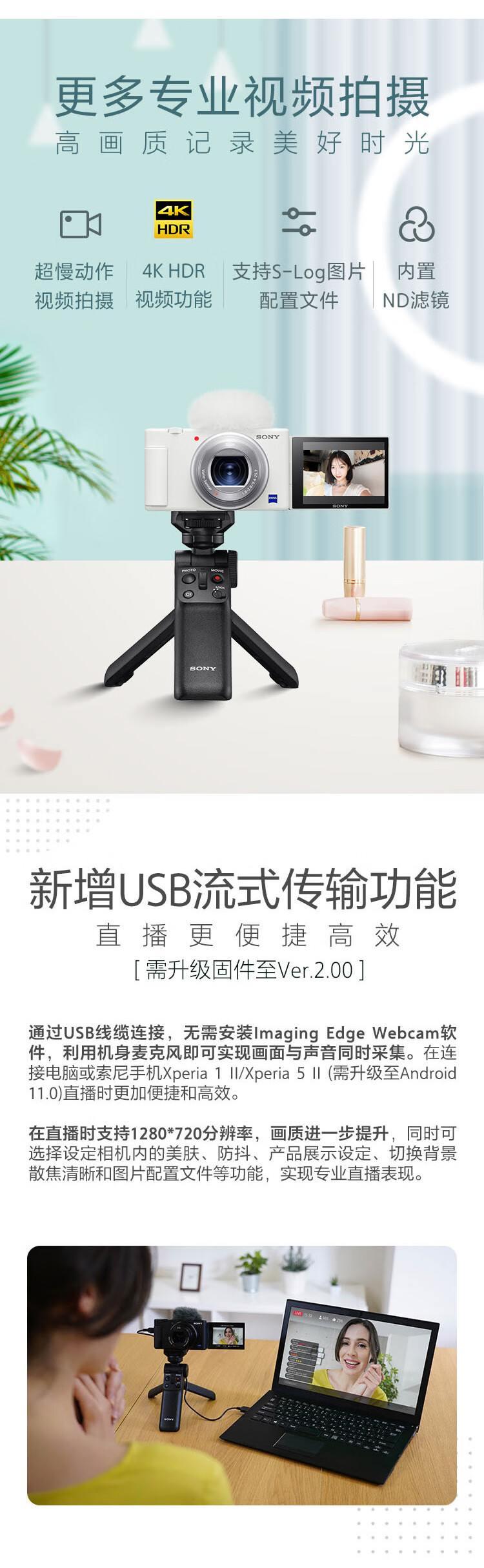 索尼(SONY)【官方直营】索尼ZV-1 女生入门数码相机 美肤拍摄 Vlog相机 小巧轻便 数码相机 卡片机 黑色单机身
