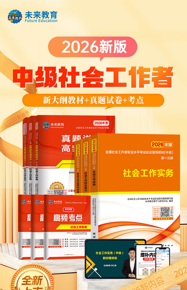 未来教育2026年全国初级中级社工社会工作者考试用书教材历年真题试卷视频题库高频考点考前预测押题 2026版【中级社工】 教材+试卷+考点+习题集(赠)
