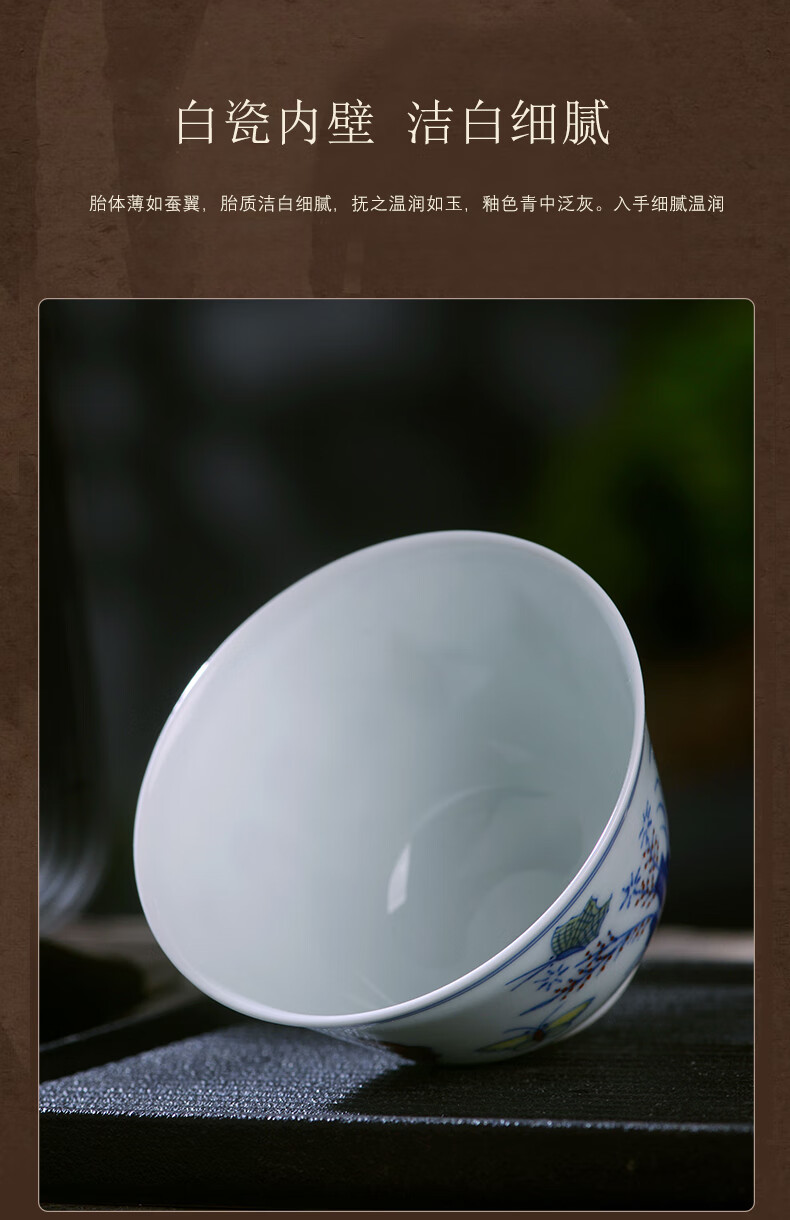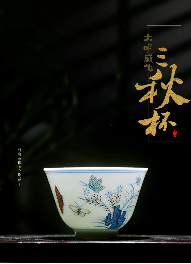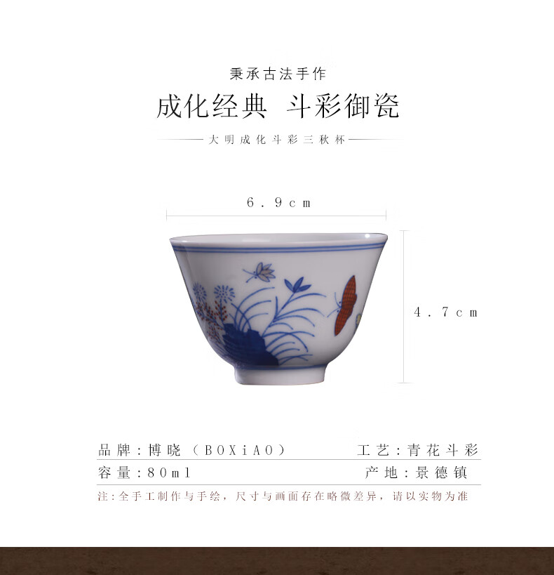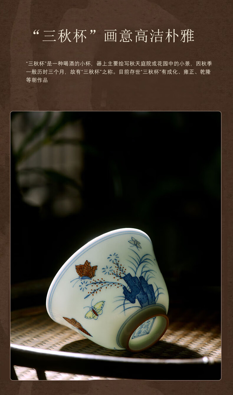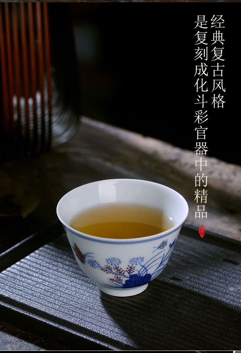 博晓(BOXiAO)主人杯单杯 仿古大明成化斗彩三秋杯景德镇陶瓷功夫茶具 品茗茶杯 成化青花斗彩三秋杯