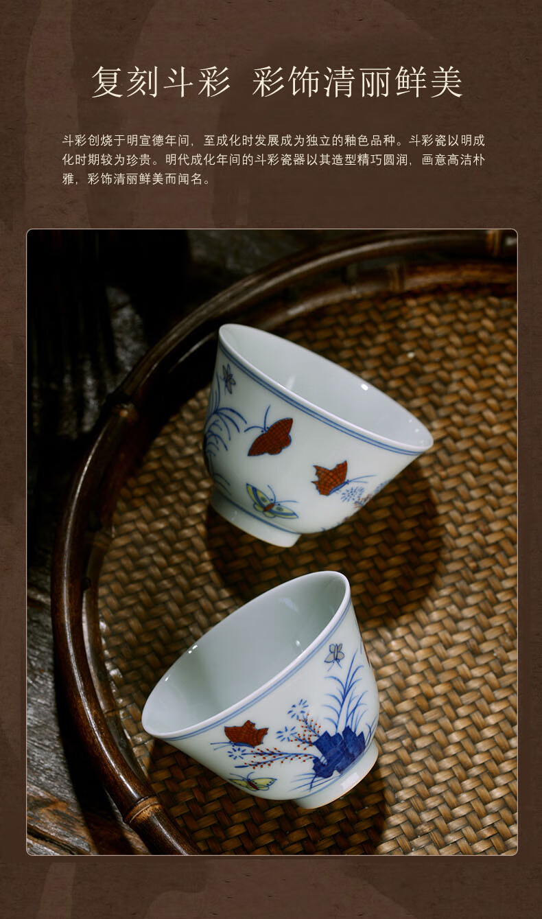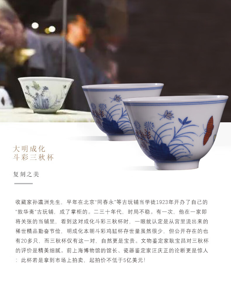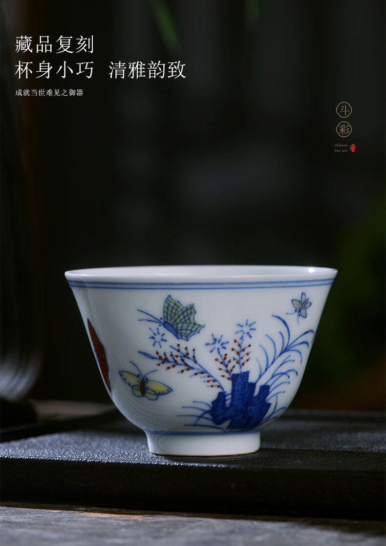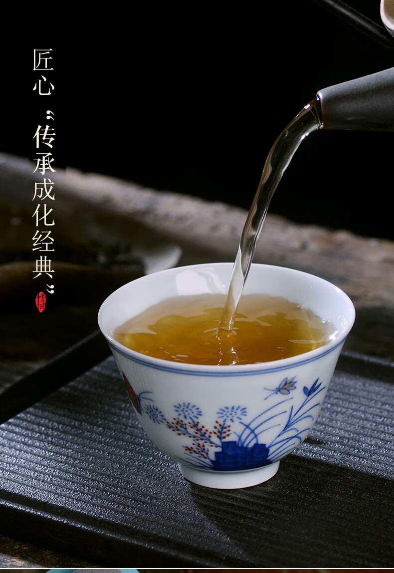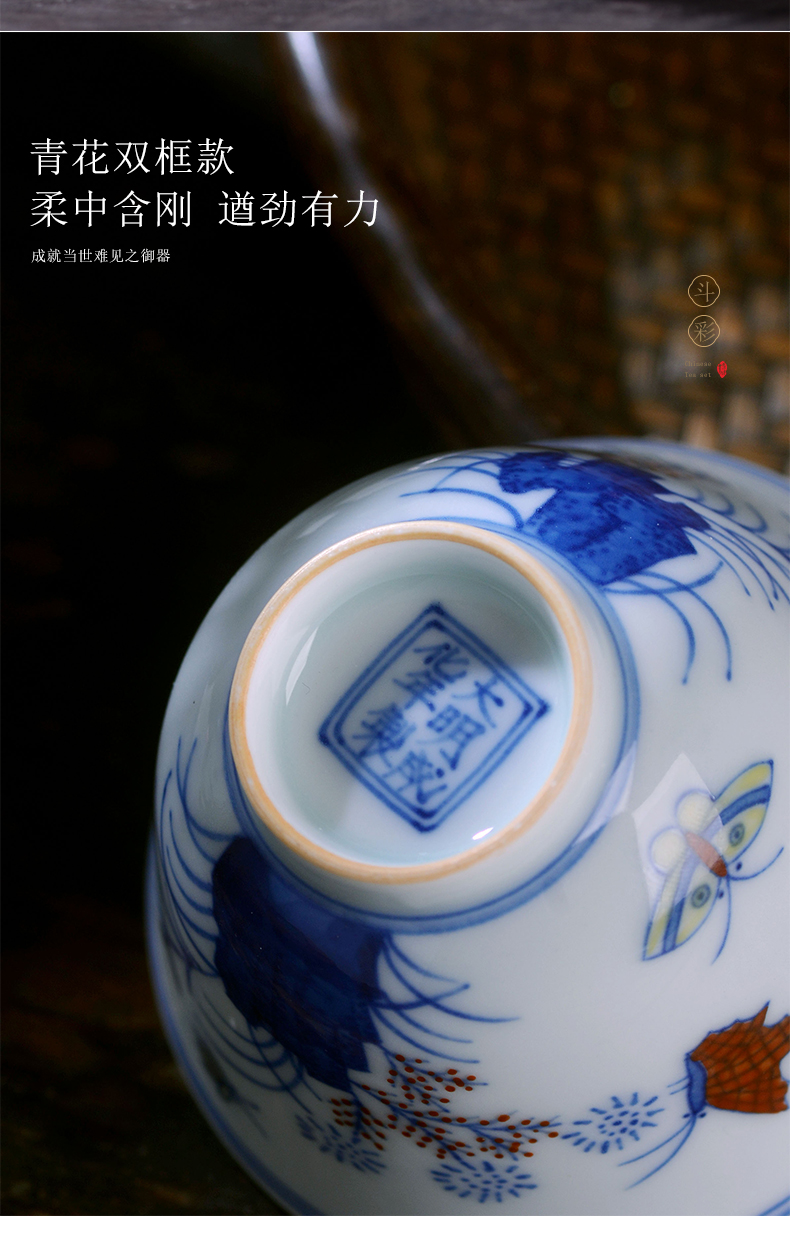 博晓(BOXiAO)主人杯单杯 仿古大明成化斗彩三秋杯景德镇陶瓷功夫茶具 品茗茶杯 成化青花斗彩三秋杯