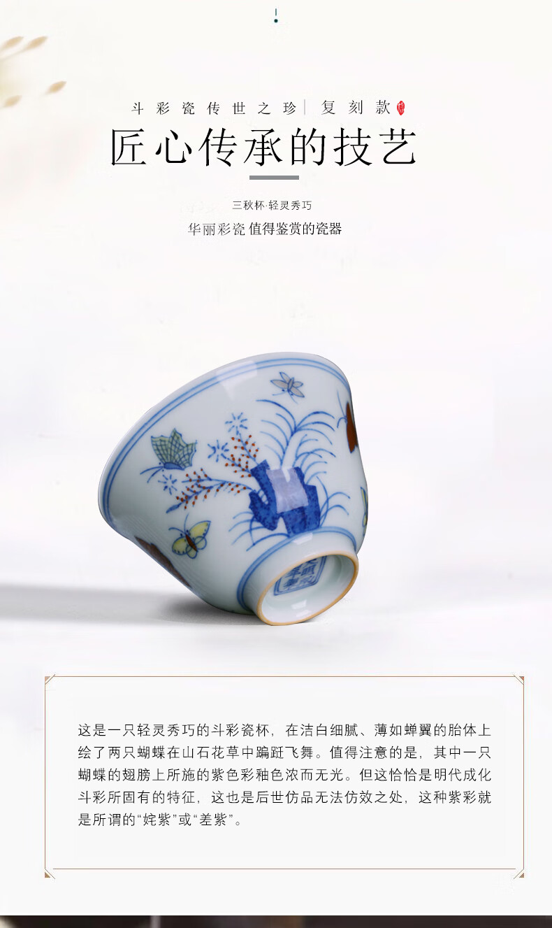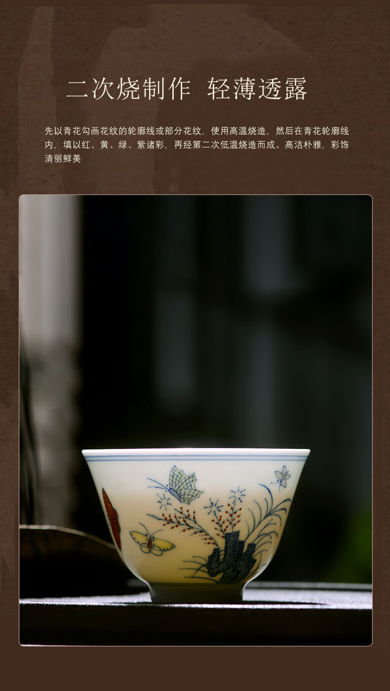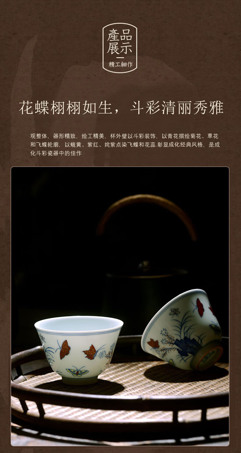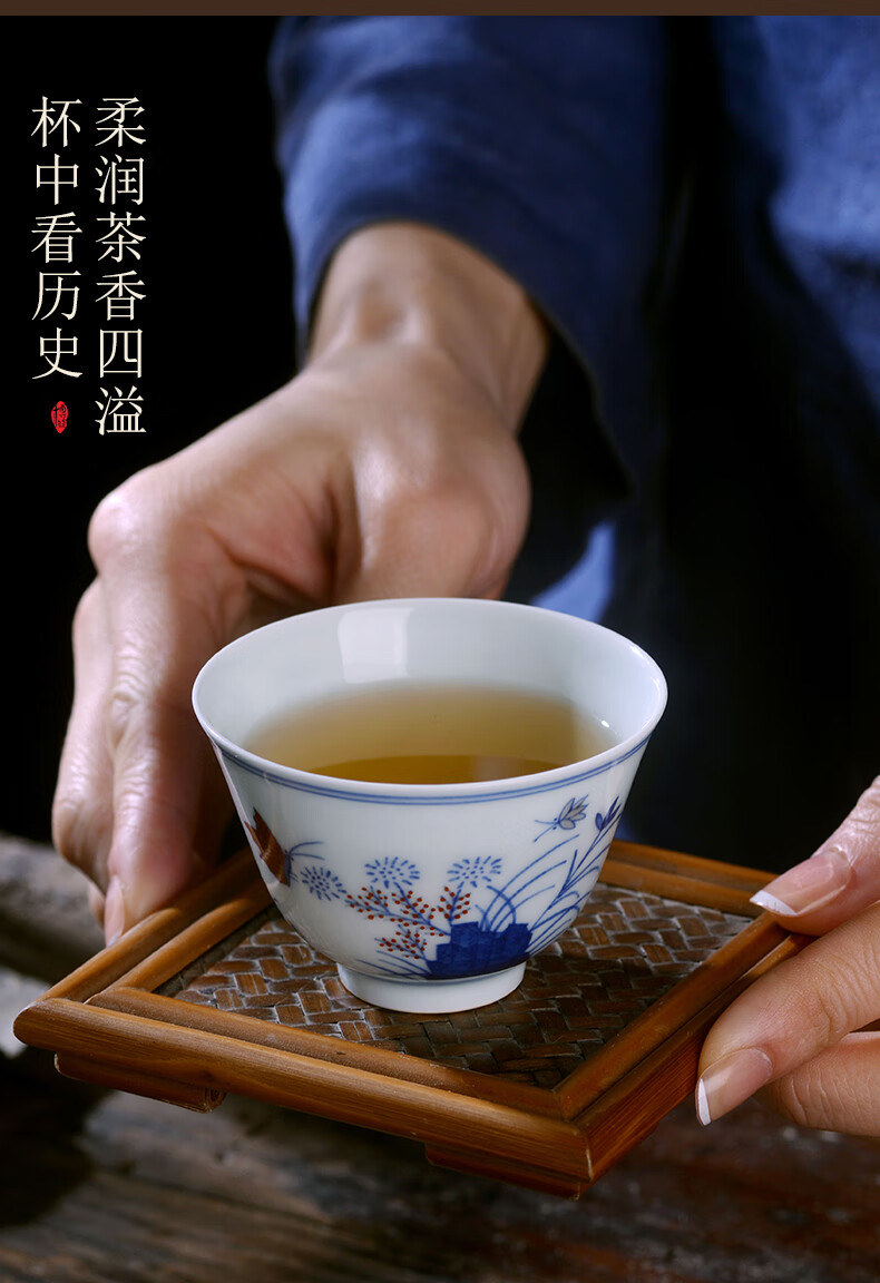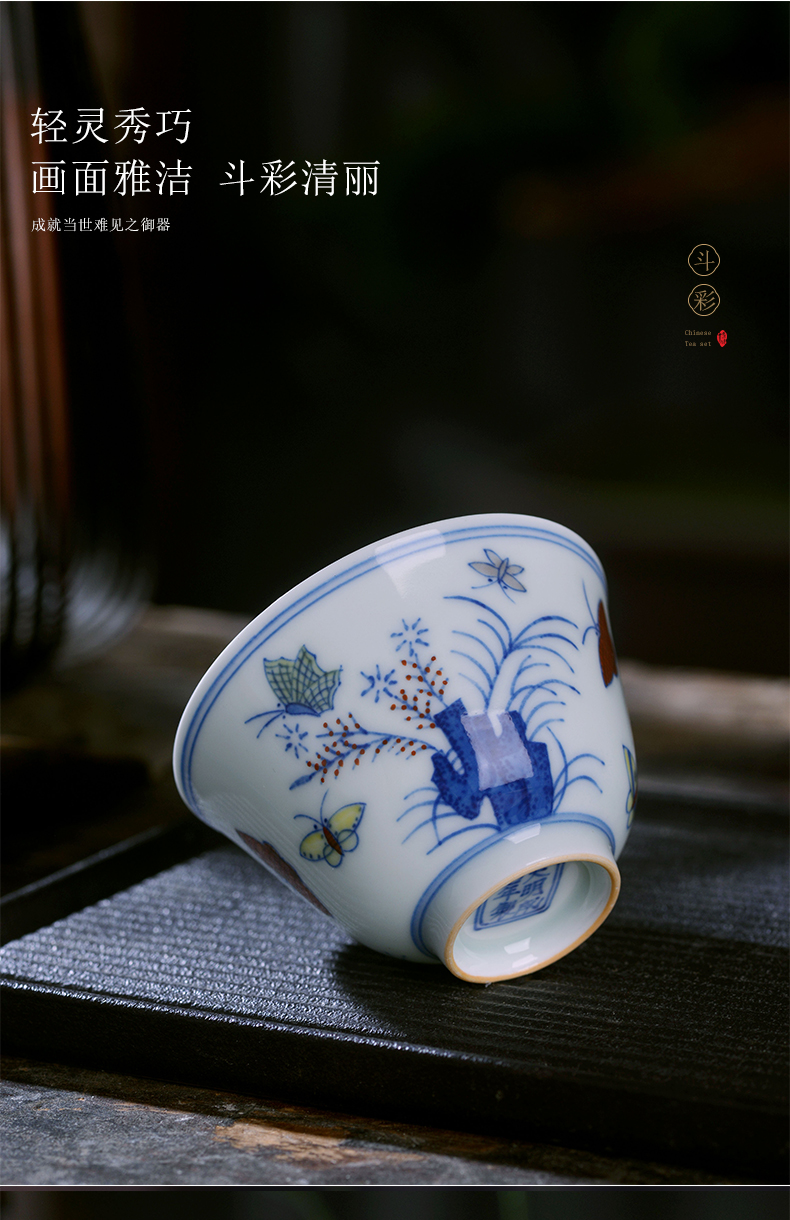 博晓(BOXiAO)主人杯单杯 仿古大明成化斗彩三秋杯景德镇陶瓷功夫茶具 品茗茶杯 成化青花斗彩三秋杯
