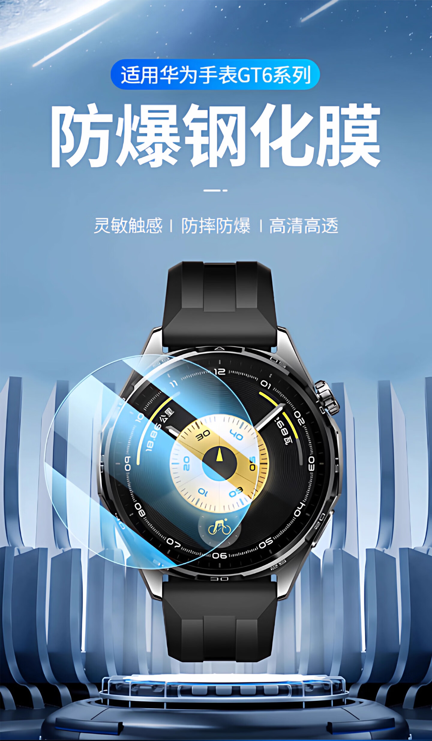 维信森适用于华为手表GT6保护膜watch gt5手表膜GT5Pro 46mm钢化膜全屏覆盖高清防摔耐磨抗指纹贴膜 【GT6/GT5/Pro-46mm】 高清钢化膜【2片装/贴坏包赔/全屏覆盖/防摔耐磨】