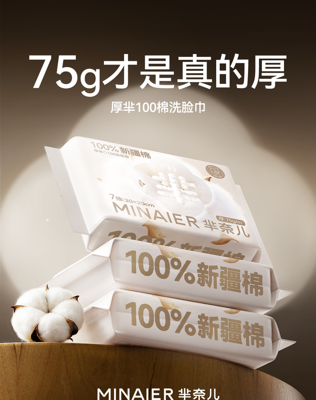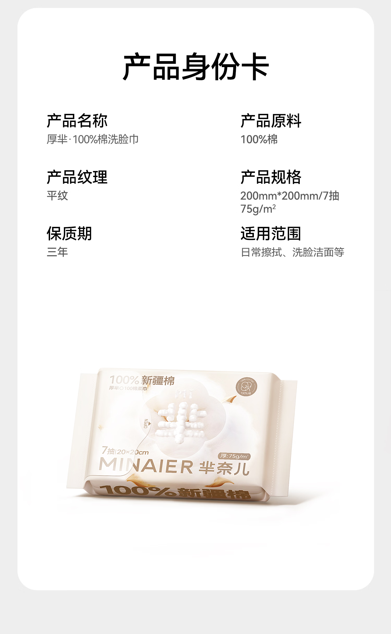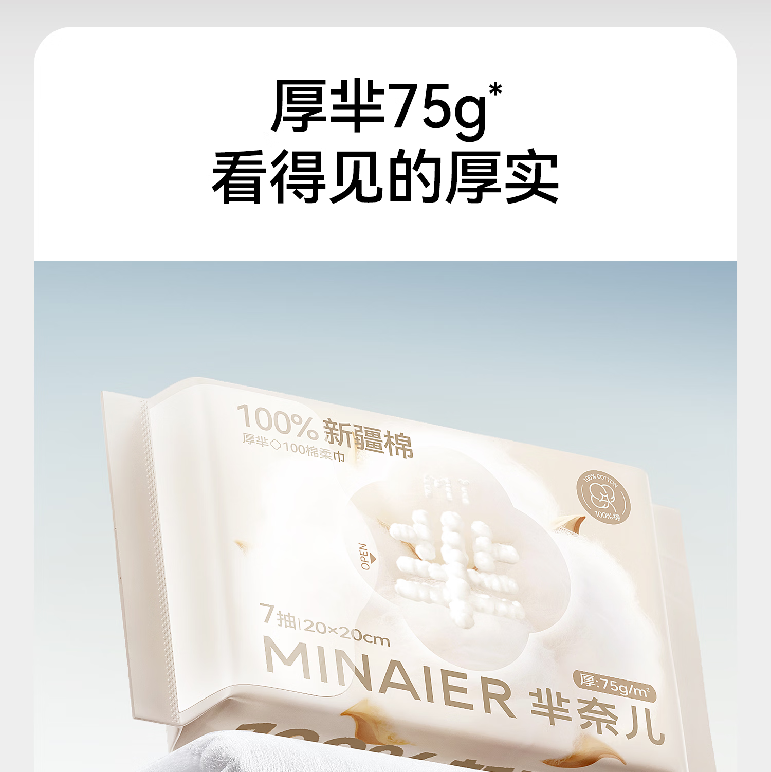 芈奈儿一次性加厚纯棉洗脸巾100%新疆棉干湿两用棉柔巾 【平纹100%棉】7抽*20包