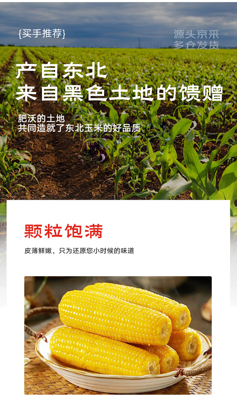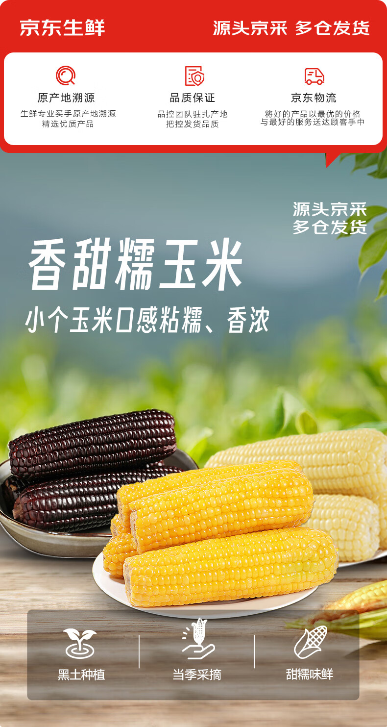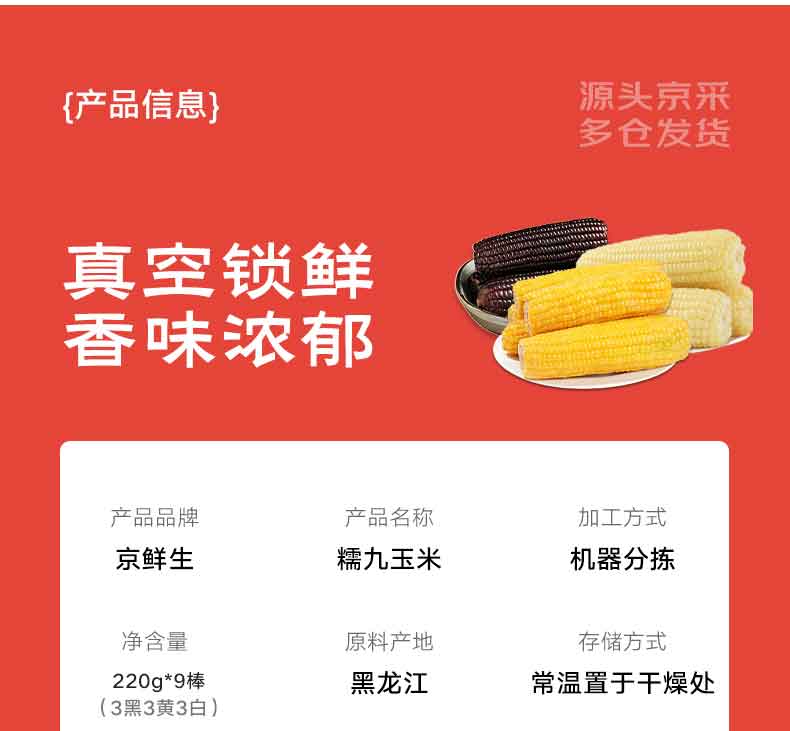 京鲜生东北糯玉米3黄3白3黑220g*9棒 真空包装新鲜甜糯玉米棒 源头直发