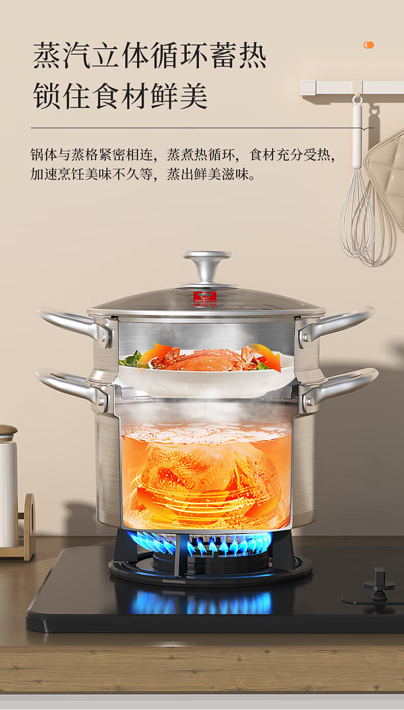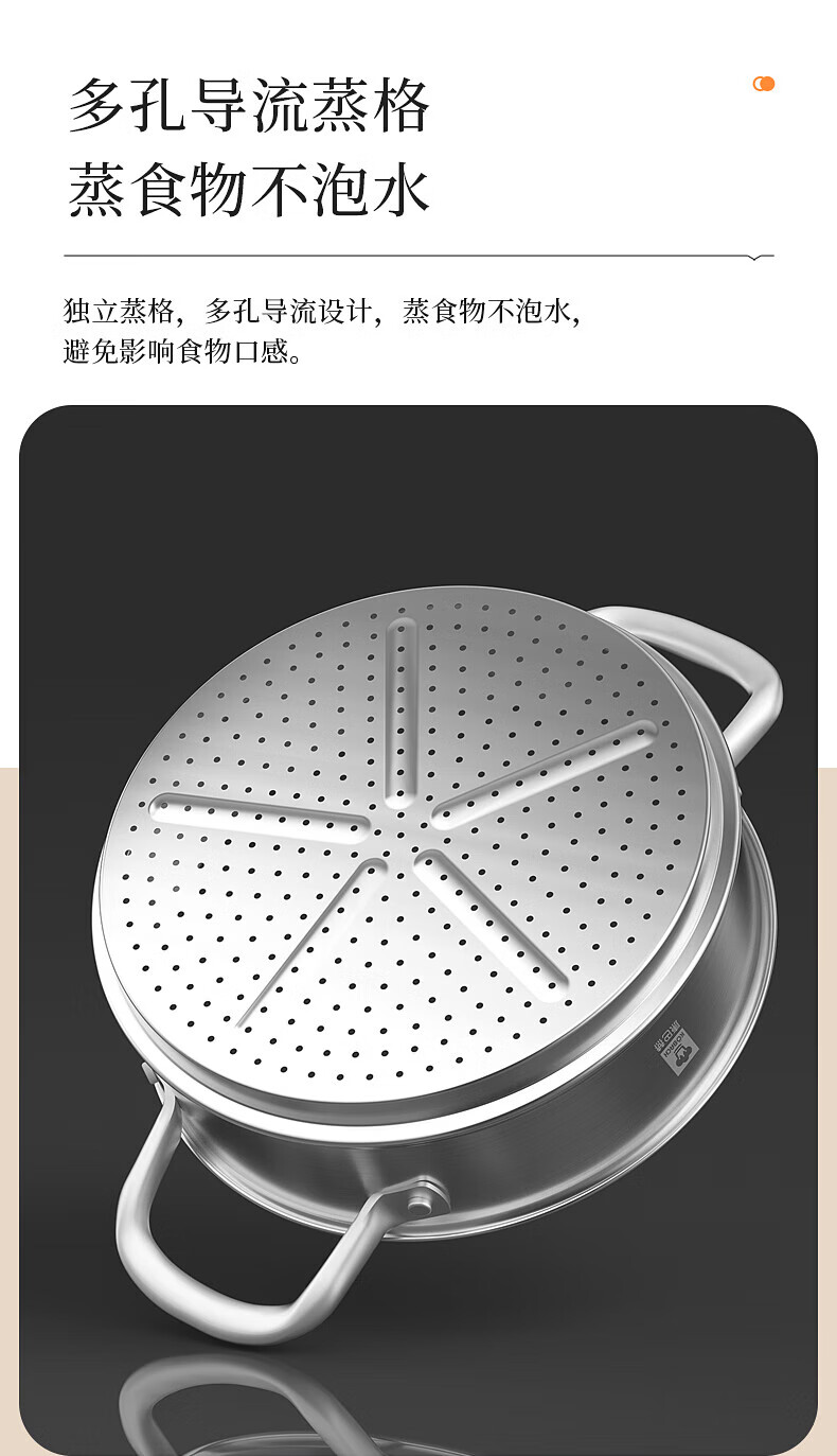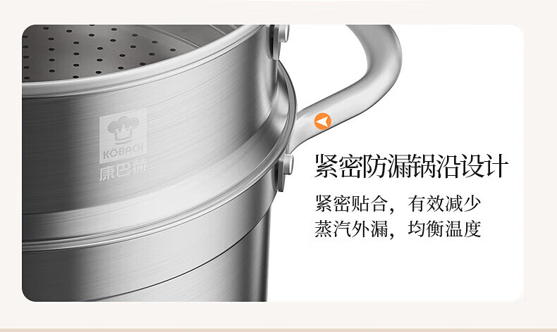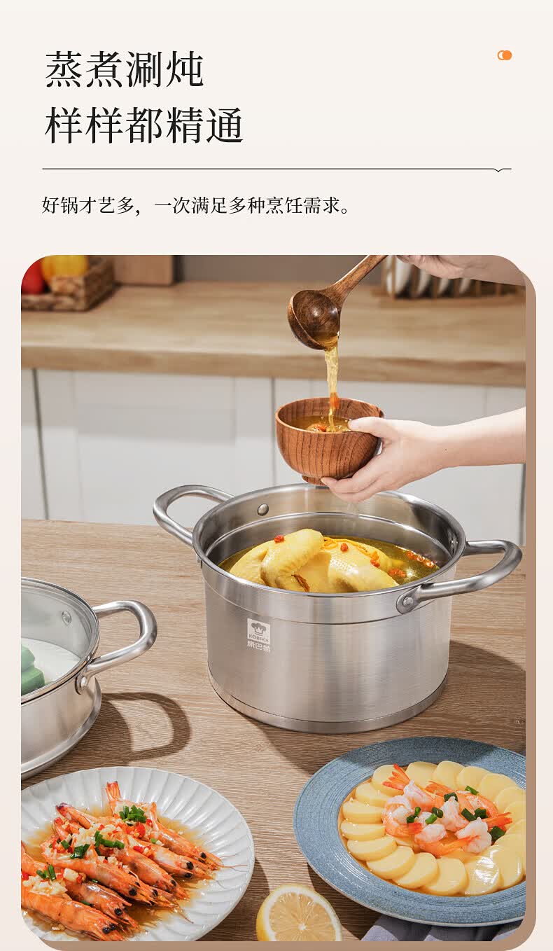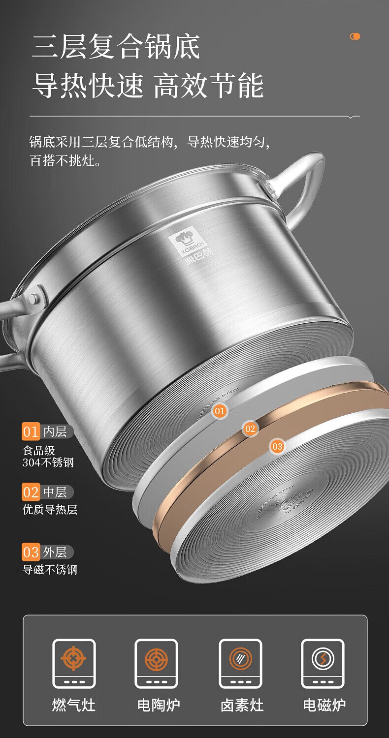 康巴赫蒸锅304不锈钢大容量汤锅多功能蒸煮锅具22cm复底燃气电磁炉通用