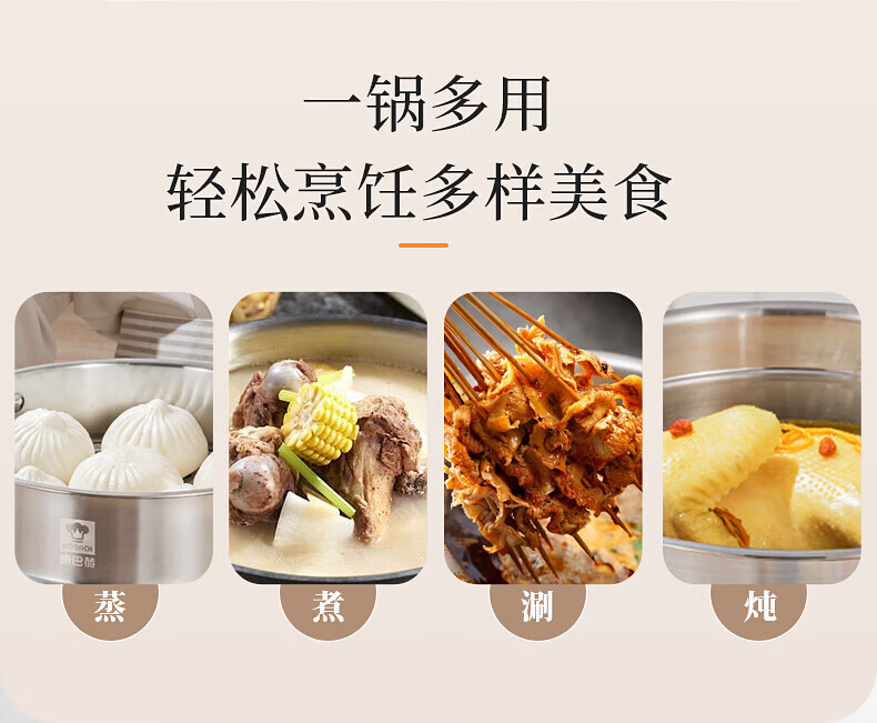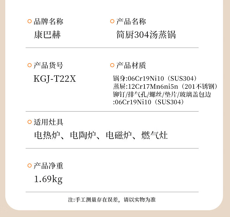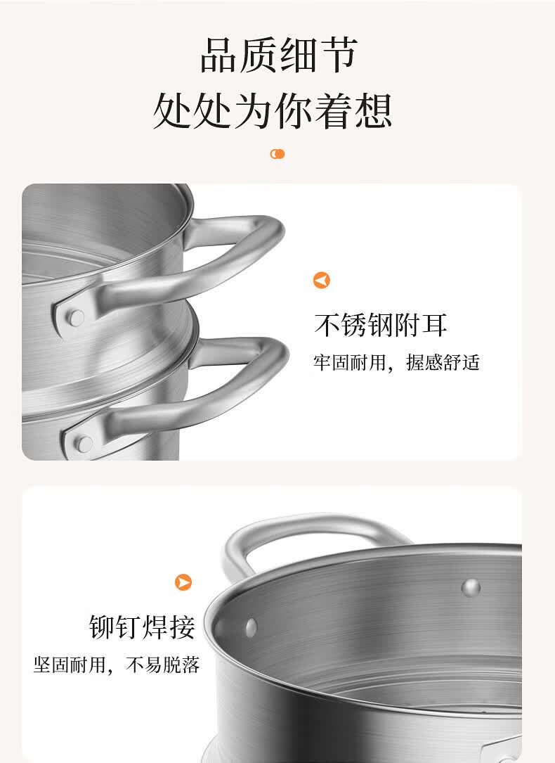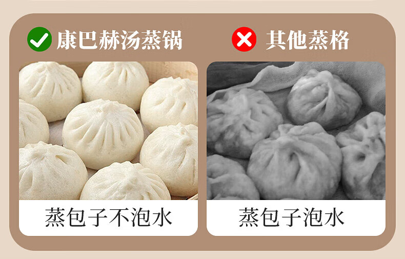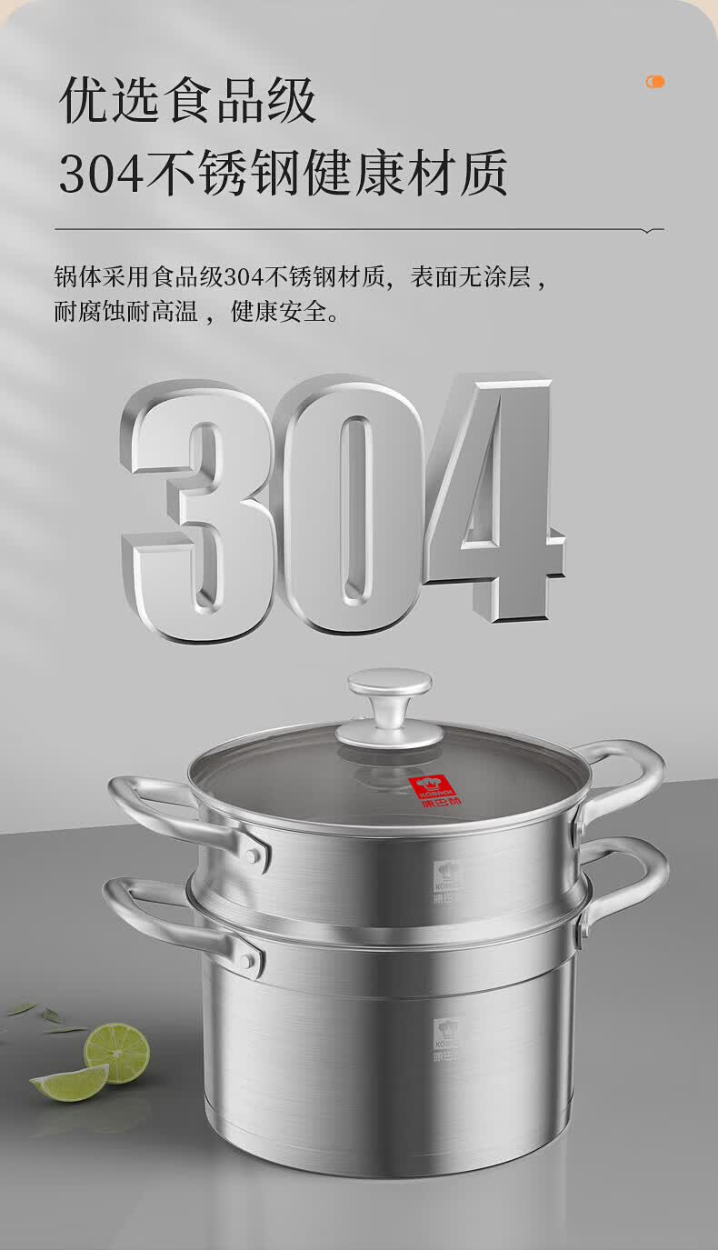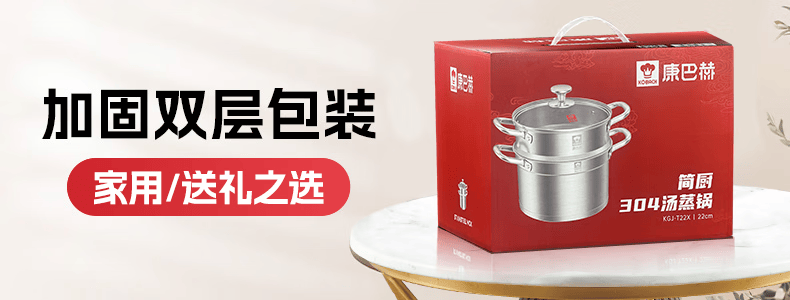 康巴赫蒸锅304不锈钢大容量汤锅多功能蒸煮锅具22cm复底燃气电磁炉通用