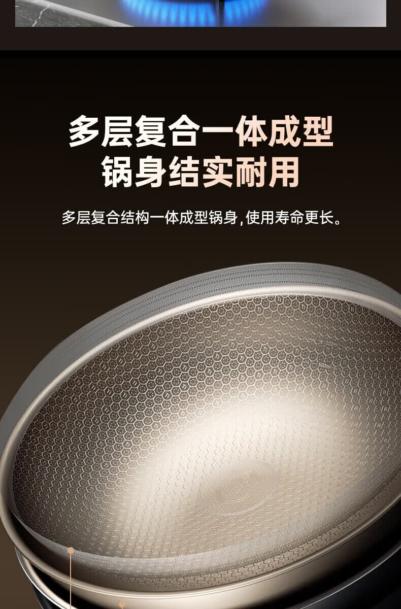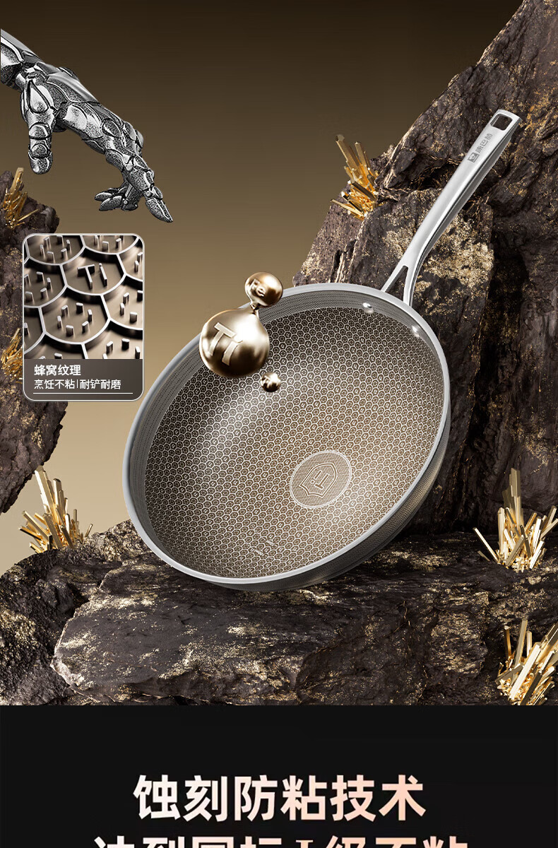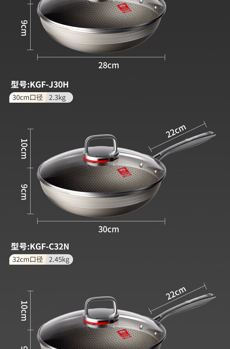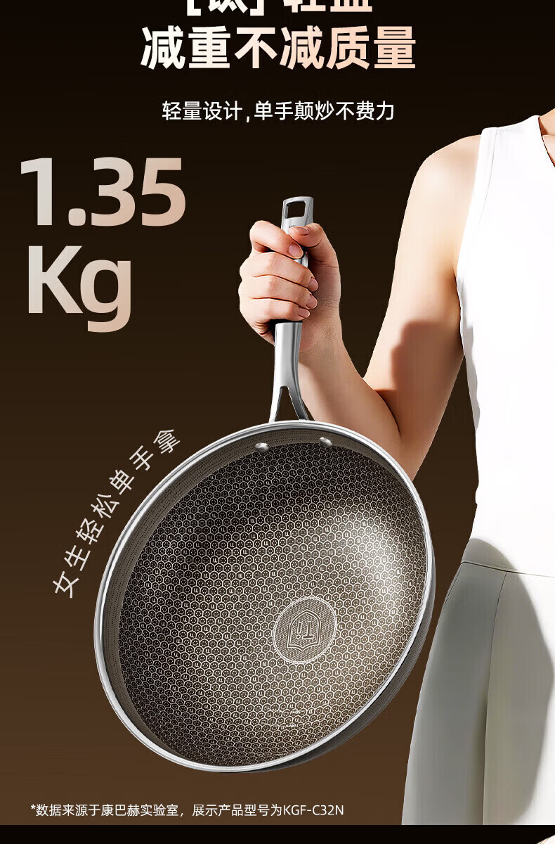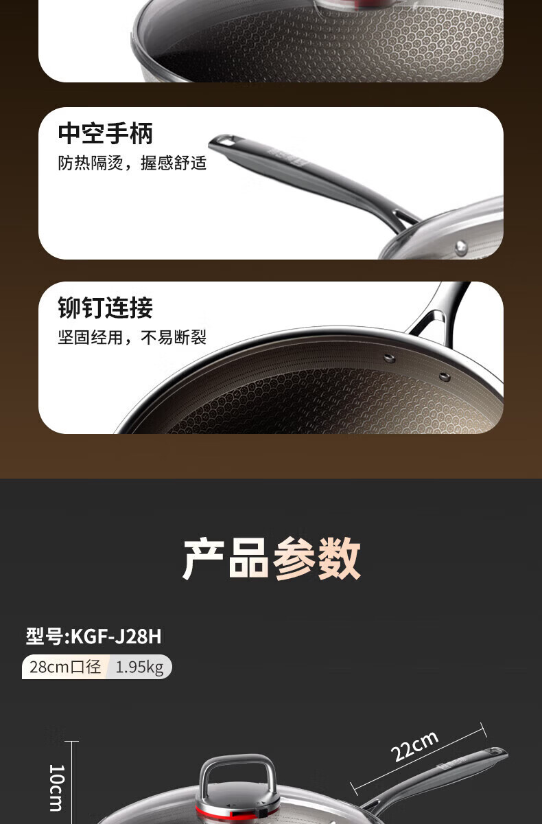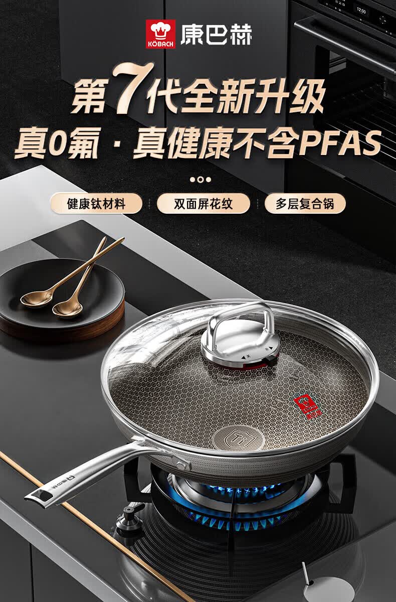 康巴赫 炒锅不粘锅有钛0氟蜂窝锅煎锅抗菌不锈钢炒菜锅电磁炉燃气灶通用 七代0氟有钛蜂窝锅 28cm