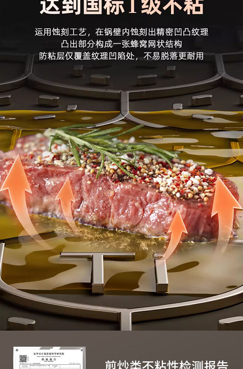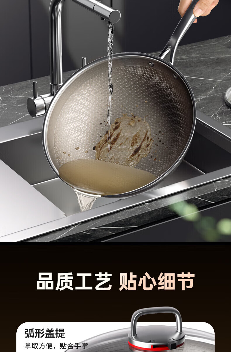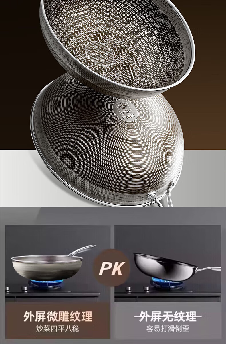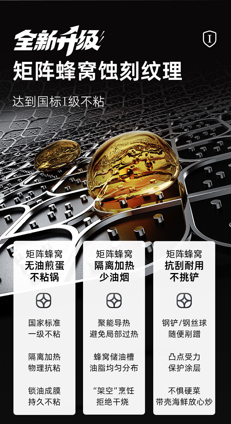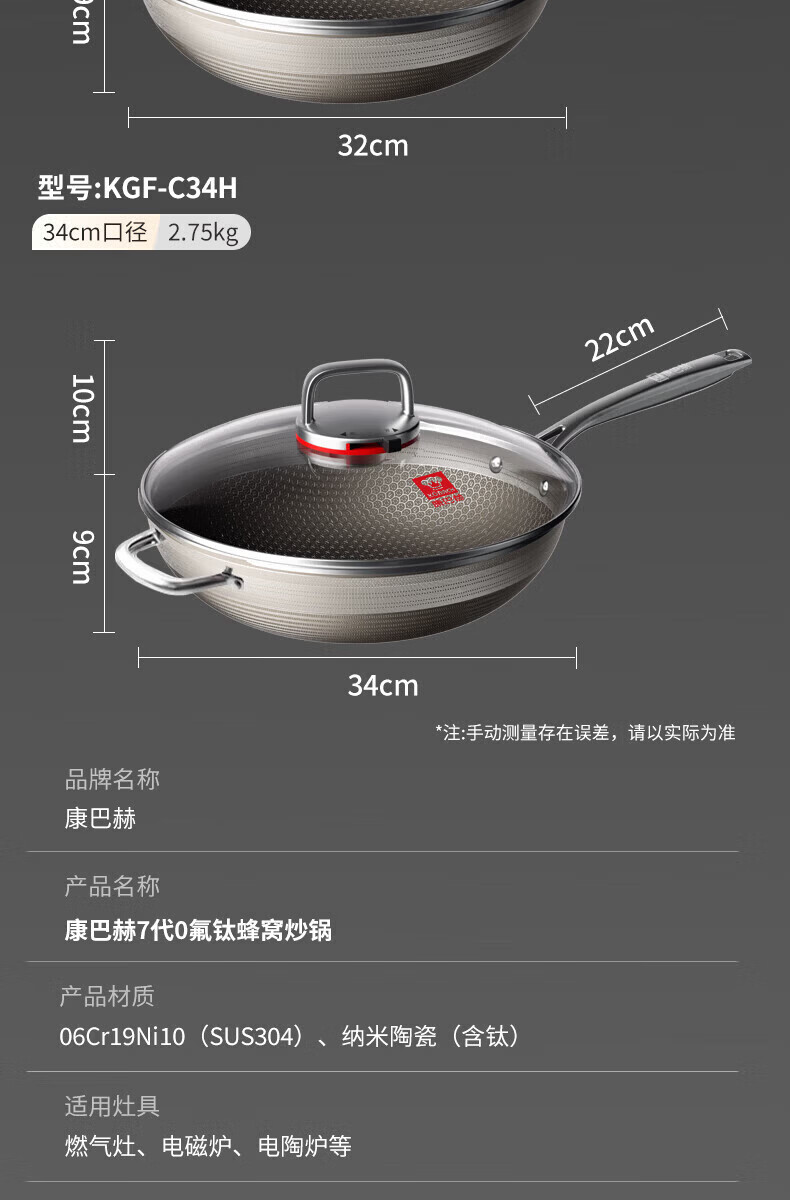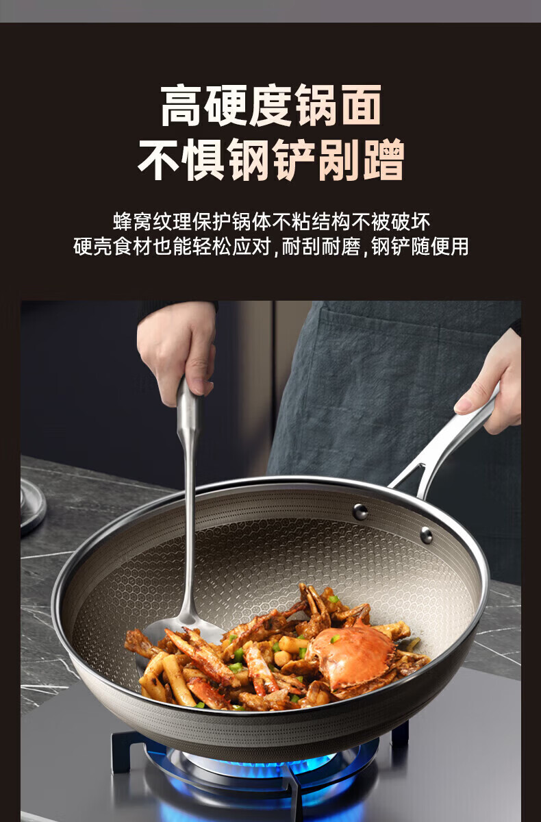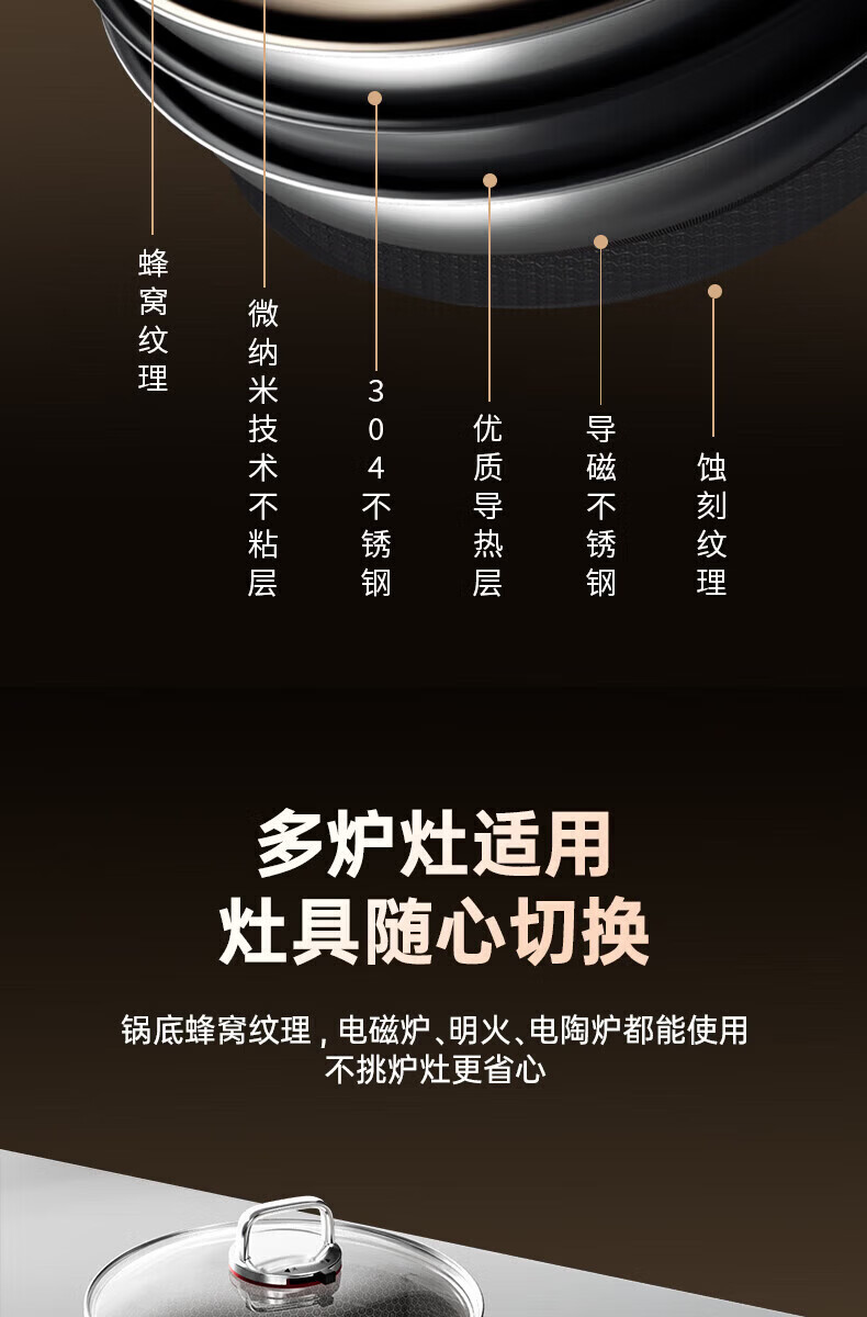 康巴赫 炒锅不粘锅有钛0氟蜂窝锅煎锅抗菌不锈钢炒菜锅电磁炉燃气灶通用 七代0氟有钛蜂窝锅 28cm
