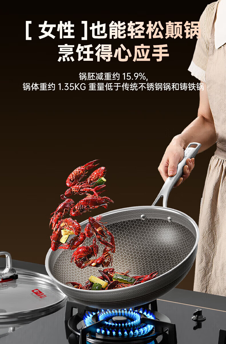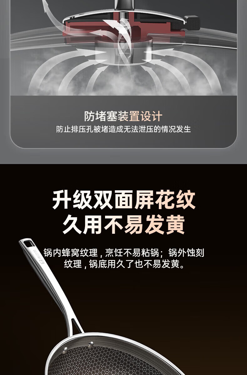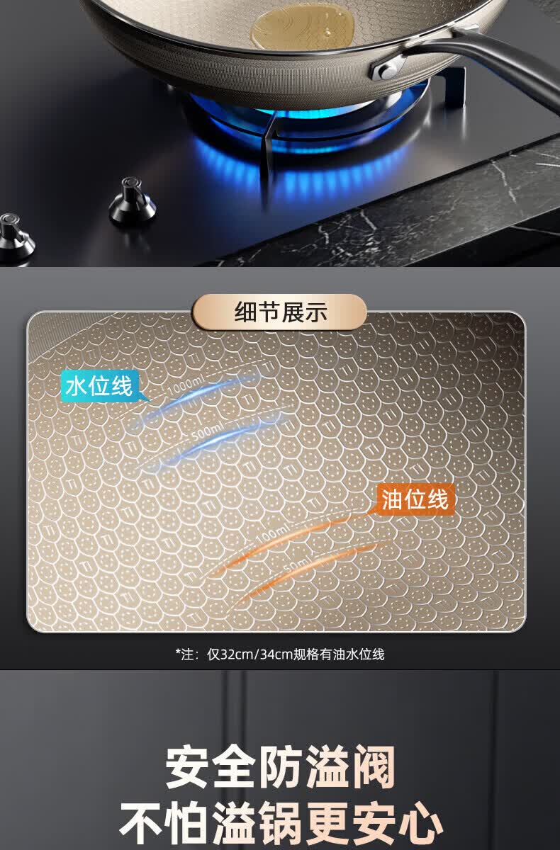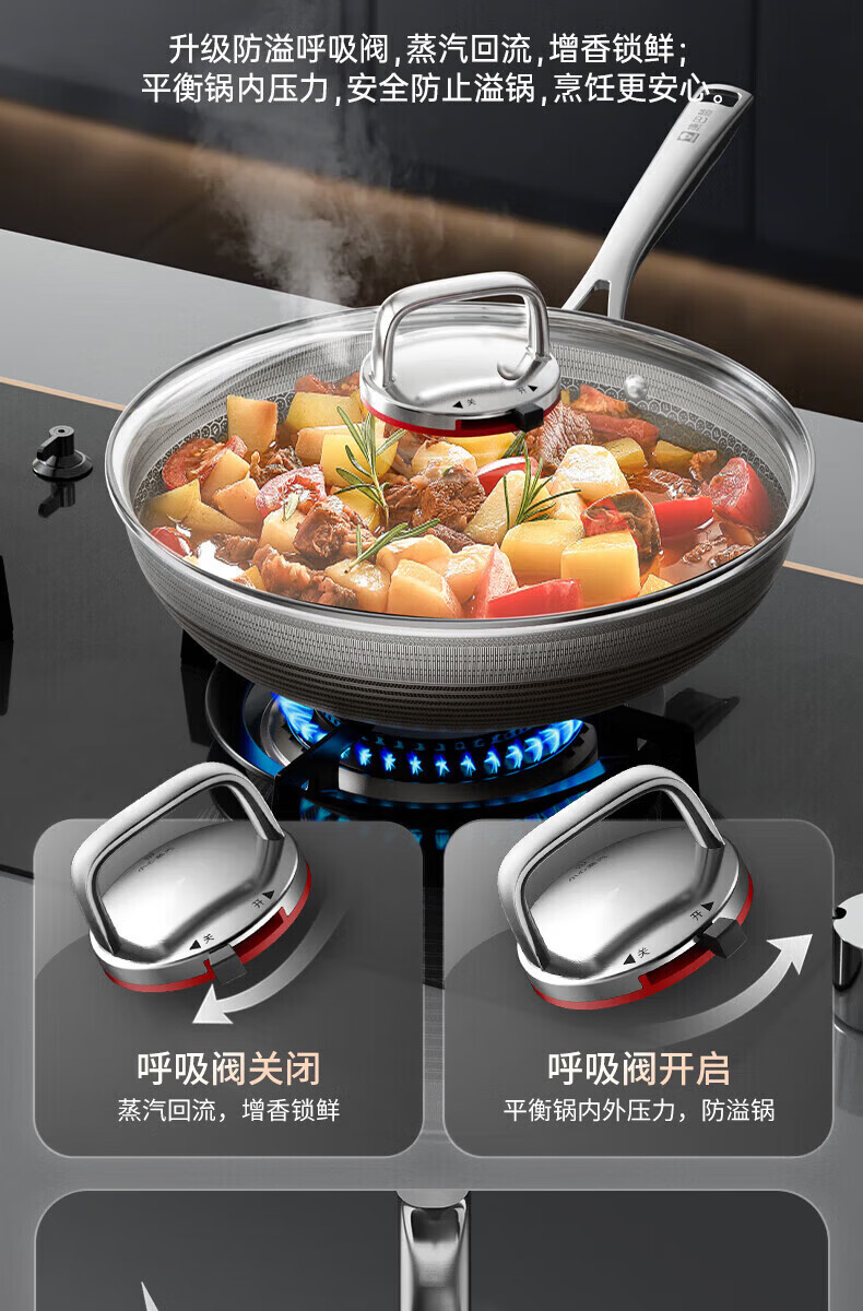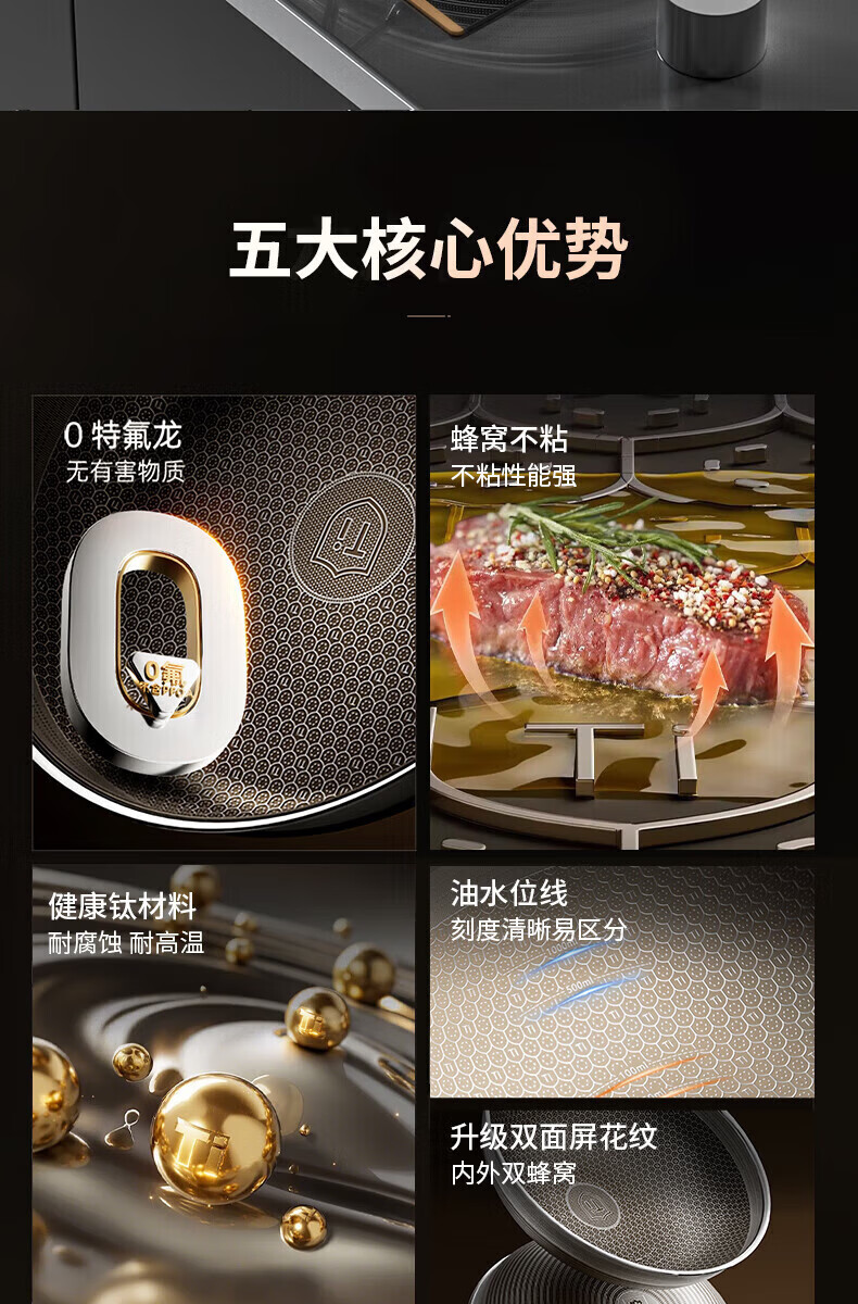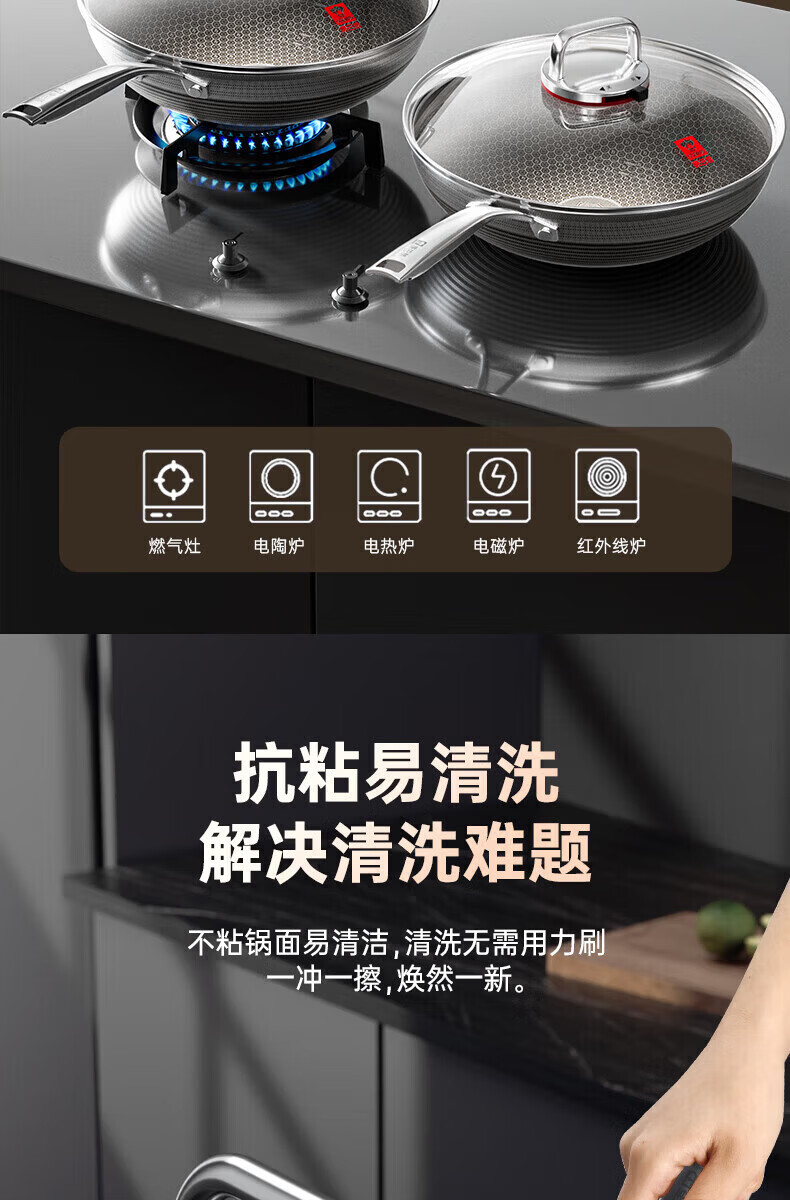 康巴赫 炒锅不粘锅有钛0氟蜂窝锅煎锅抗菌不锈钢炒菜锅电磁炉燃气灶通用 七代0氟有钛蜂窝锅 28cm