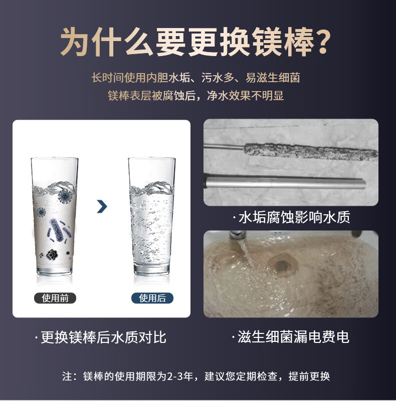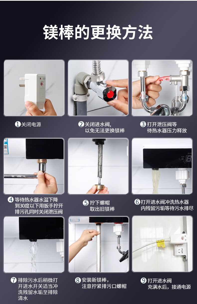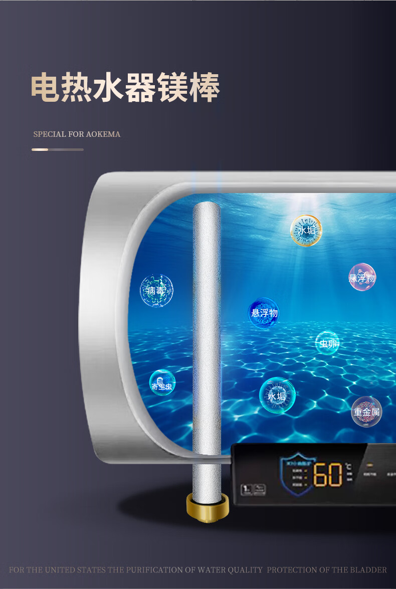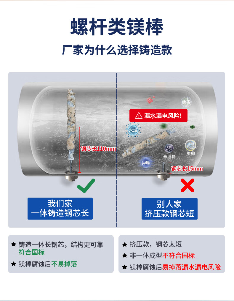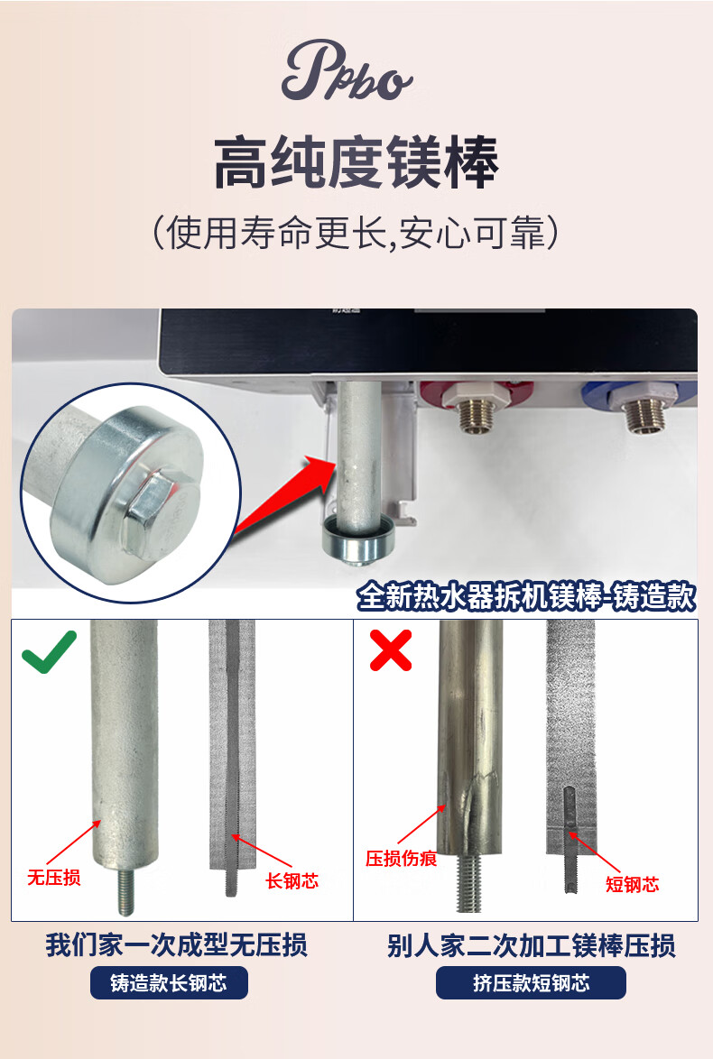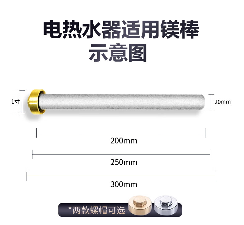 皮皮堡适用于澳柯玛电热水器镁棒40/50/60/80L升排污口配件铸造款阳极棒 【适用80-100L热水器】+1寸铜螺帽