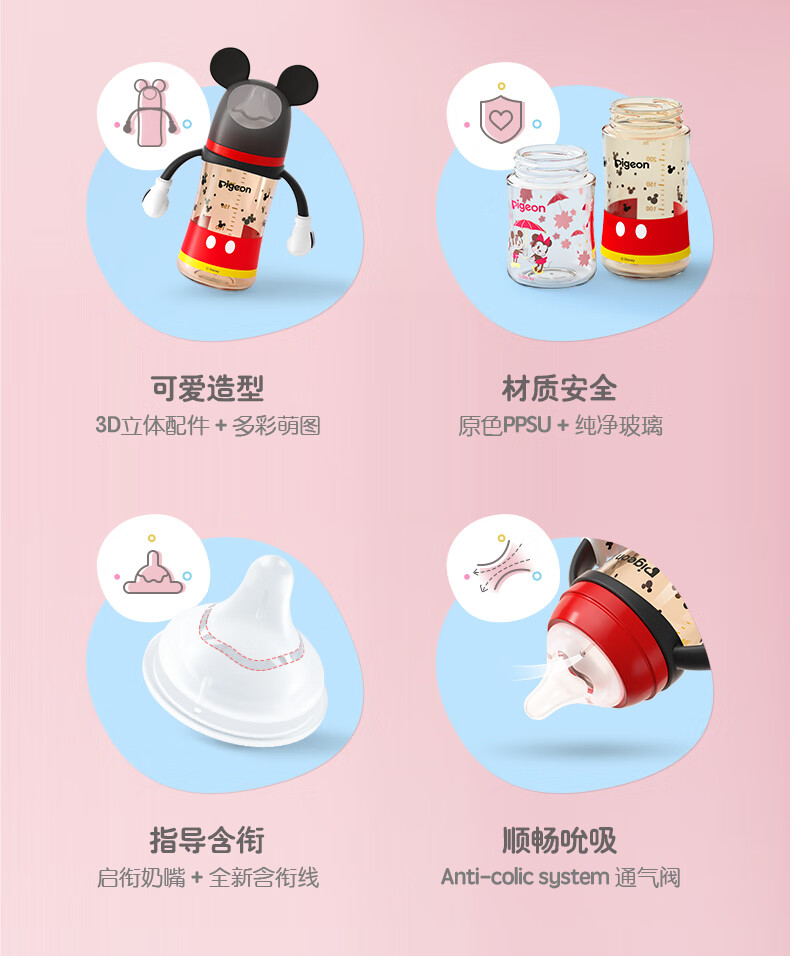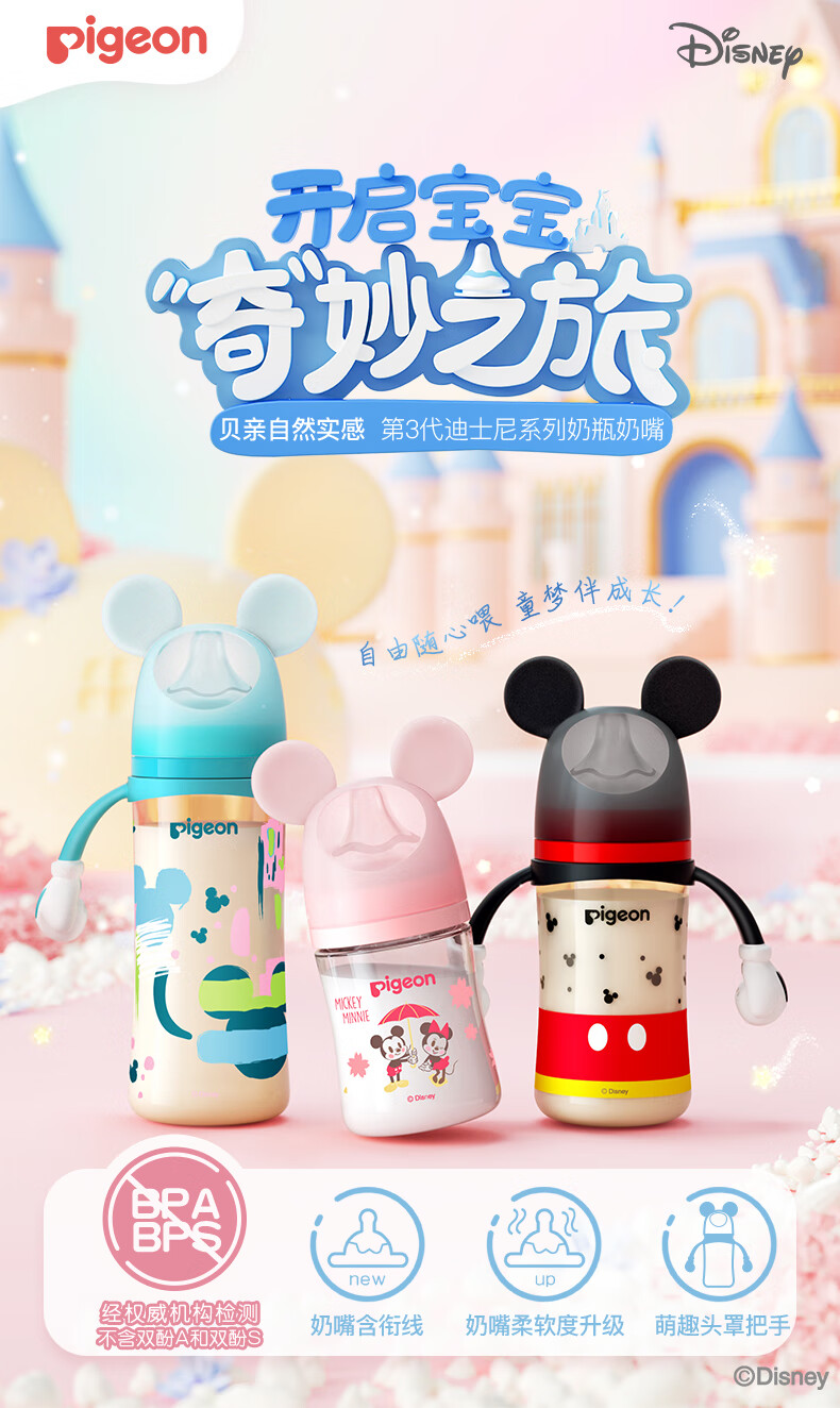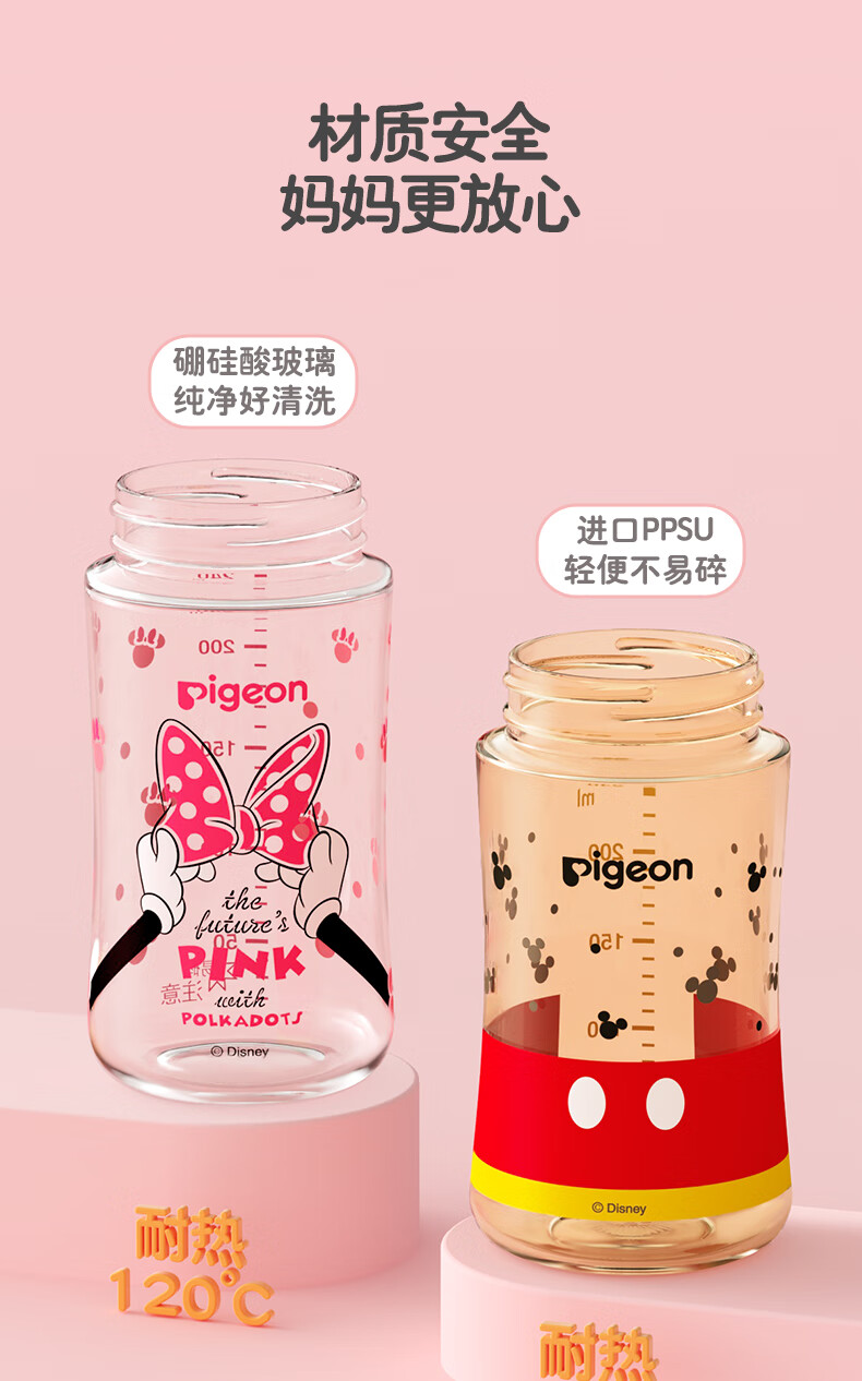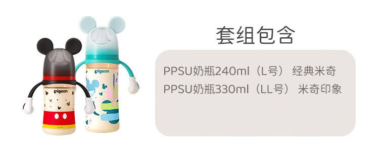 贝亲(Pigeon)迪士尼系列PPSU奶瓶两只组套(240ml+330ml)6月+