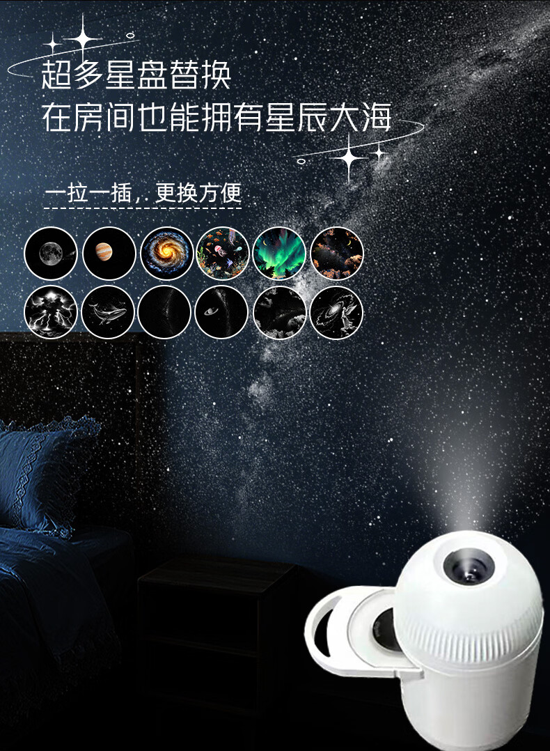 BOXLAMP床头小夜灯卧室睡眠灯氛围星空投影灯触摸感应喂奶婴儿童新年礼物 超高清黑白6片套【店长推荐】
