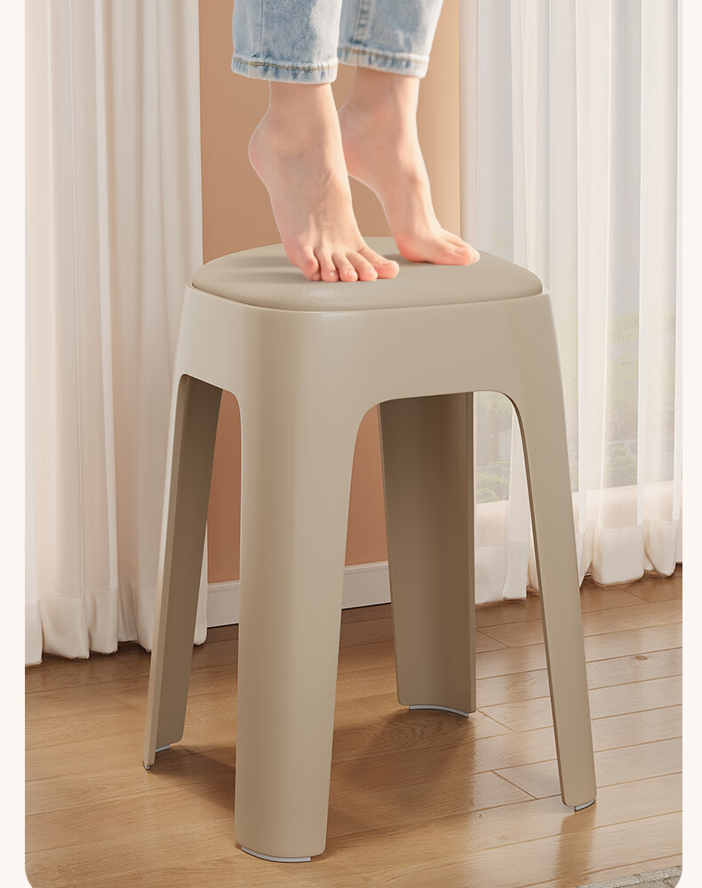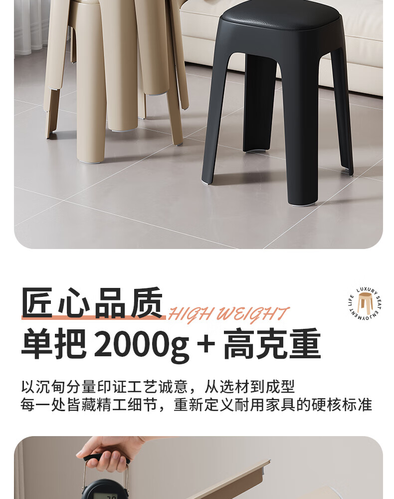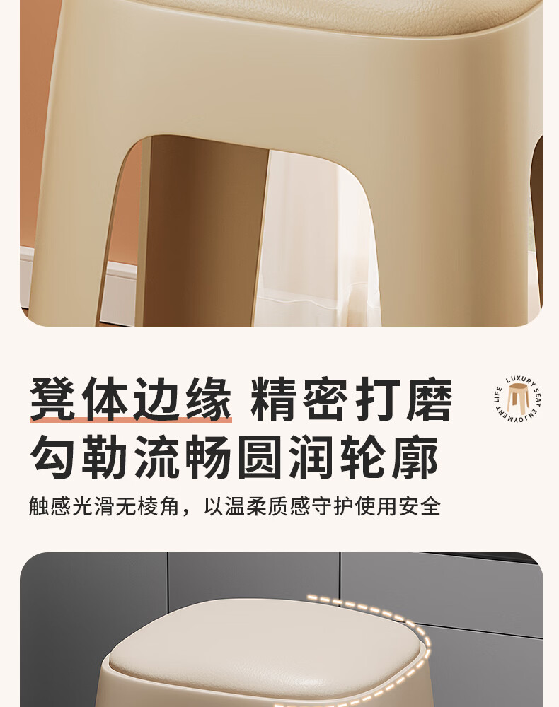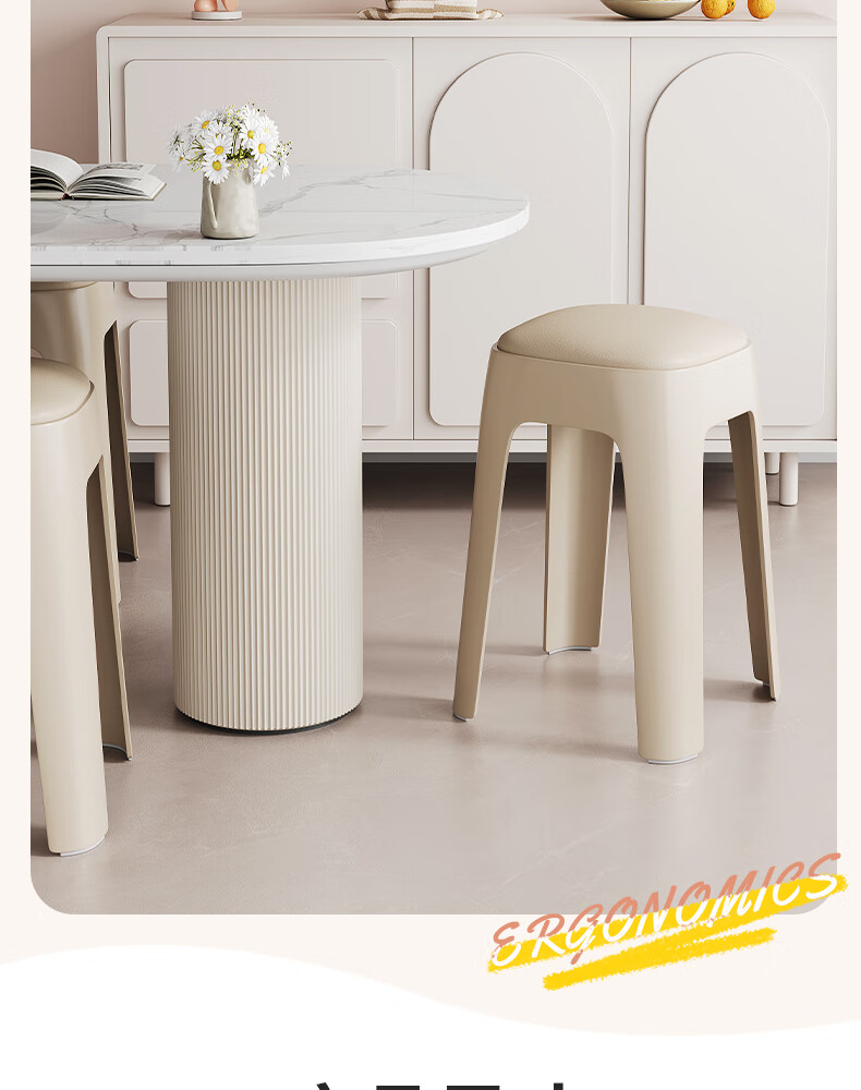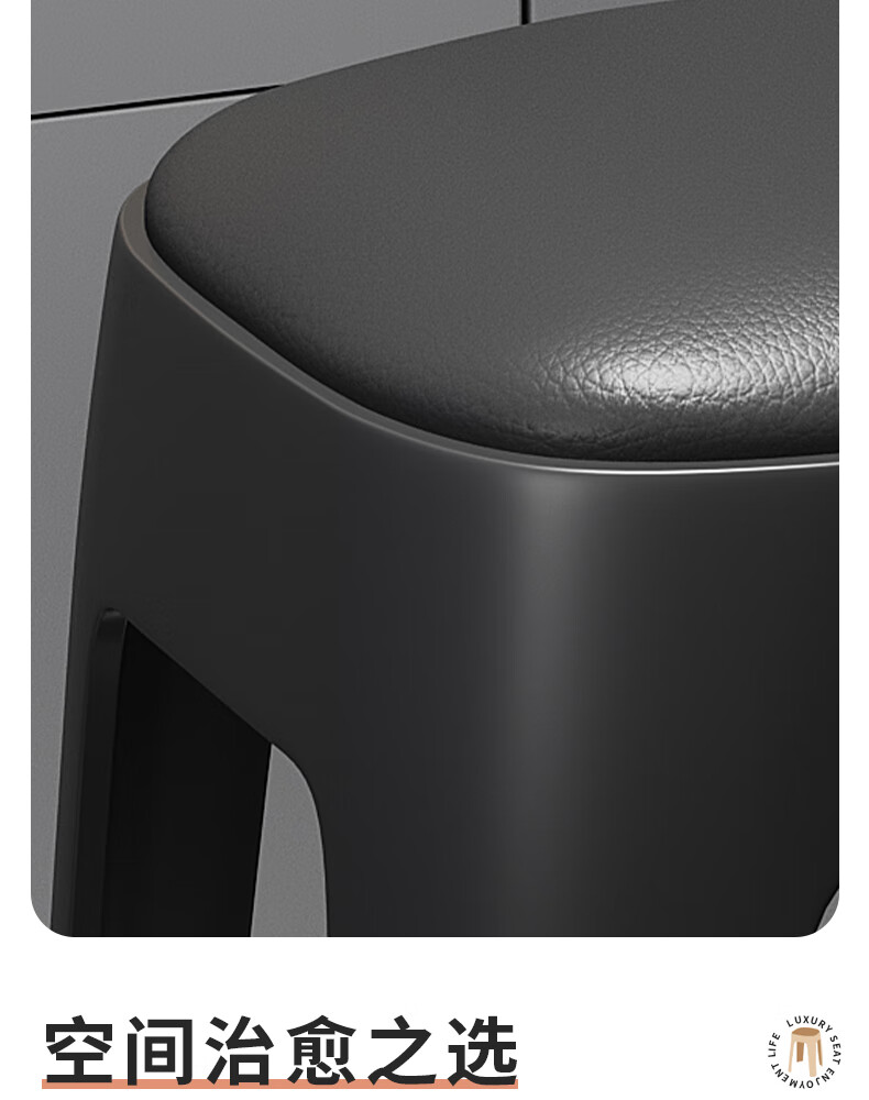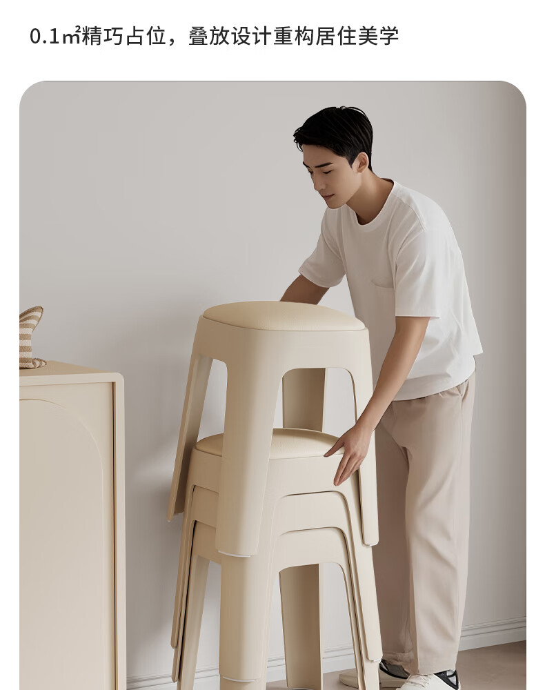 吱凡日本塑料凳子可叠放软包方凳家用加厚结实餐厅餐桌圆凳椅子高级感 六把装联系客服备注颜色-【无备注默认随机颜色发货】