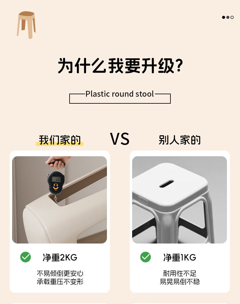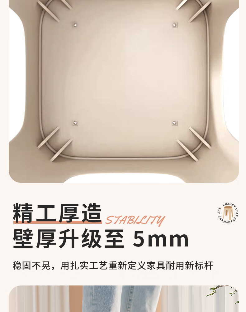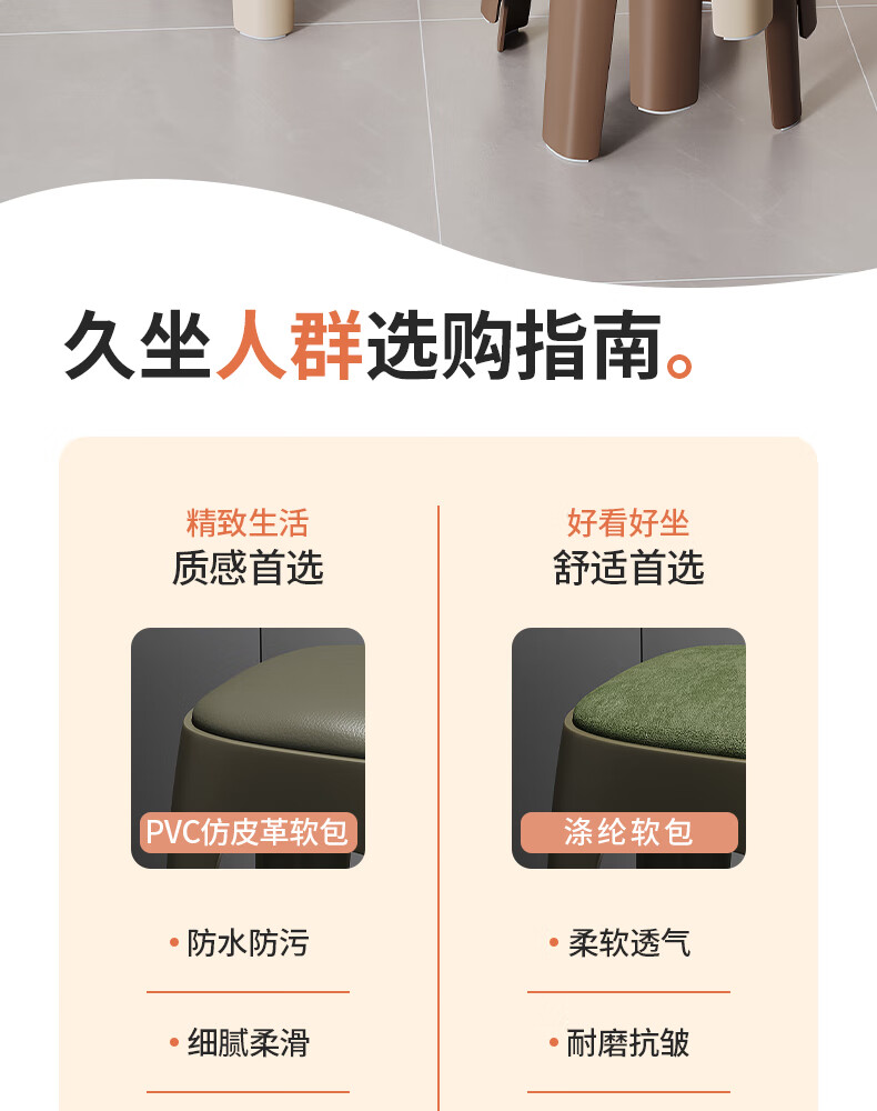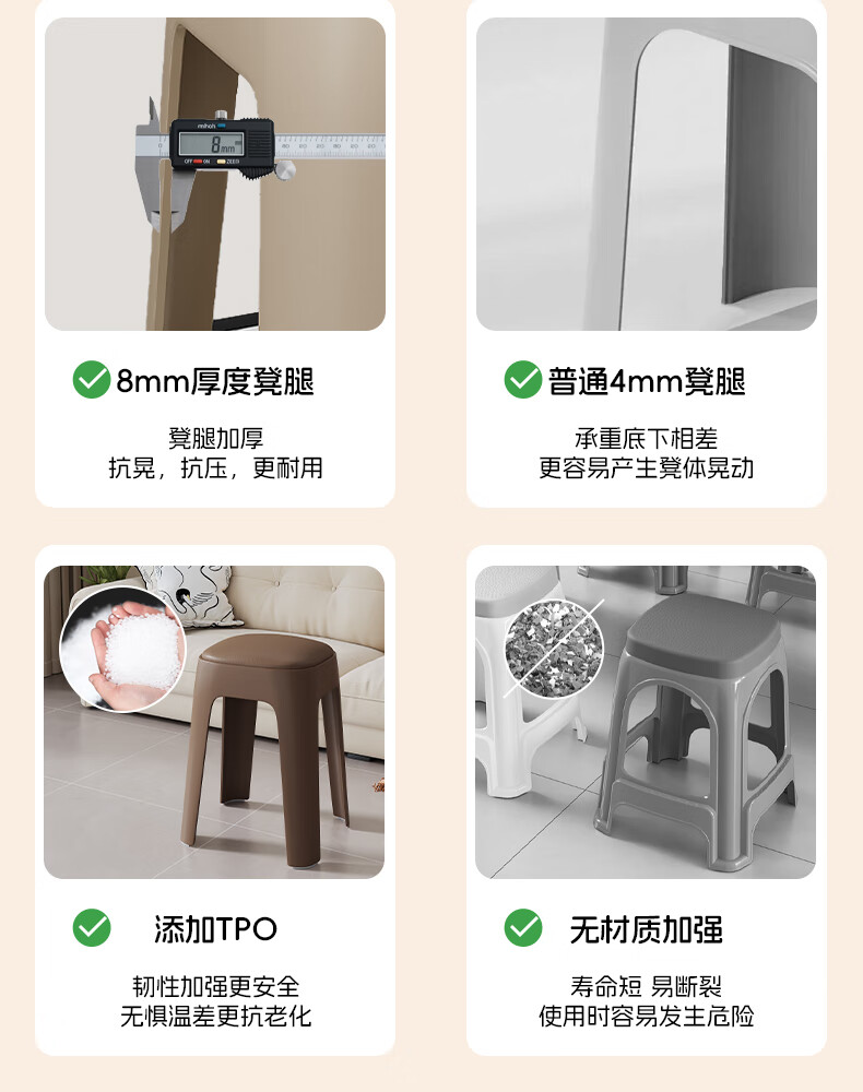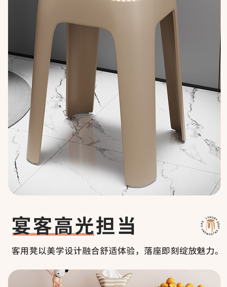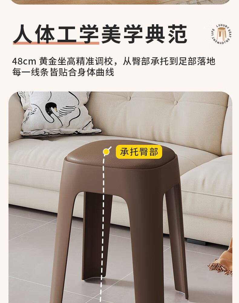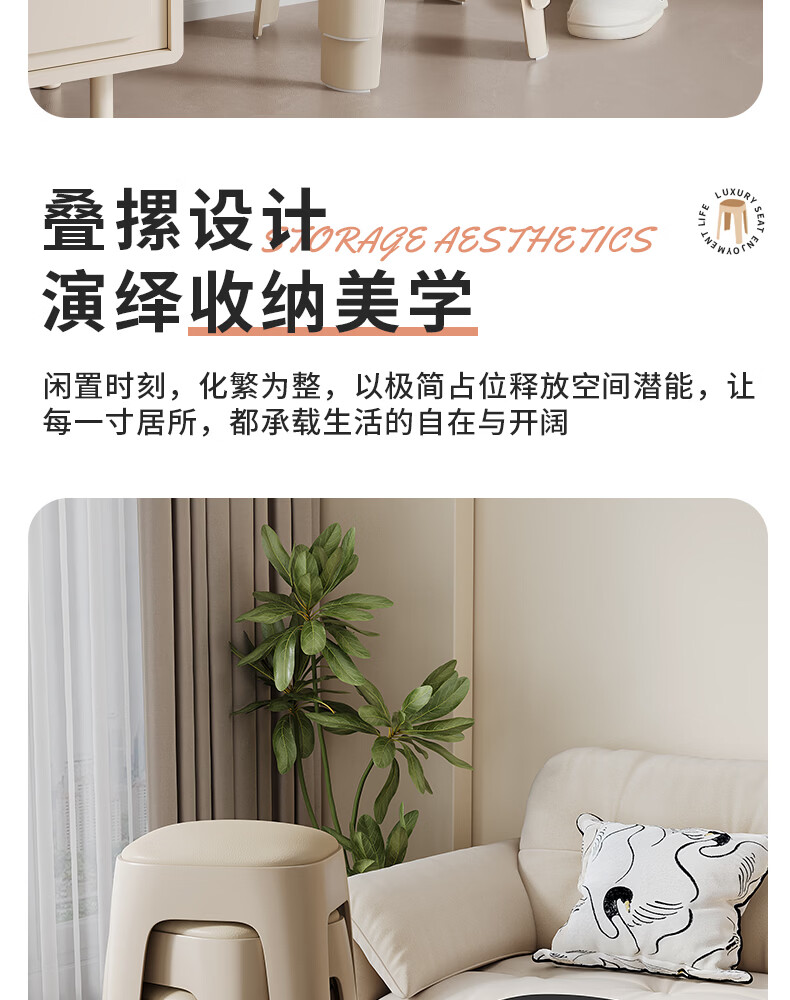 吱凡日本塑料凳子可叠放软包方凳家用加厚结实餐厅餐桌圆凳椅子高级感 六把装联系客服备注颜色-【无备注默认随机颜色发货】
