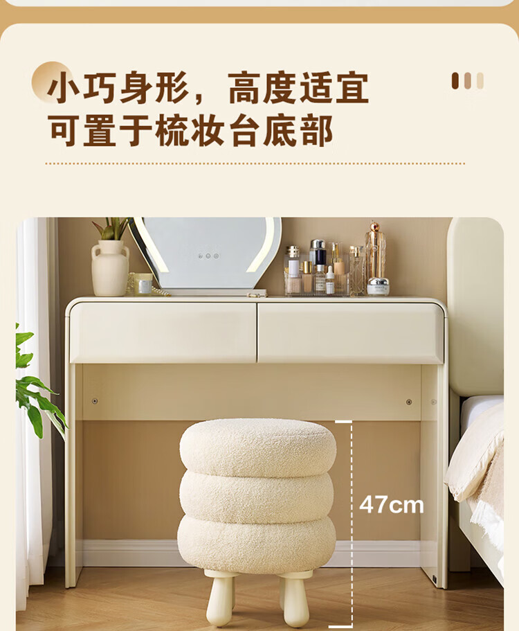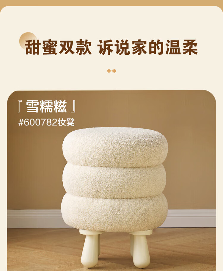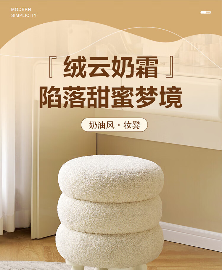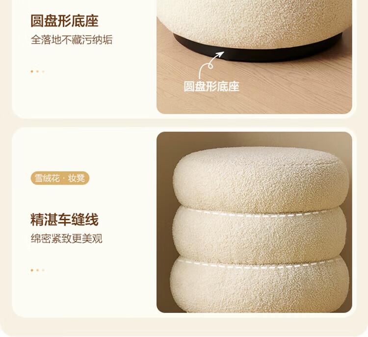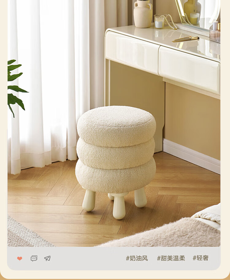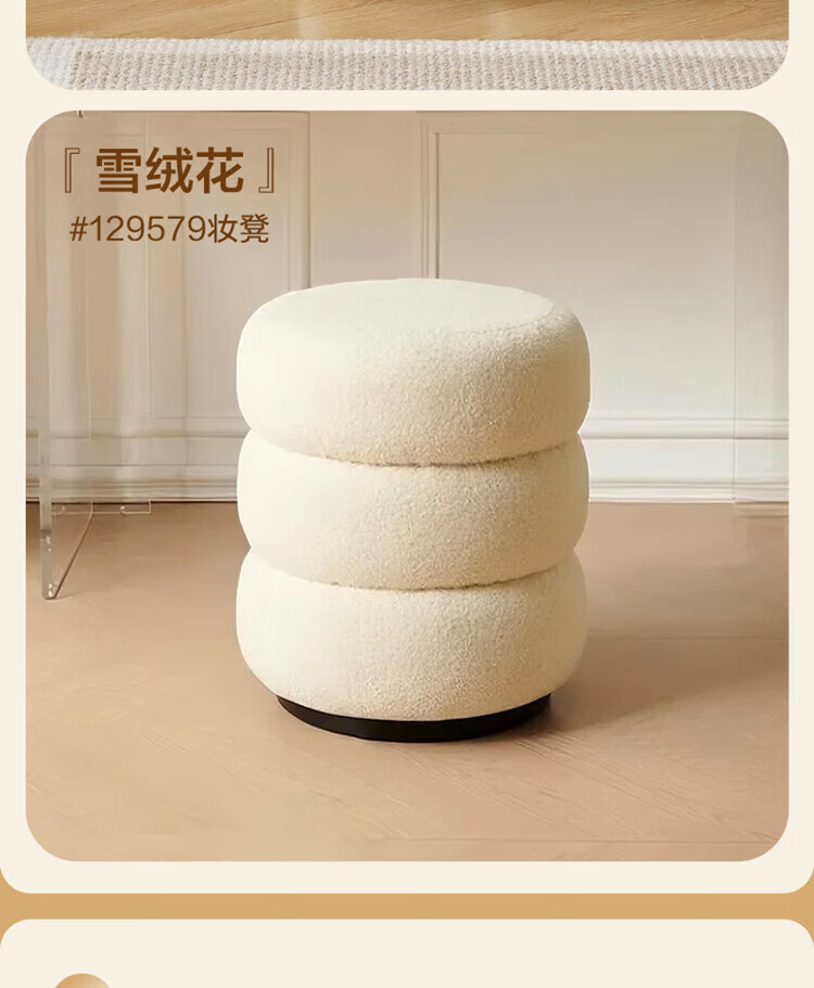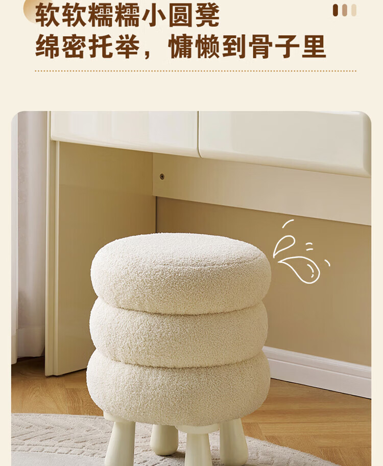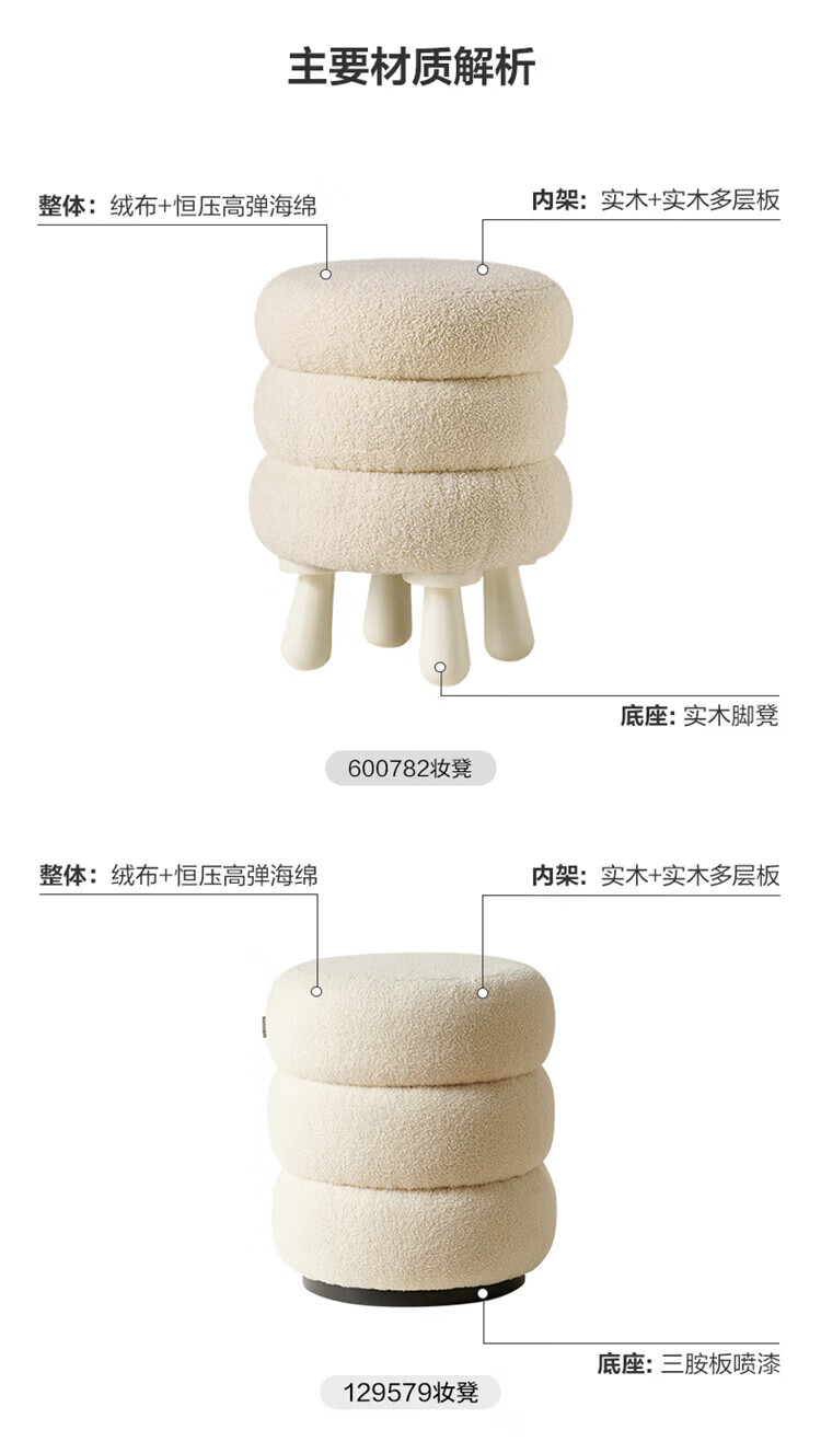 全友(QUANU)【迷瞪清仓货盘】化妆椅化妆凳实木脚小凳子换鞋凳圆凳子实木KD 绒布|雪糯糍妆凳