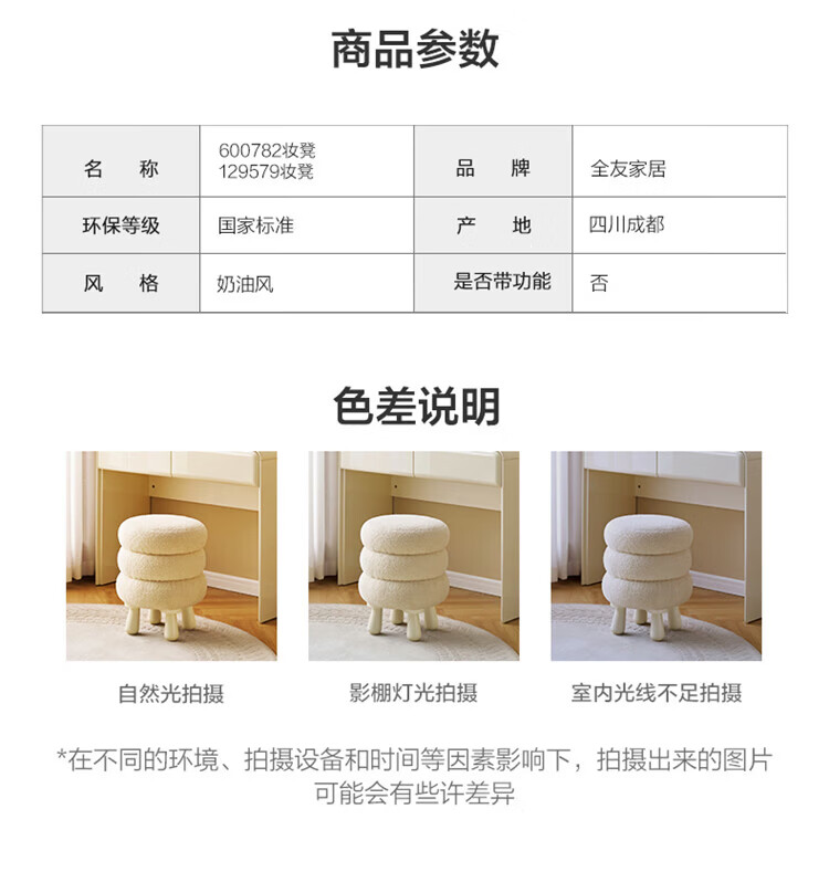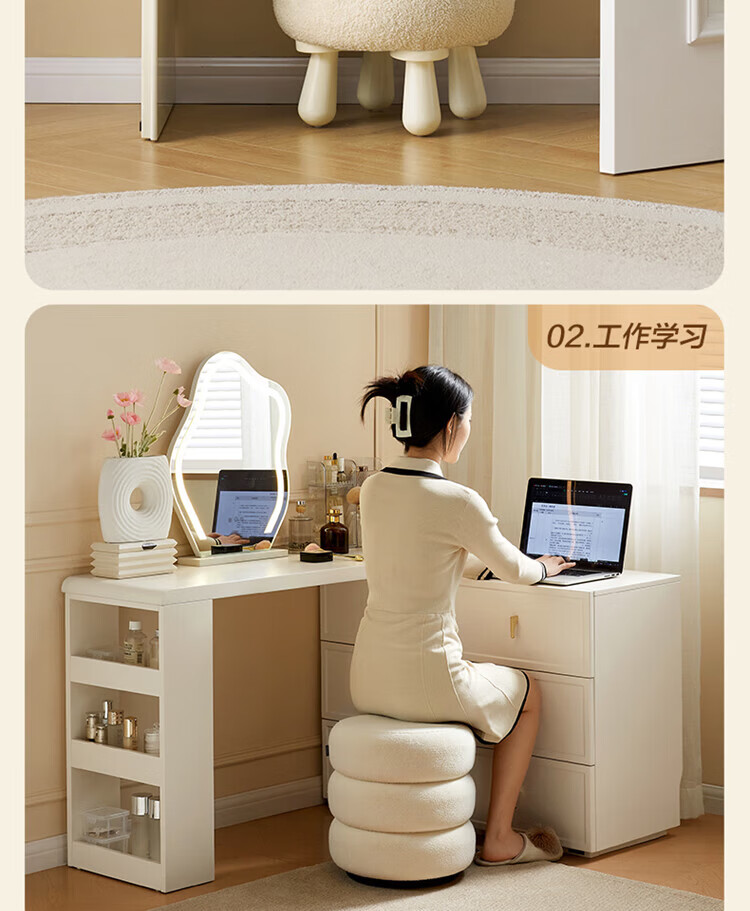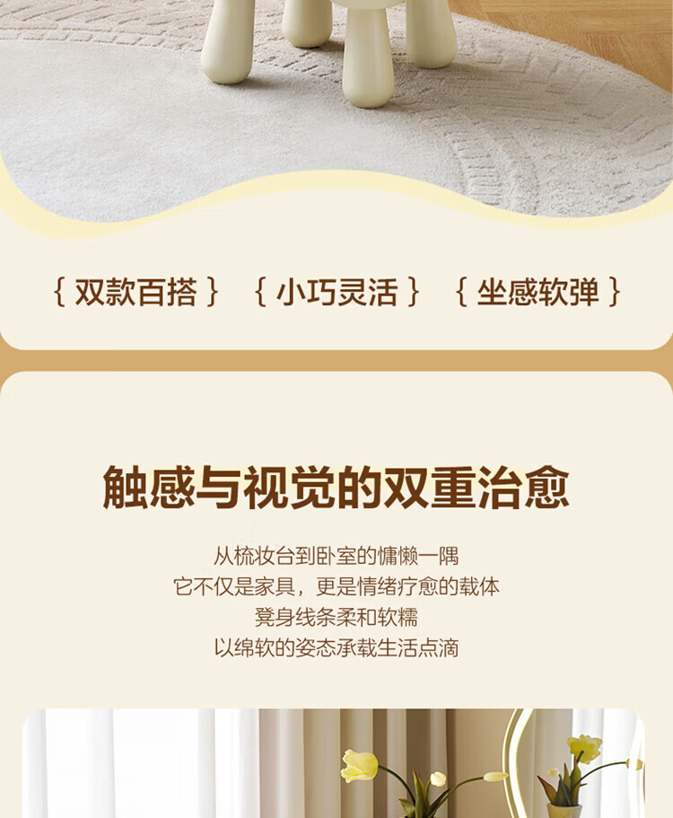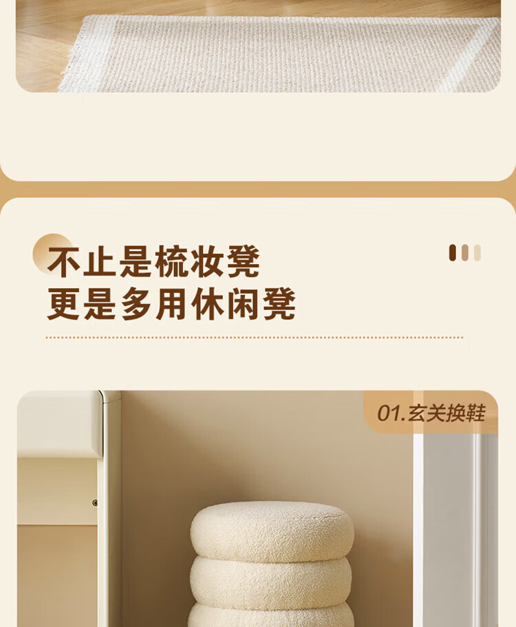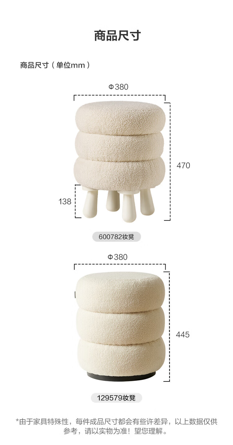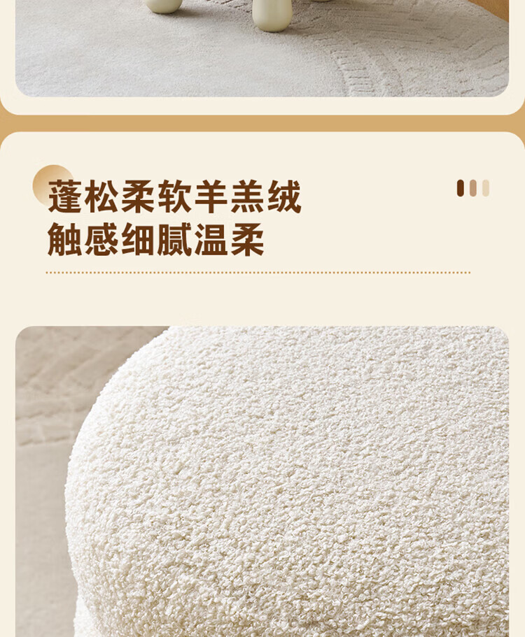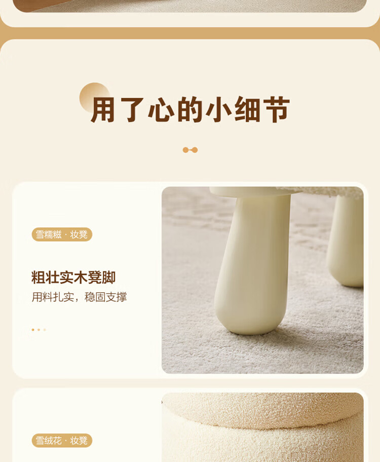 全友(QUANU)【迷瞪清仓货盘】化妆椅化妆凳实木脚小凳子换鞋凳圆凳子实木KD 绒布|雪糯糍妆凳
