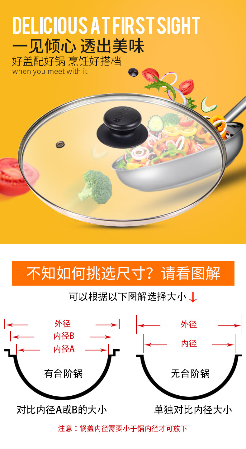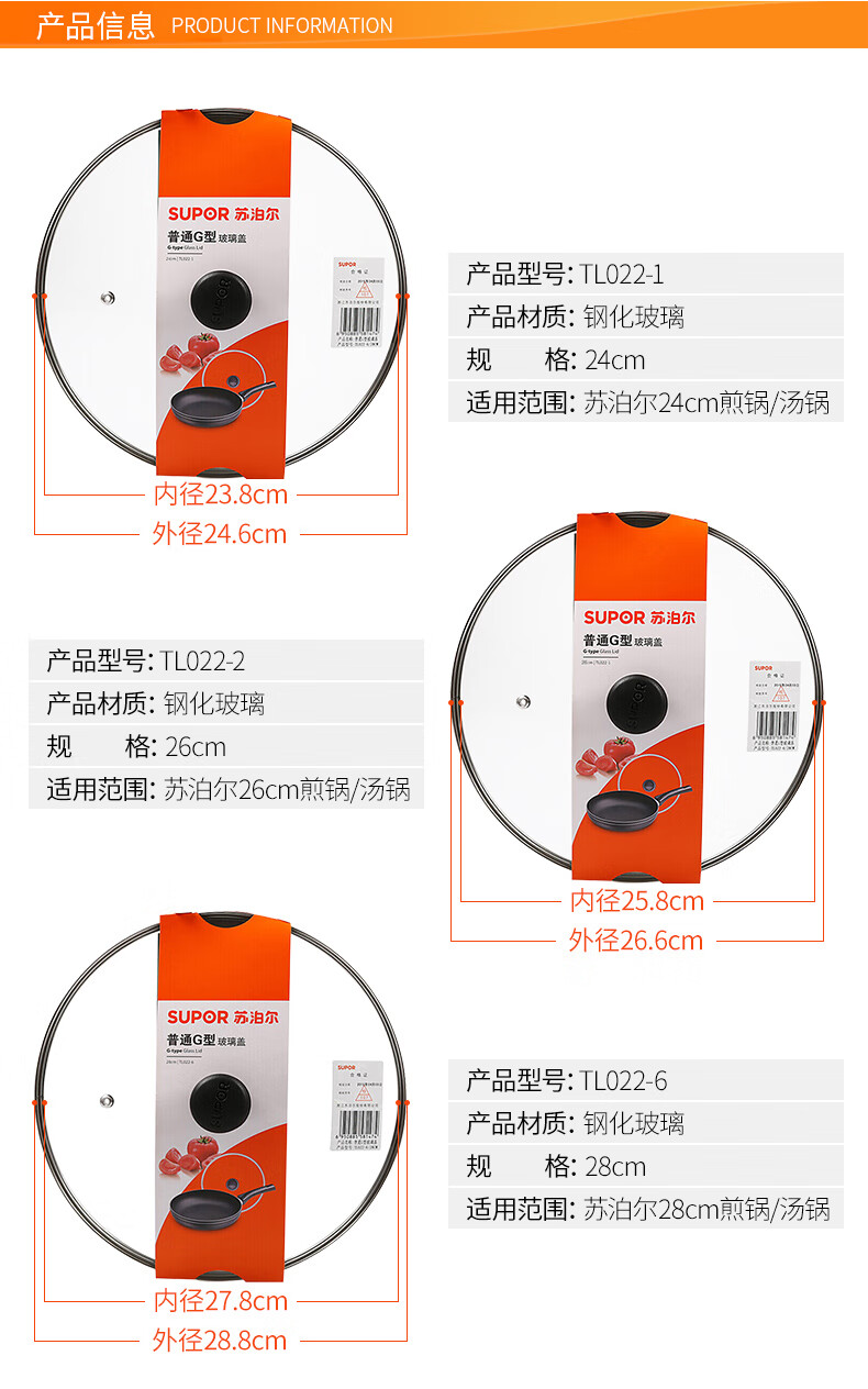 苏泊尔(SUPOR)锅盖G型可视钢化玻璃煎锅炒锅不粘锅平底锅锅盖通用配件 【32CM圆把手】TL022-4