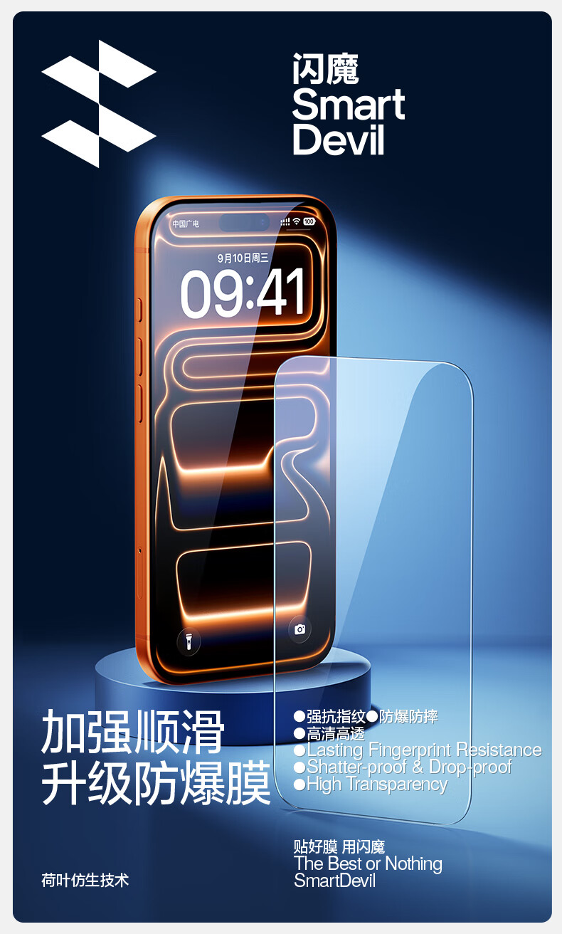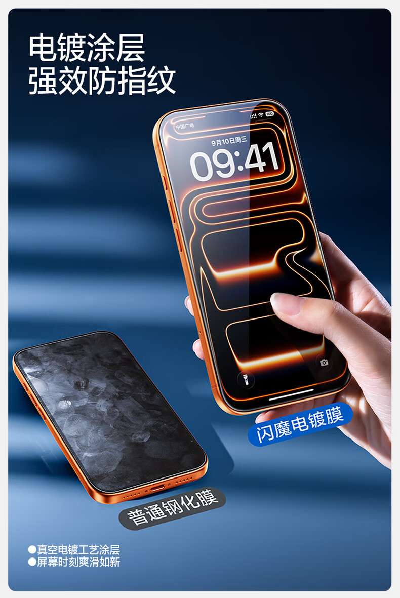 闪魔【京配包邮】适用iPhone17ProMax钢化膜苹果17ProMax手机膜高清防爆防摔抗指纹非全屏贴膜2片装