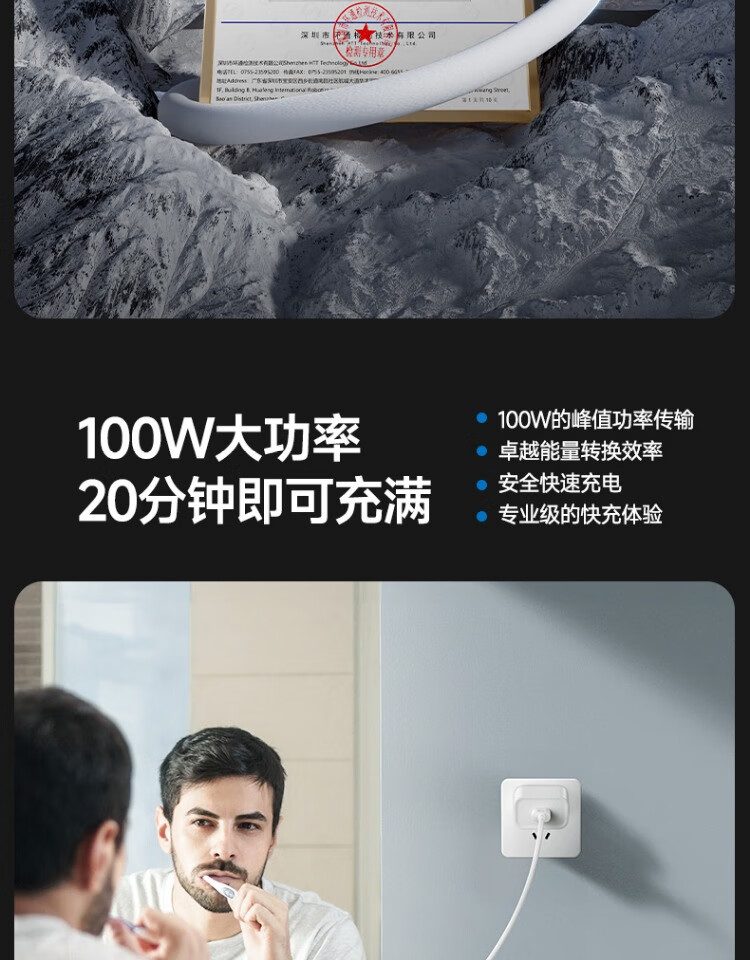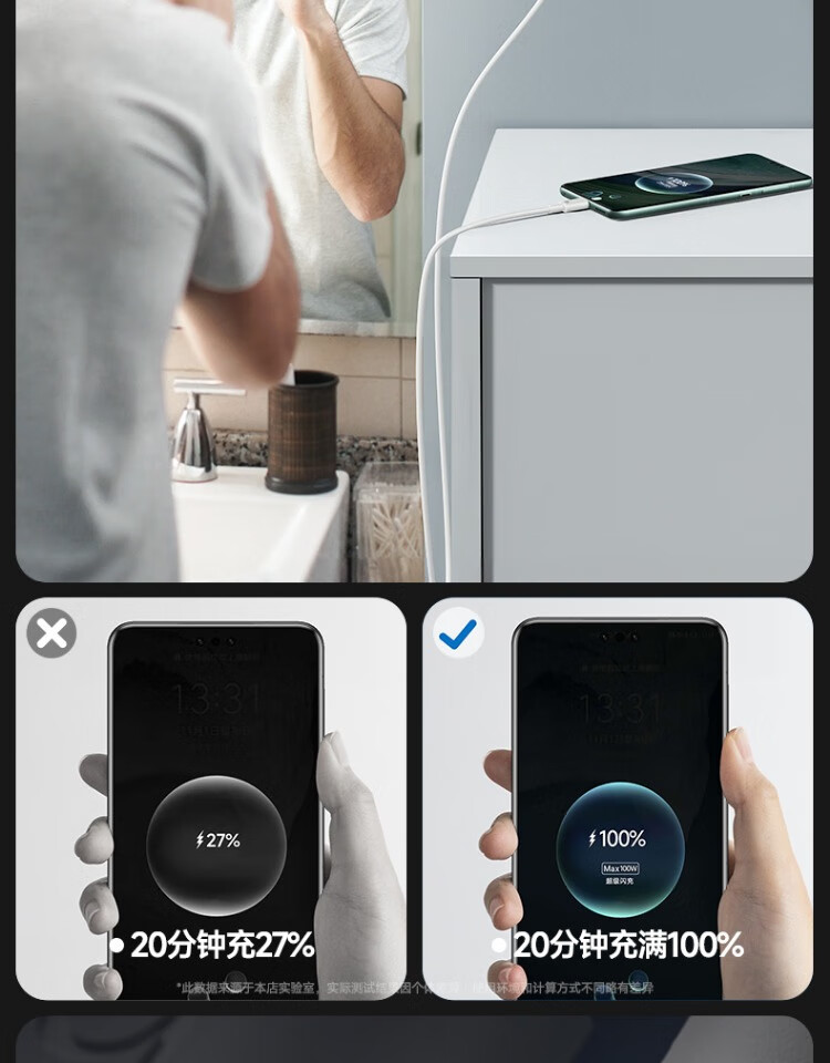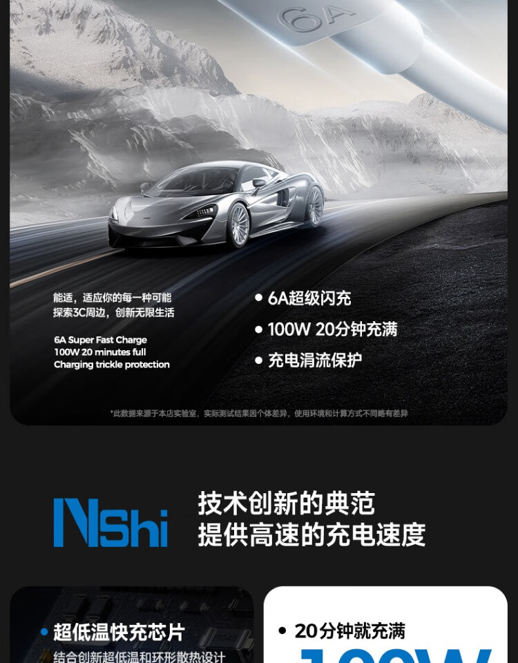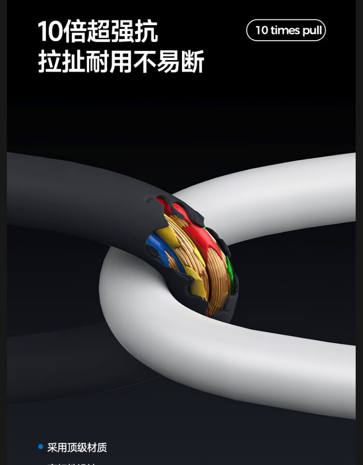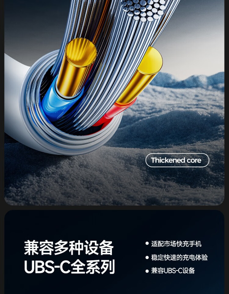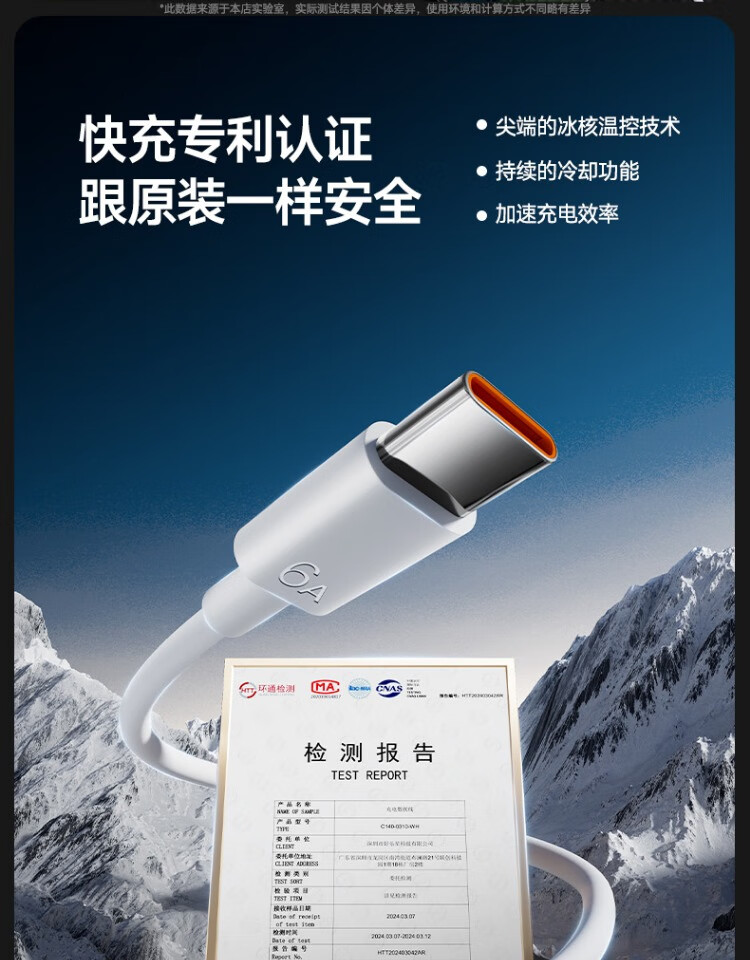 能适Type-C数据线6A充电线100W超级快充适用华为荣耀OPPO小米66W安卓手机USB-C快充线1.5米白