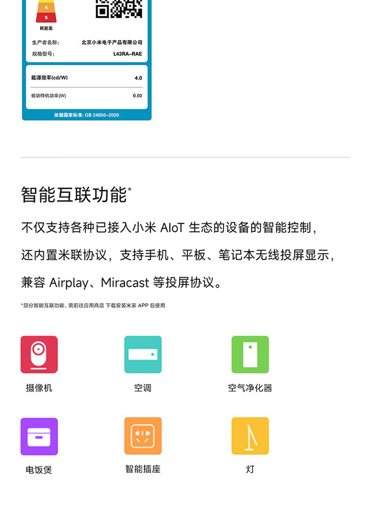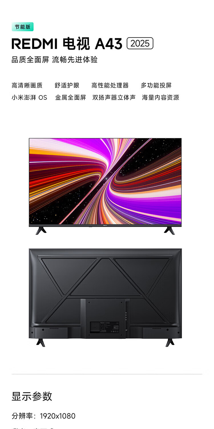 小米电视43英寸 REDMI A 43 2025节能版 金属全面屏 双扬立体声老人小尺寸家用彩电一级能效 L43RA-RAE 43英寸 【官方标配】+影视会员套装