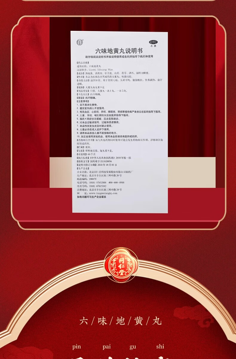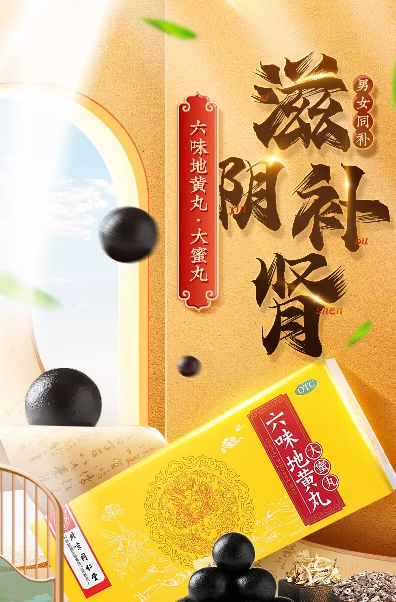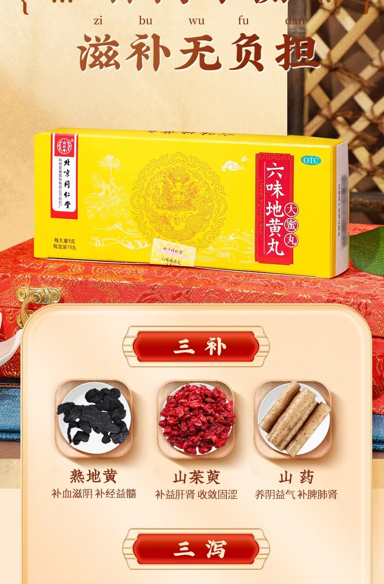 北京同仁堂六味地黄丸(大蜜丸) 补肾壮阳强身腰膝酸软骨盗汗遗精阳痿早泄滋阴补肾中成药男科用药 1盒【滋阴补肾】