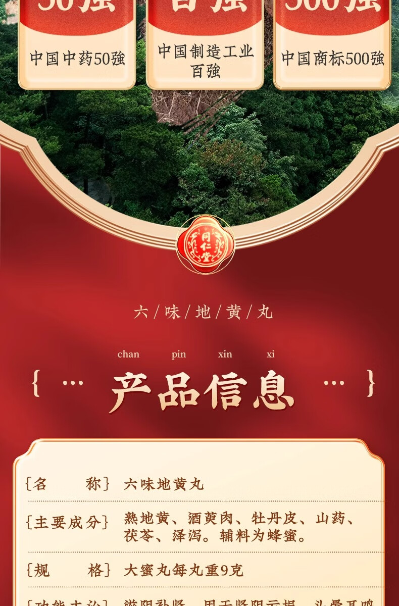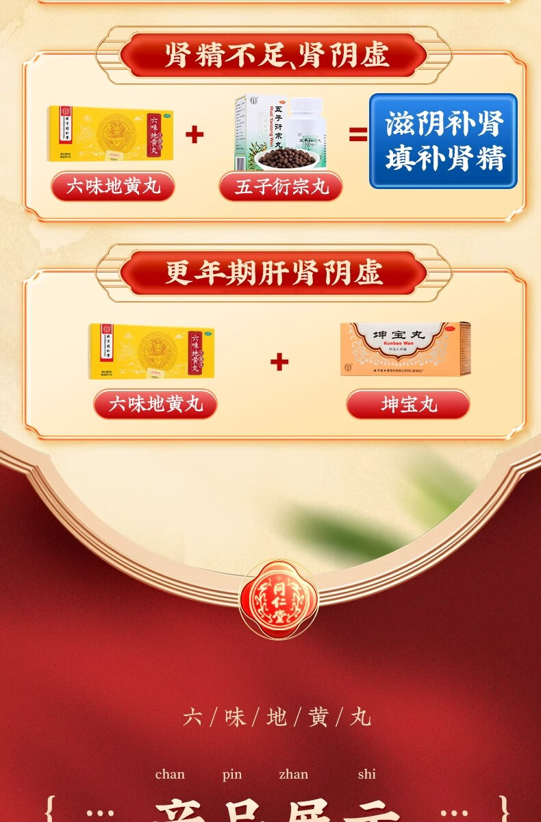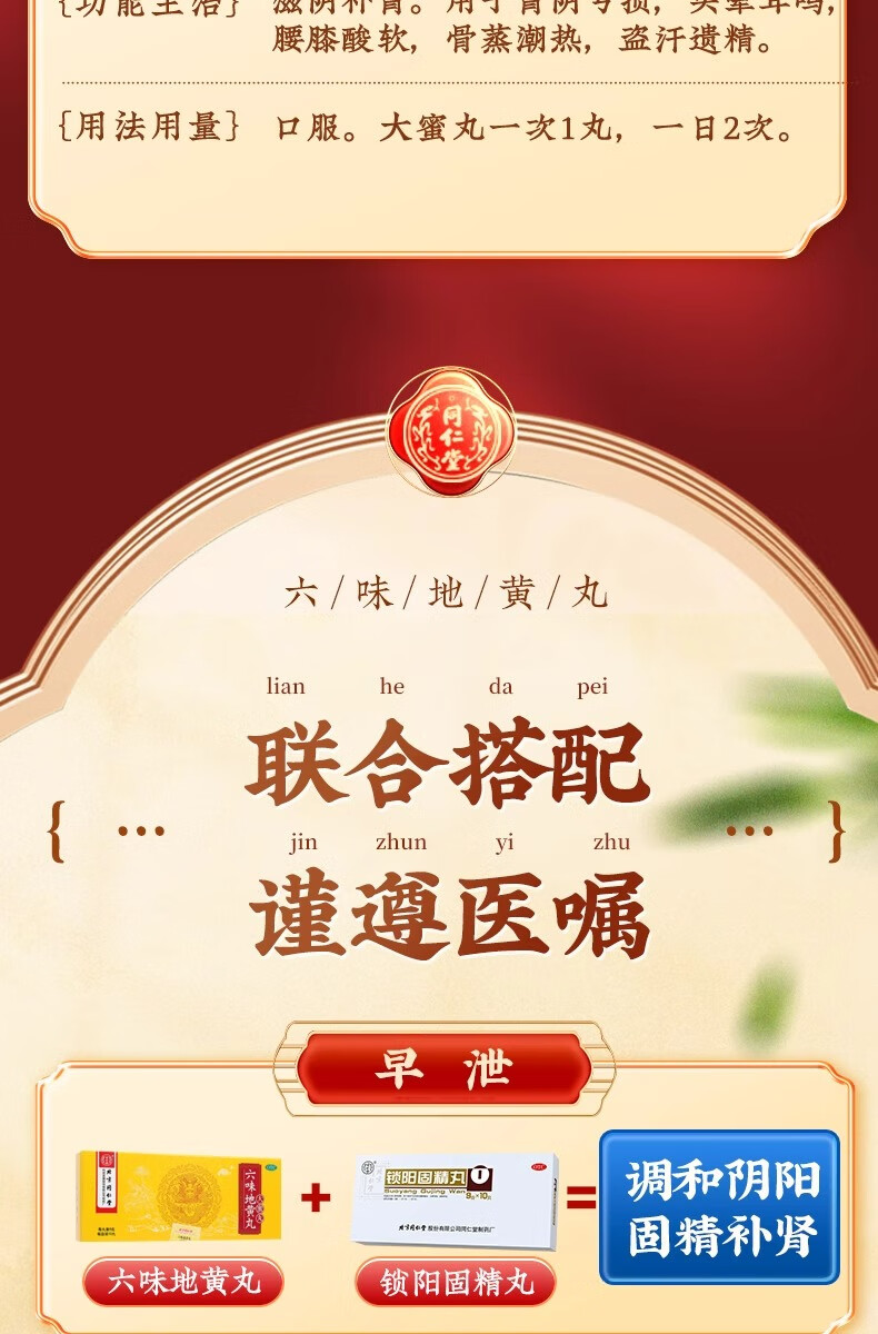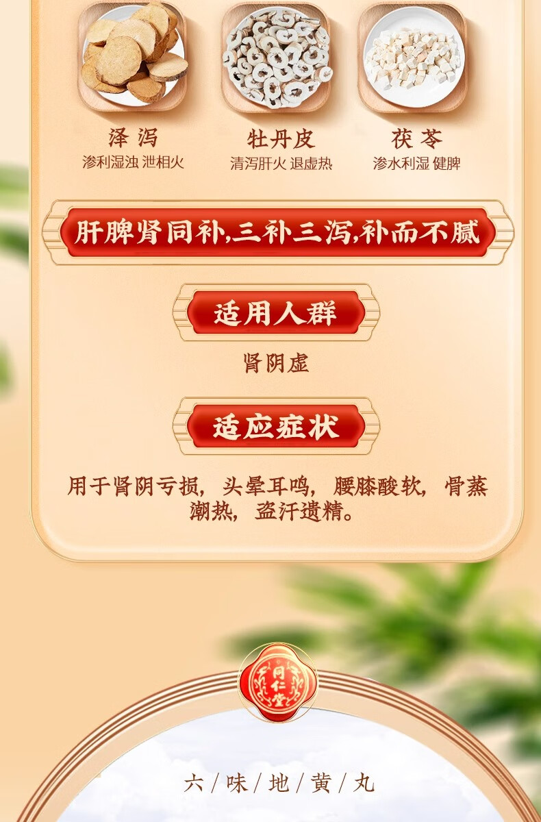 北京同仁堂六味地黄丸(大蜜丸) 补肾壮阳强身腰膝酸软骨盗汗遗精阳痿早泄滋阴补肾中成药男科用药 1盒【滋阴补肾】