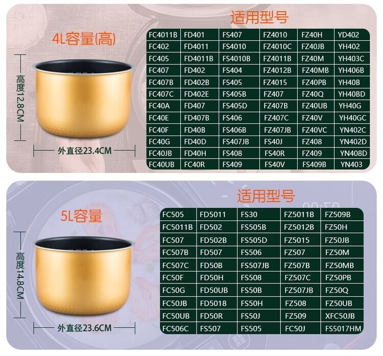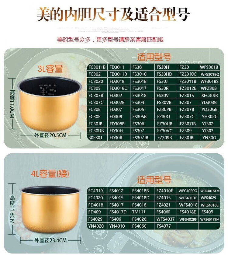 简漾电饭煲内胆3升4升5升通用不粘锅电饭锅内胆3L4L5L配件内锅芯 3L美的聚能胆(高度11.0)