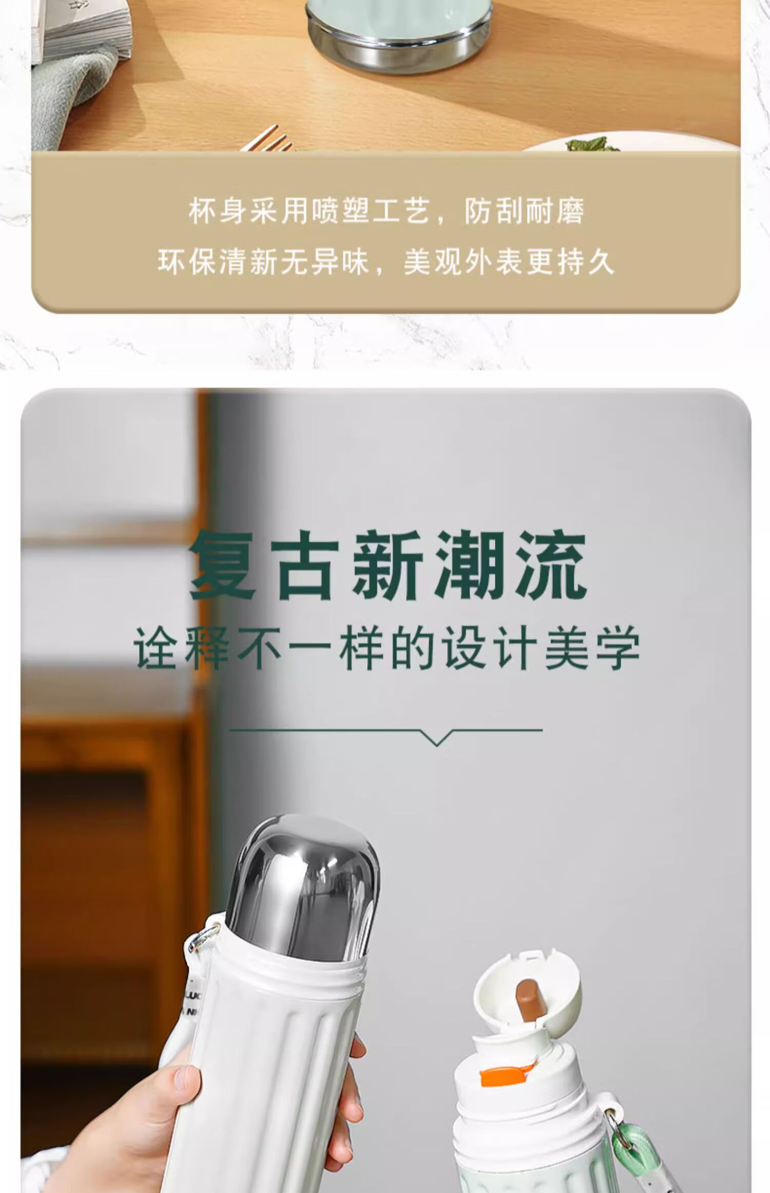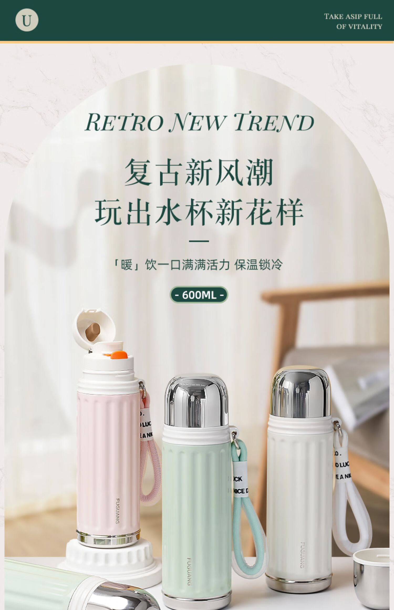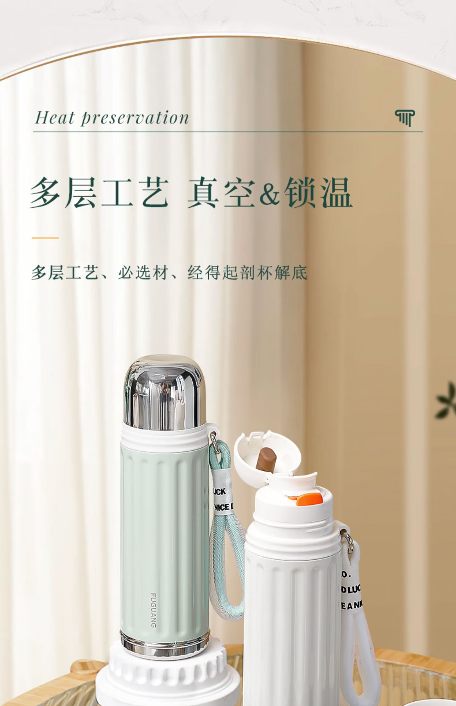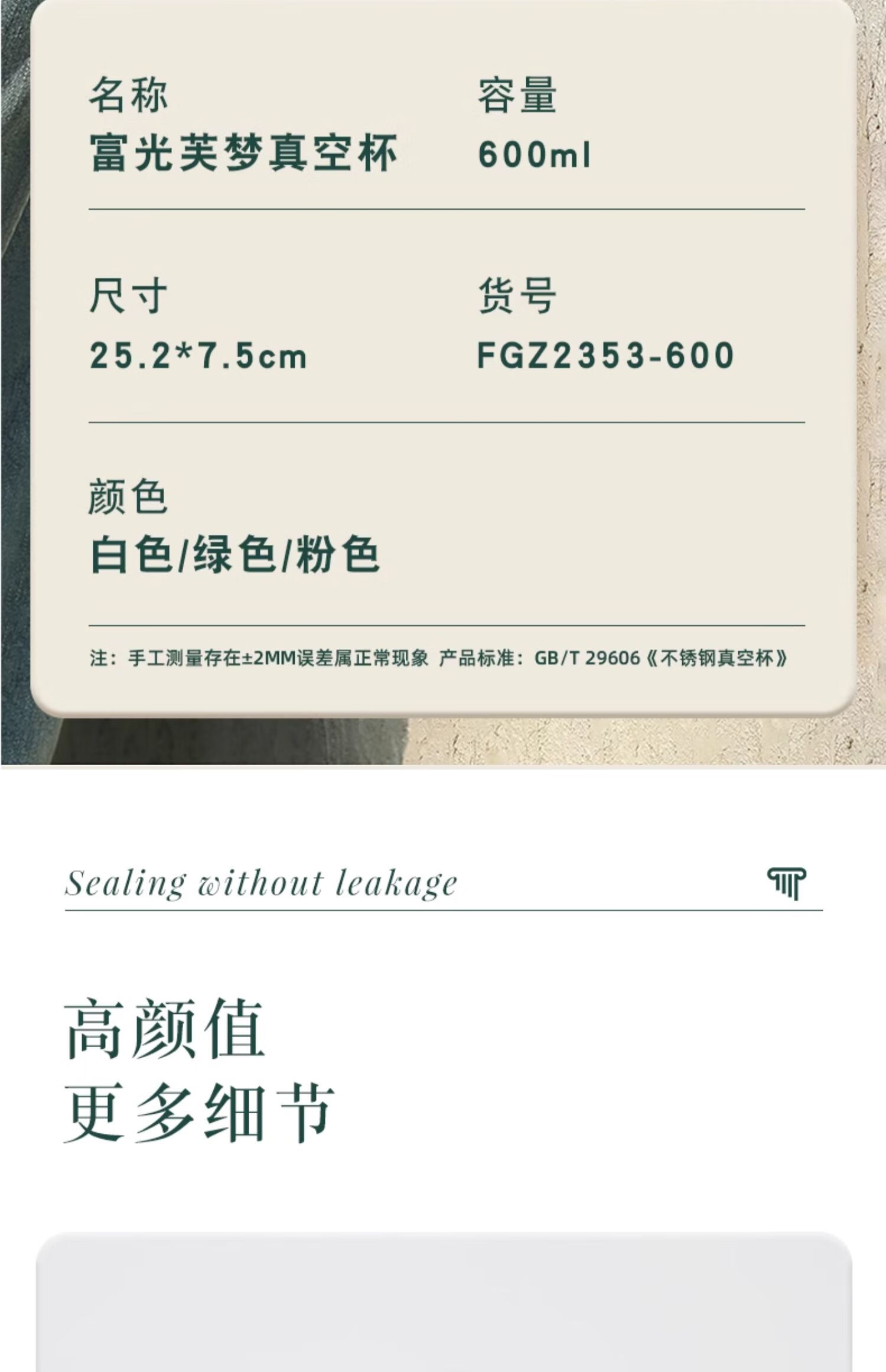 富光保温杯女大容量学生上学316L不锈钢高颜值便携水壶女士新款水杯子 升级316L内胆(弹跳盖带滤网款)600ml薄荷绿