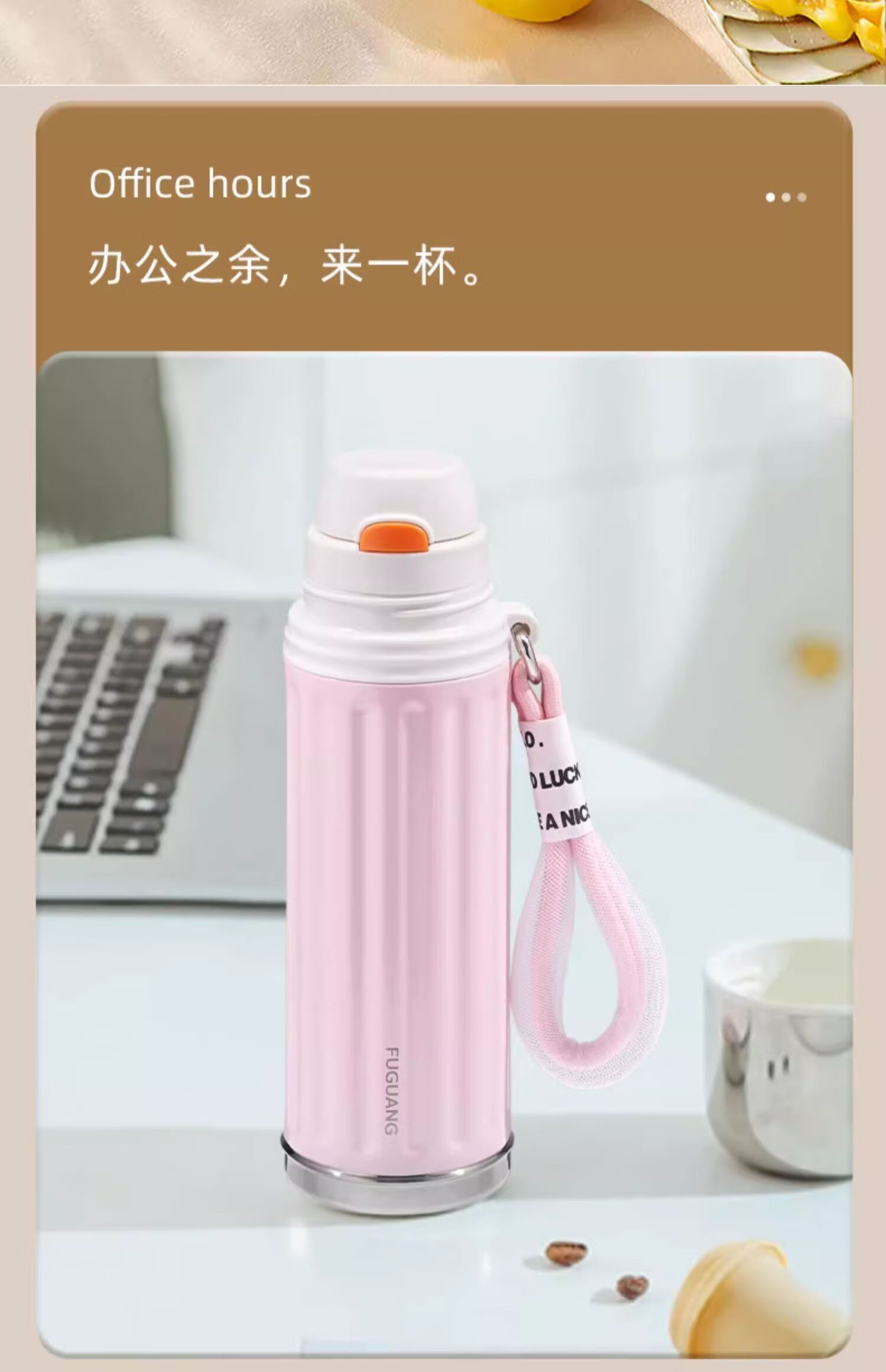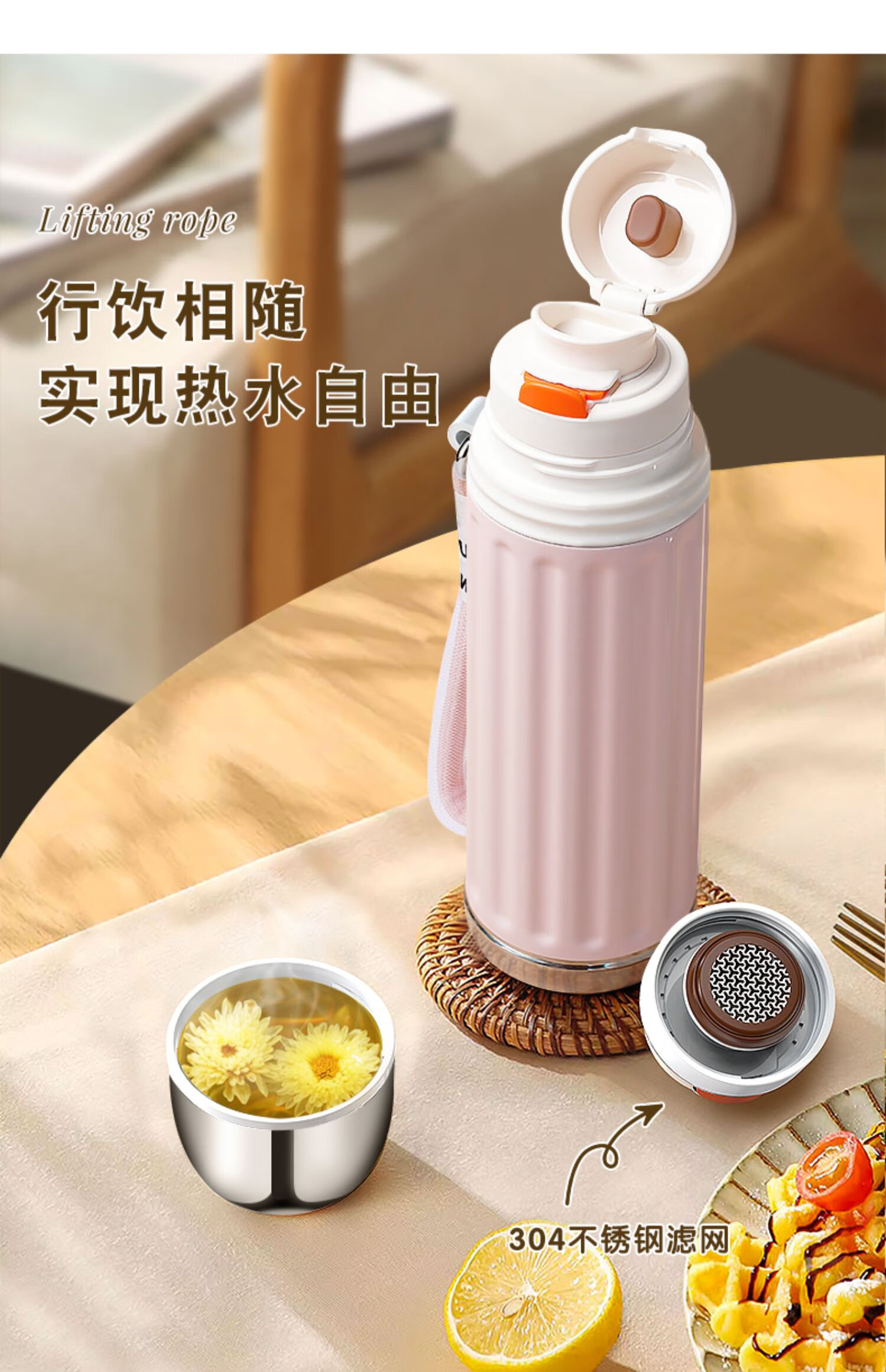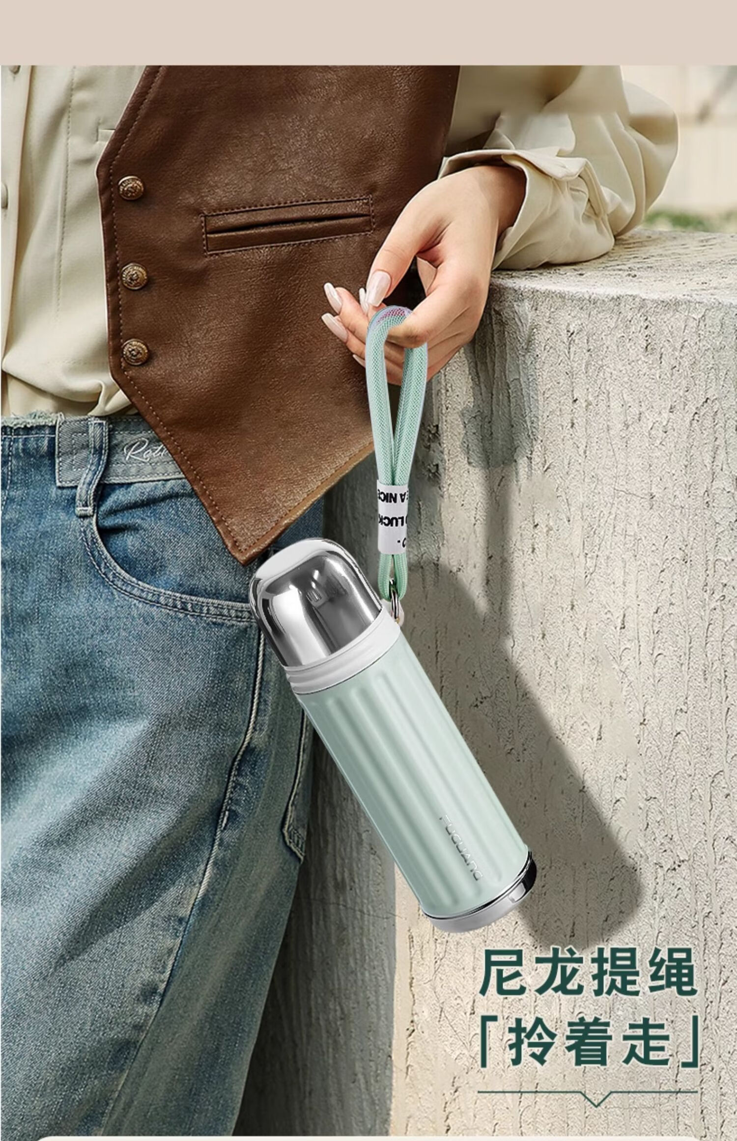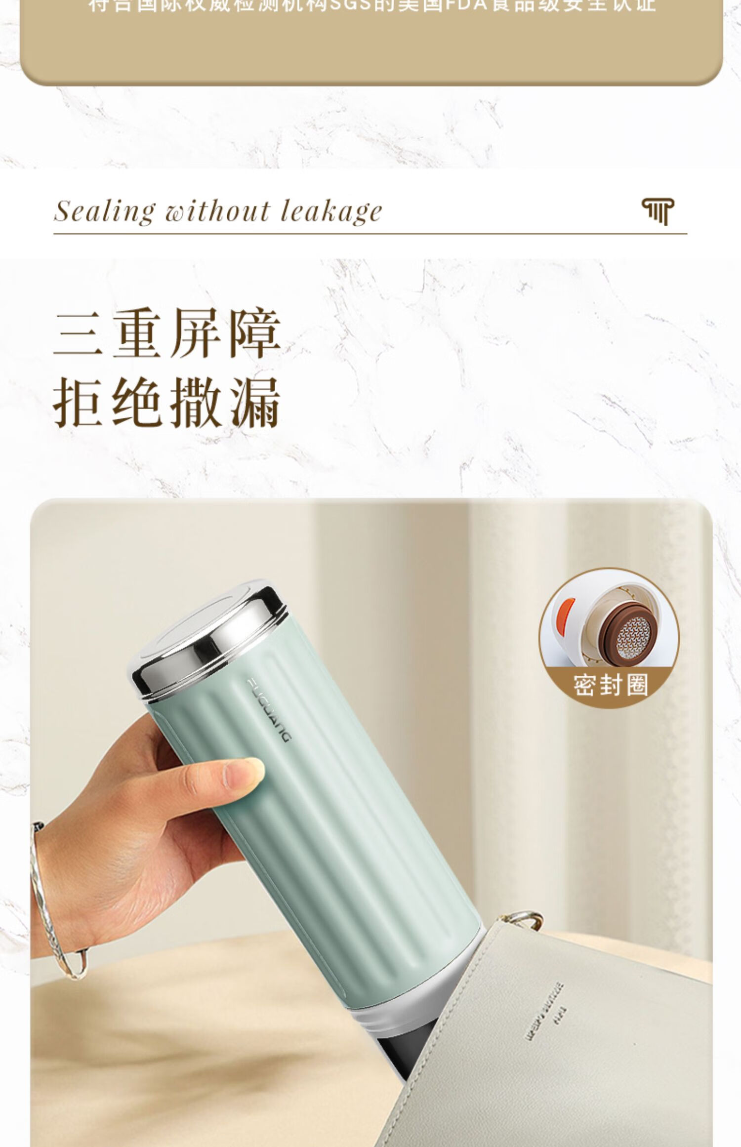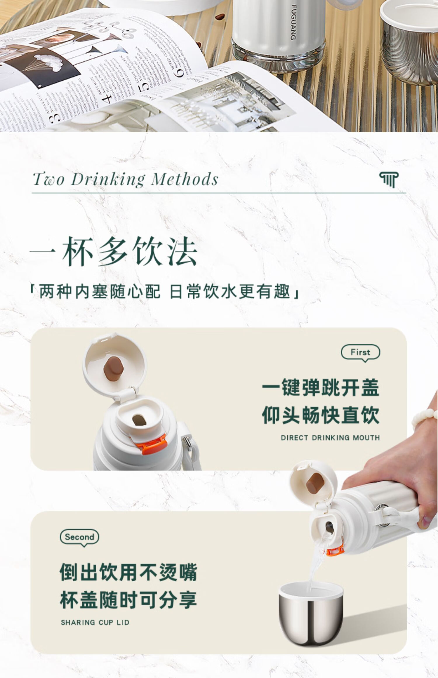 富光保温杯女大容量学生上学316L不锈钢高颜值便携水壶女士新款水杯子 升级316L内胆(弹跳盖带滤网款)600ml薄荷绿