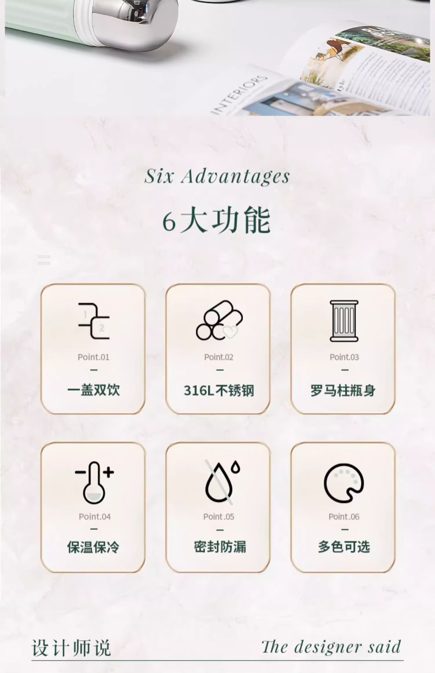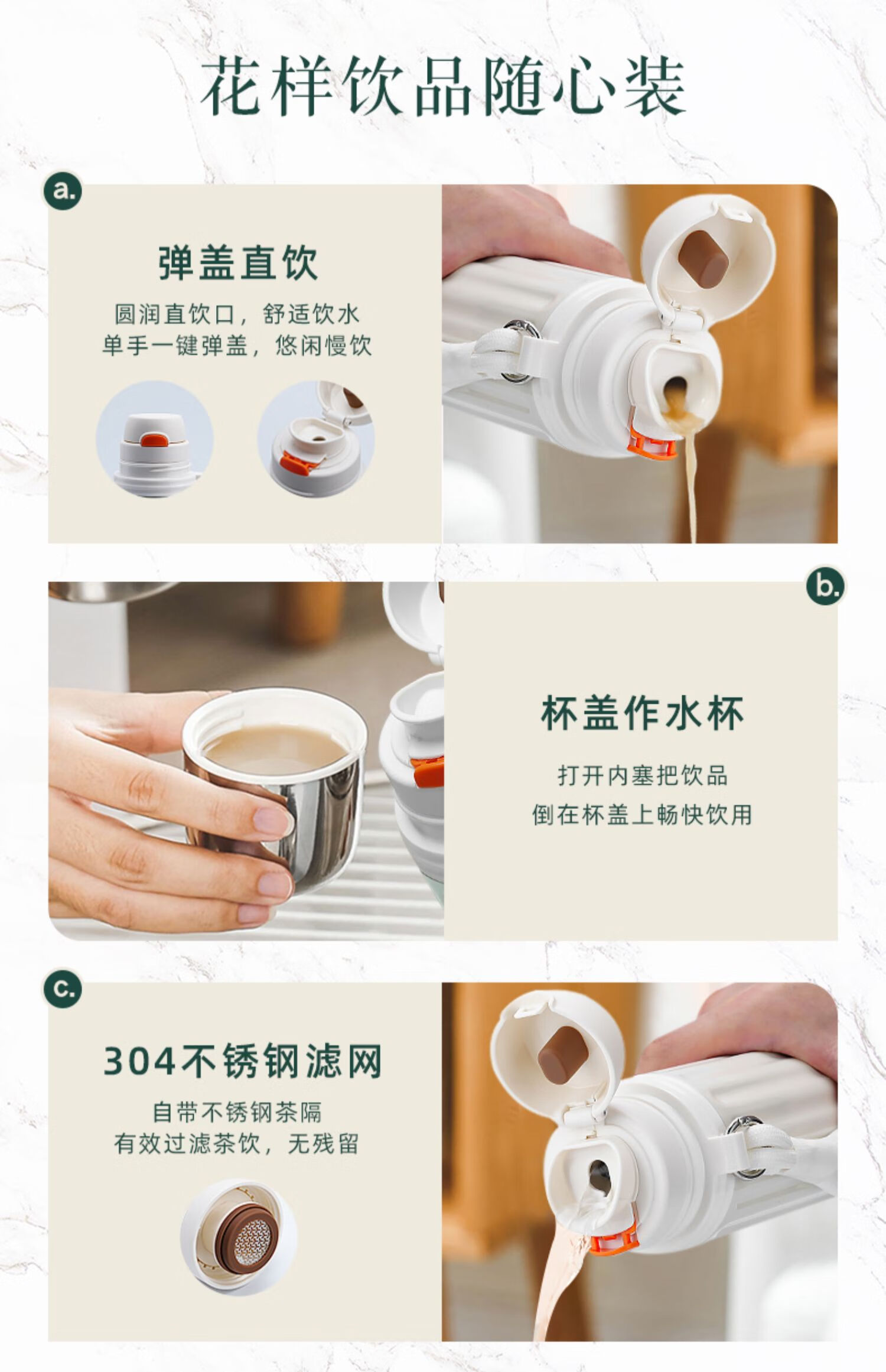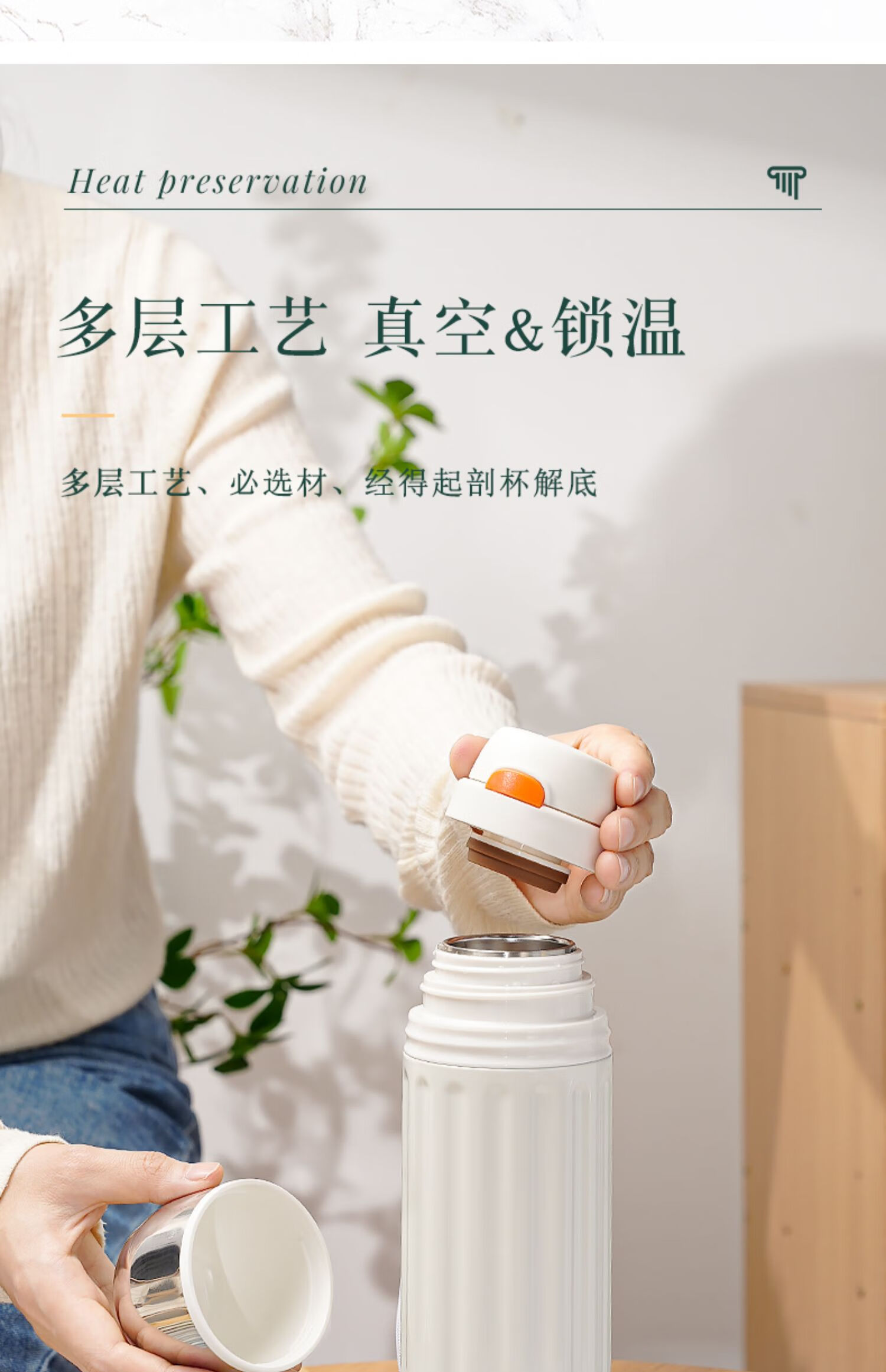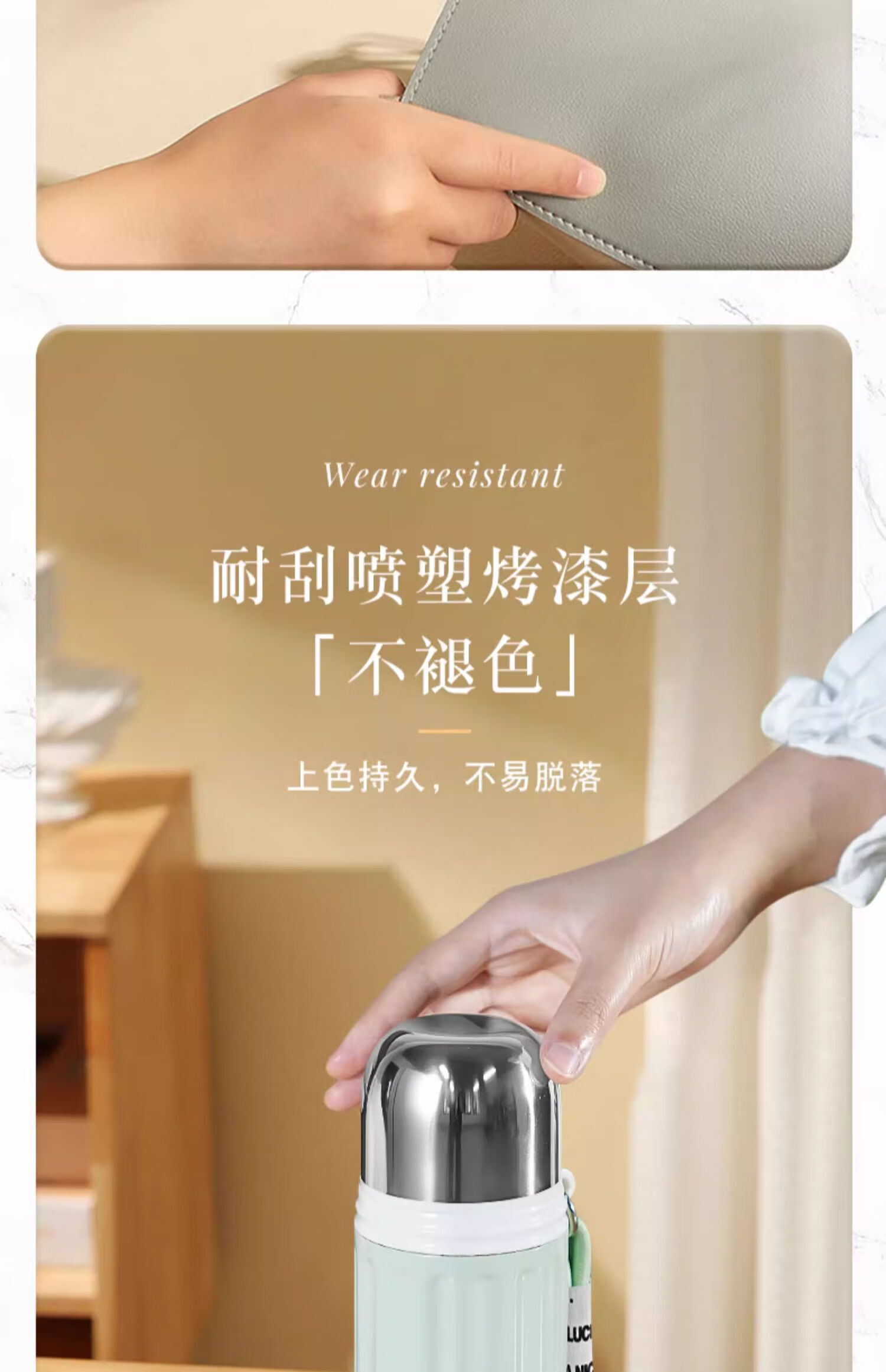富光保温杯女大容量学生上学316L不锈钢高颜值便携水壶女士新款水杯子 升级316L内胆(弹跳盖带滤网款)600ml薄荷绿