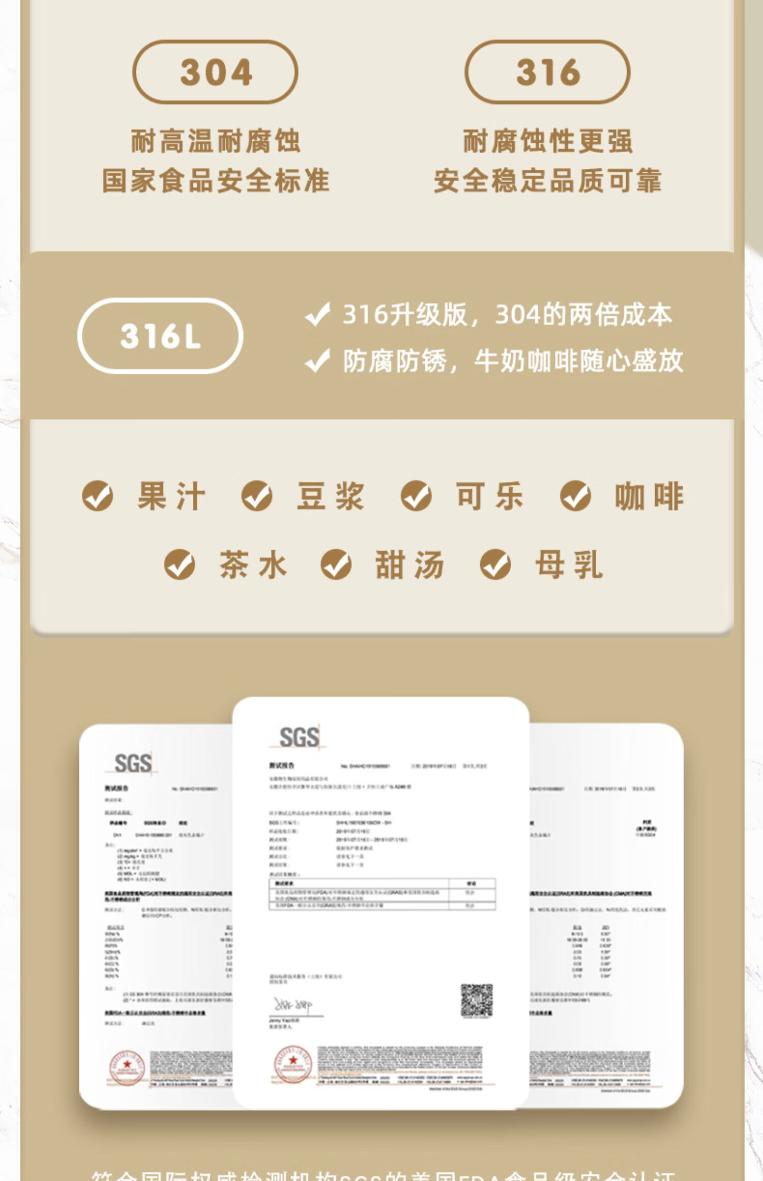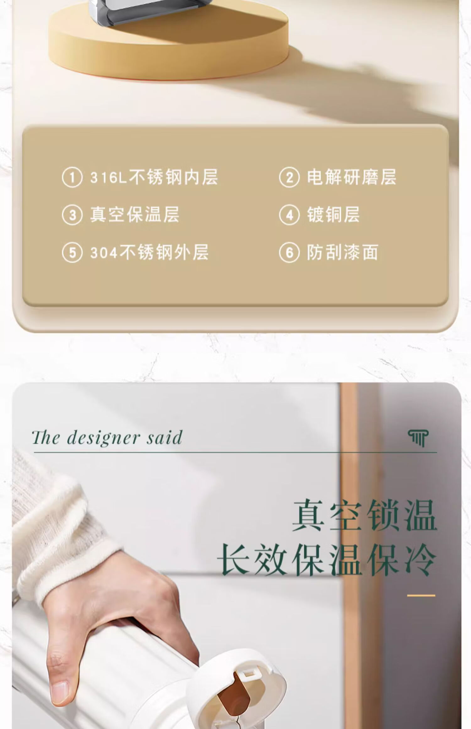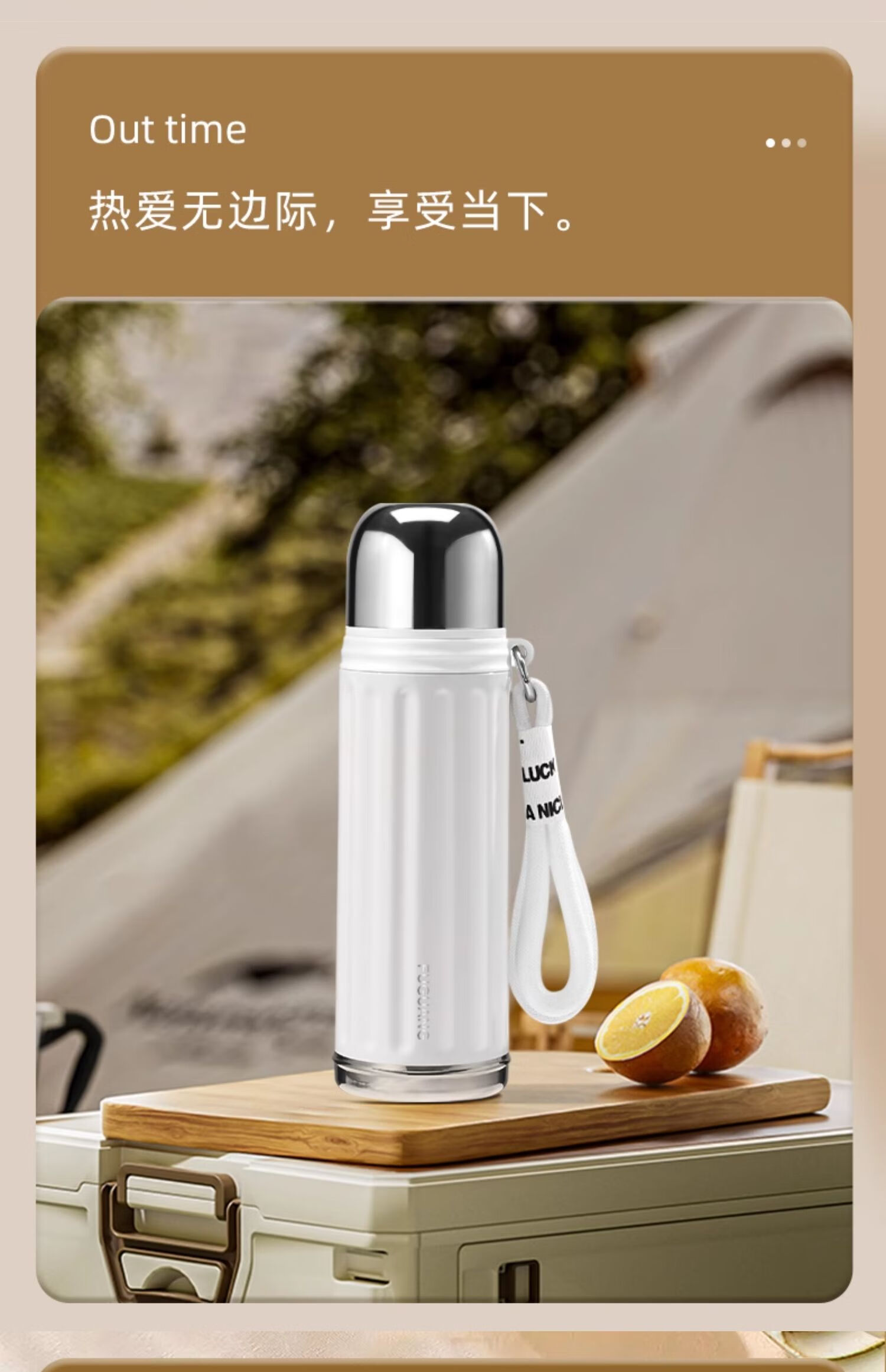 炊大皇保温杯 316L不锈钢水杯 男女士简约轻巧便携茶水杯子简约黑360ml