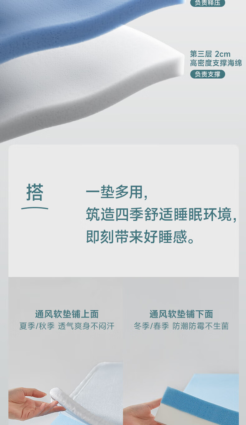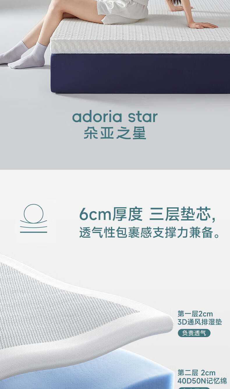 朵亚之星记忆棉深睡床垫软垫1.5x2米床褥子家用防潮1.8米x2米垫被 3D空气记忆绵防潮床垫【白色6cm】 90x190cm单人学生床