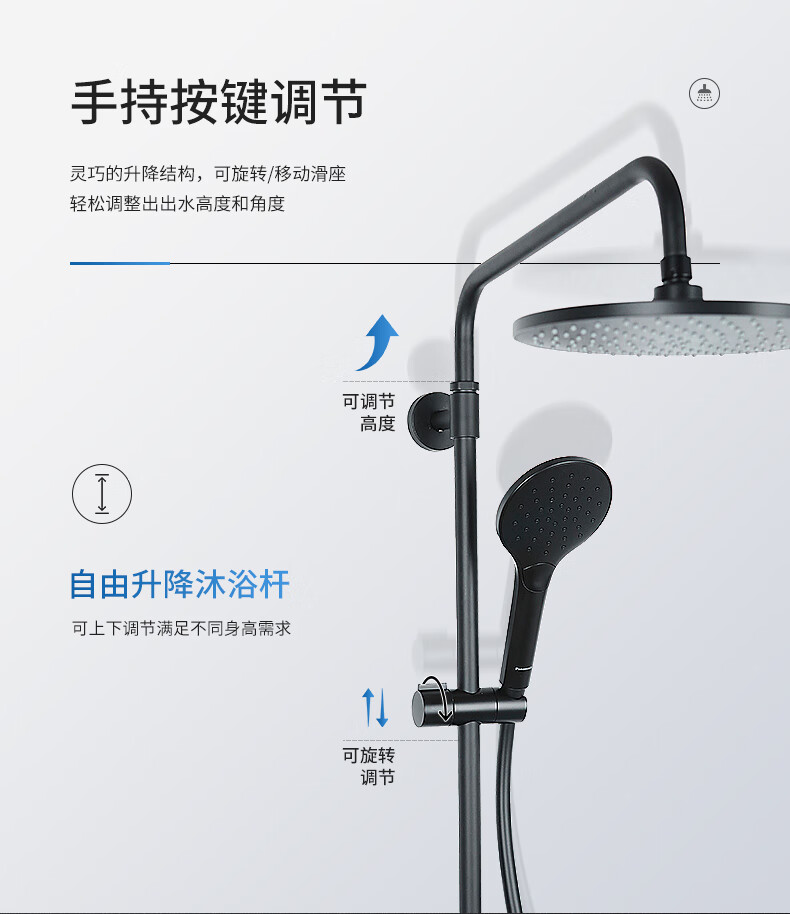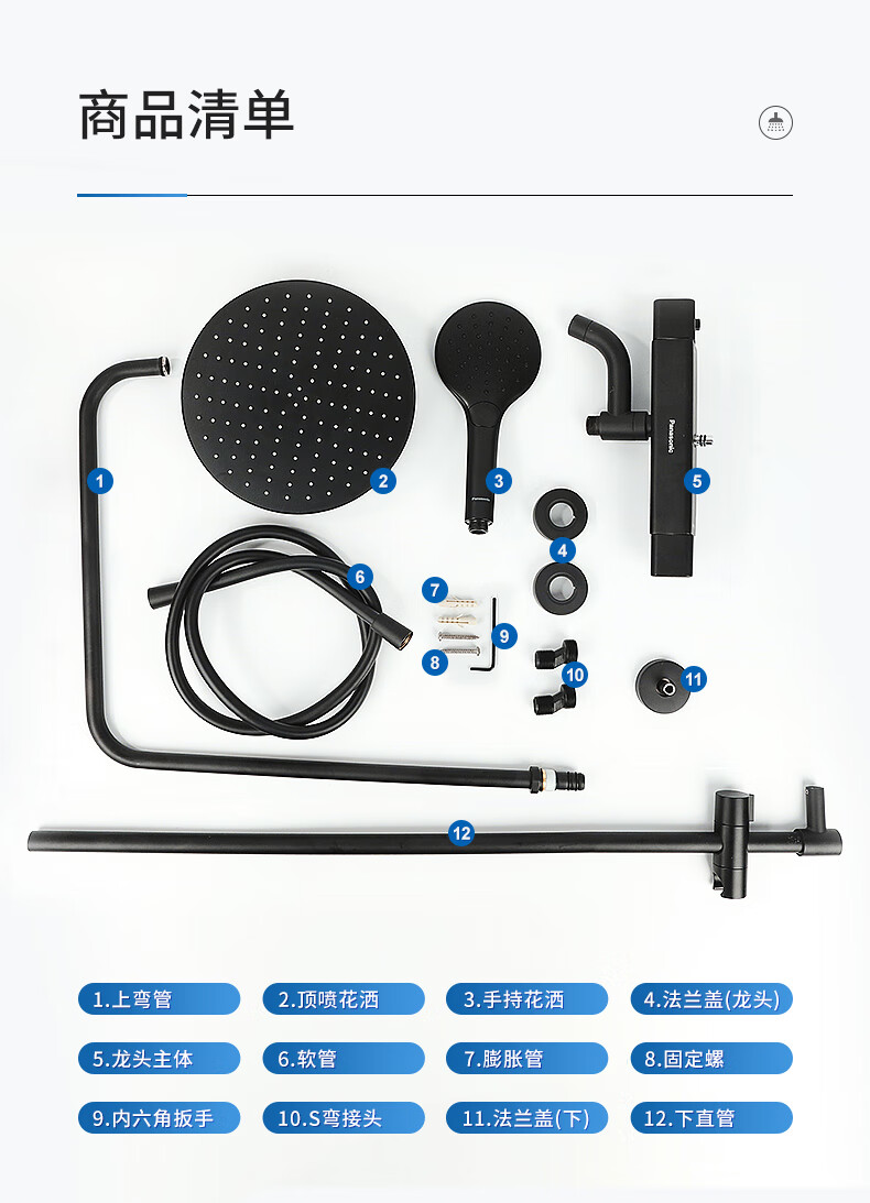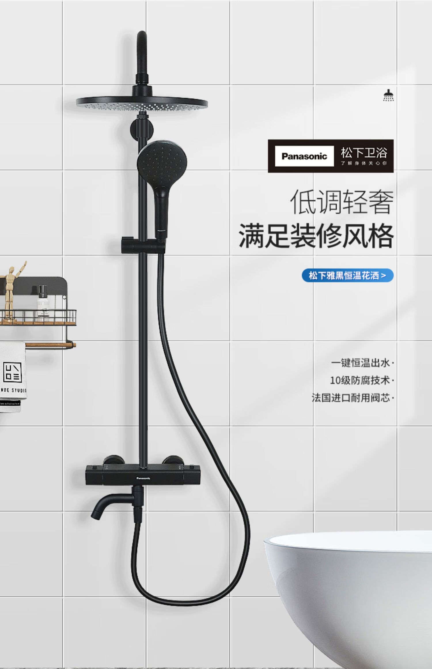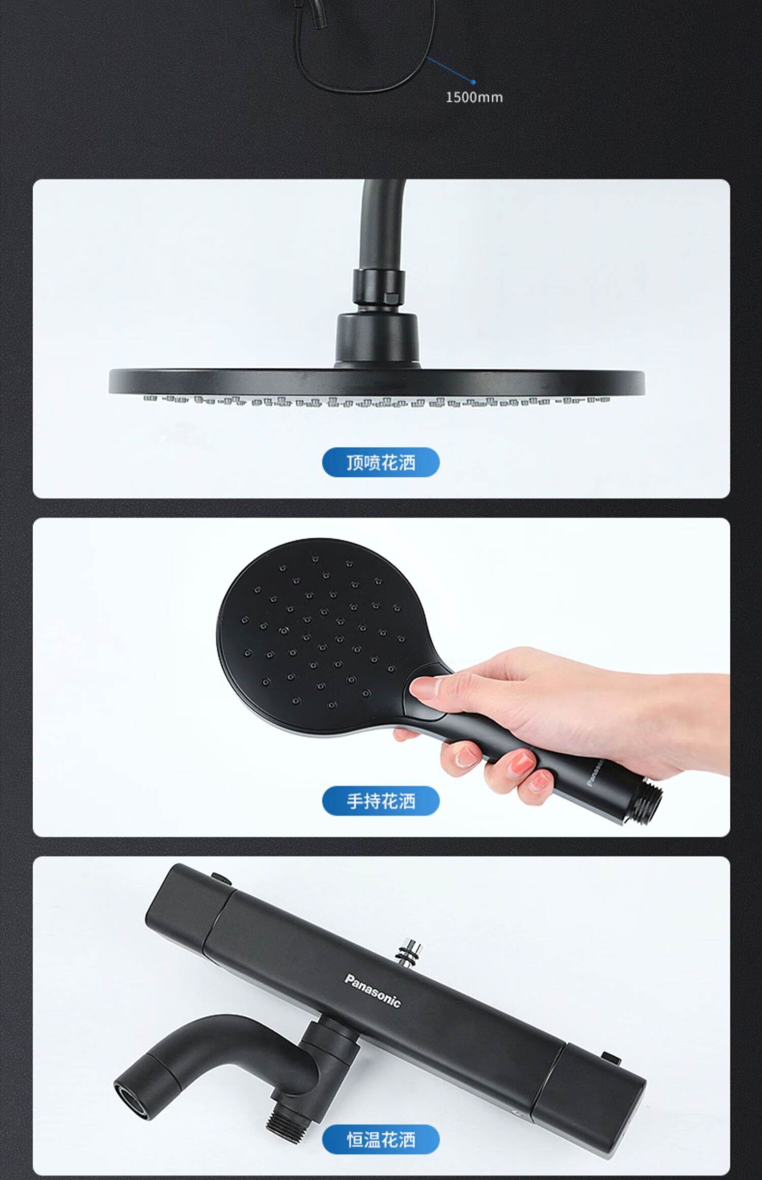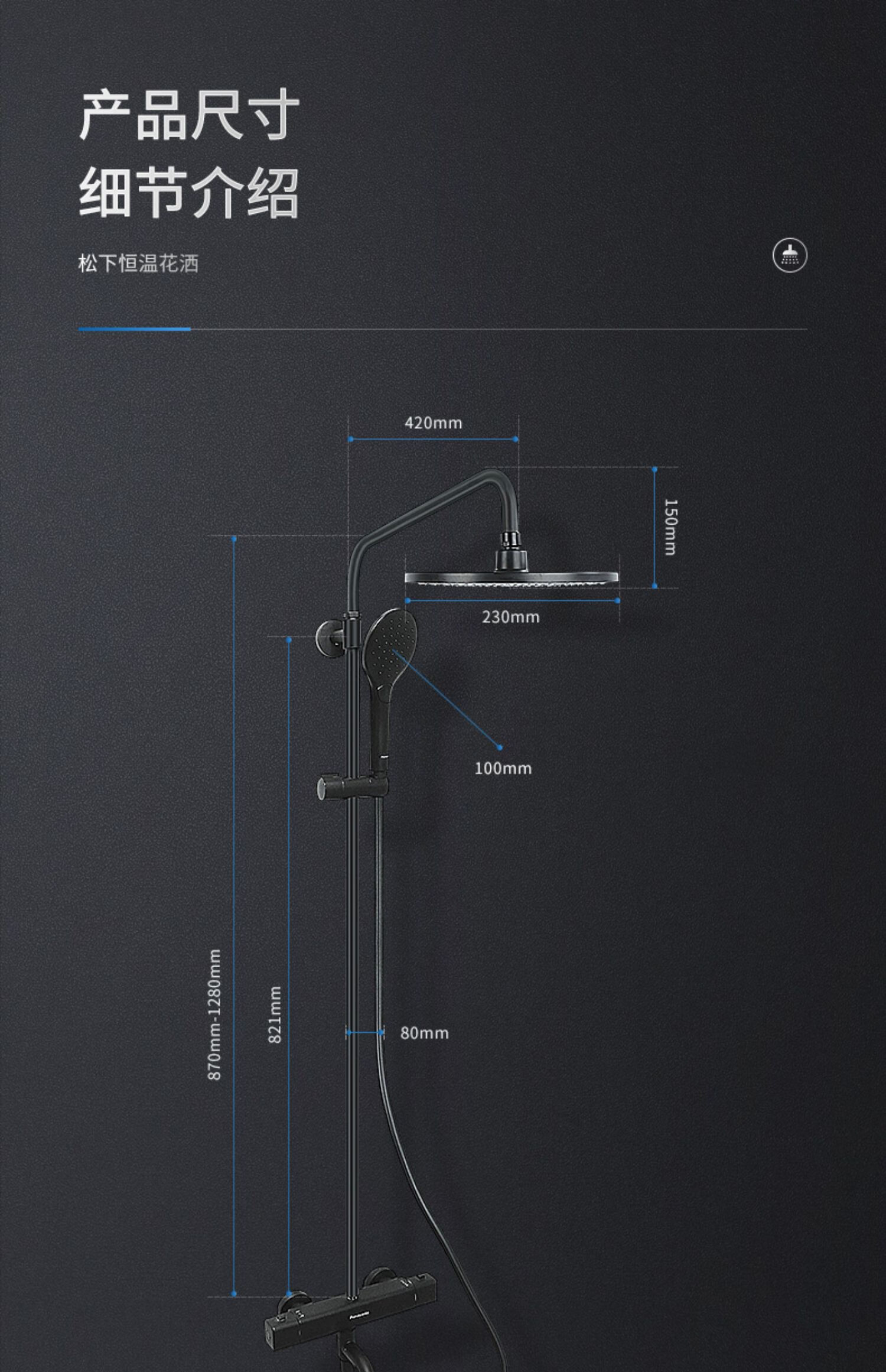 松下恒温花洒套装旋转可升降挂墙式淋浴器浴室家用超强增压191B 不包安装191B-雅黑【三功能恒温淋浴花洒套装】